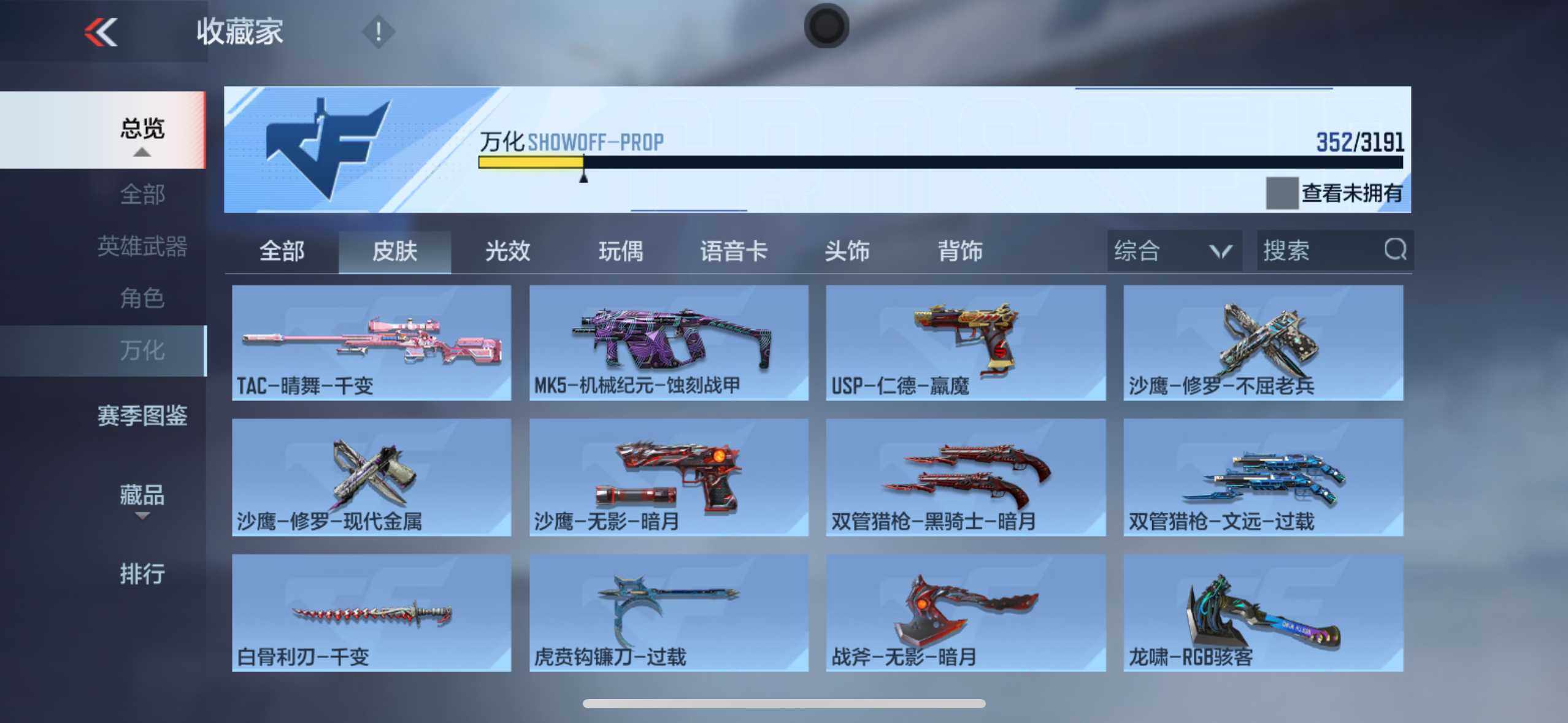 v7/18王者/322英雄/王者之影拉丝皮/王者之魄拉丝皮/王者之心/王者之誉/芭蕾特雷霆王者/王者之掣/王者之神/m12s雷霆王者/王者之霆/王者之魂/王心手蕾套装/王竞手蕾套装/王翼闪光/王翼烟雾拉丝皮/m4仲达套装/mk47仁德/an94盖/m4游骑兵寒霜/tac慈/m200幻神/czs2仲康/黄金cop/黑铁cop/usp仲康/cz75策/mk23机械纪元/双持沙鹰元让/双持glock本初/9屠龙/虎头湛金呛/雌雄双股剑/气勇胆烈戟/尼泊尔雷霆/啖睛矢/炽芒蝶刃/激昂霸王呛/消灭音效/能量核心/8bit/斩杀/狙击呛线/熔岩/heartshot/