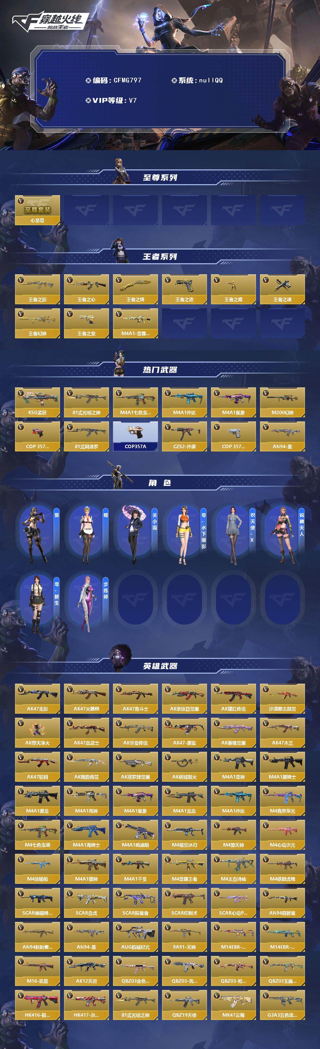 【cfmg797】vip7/319v/心至尊/王者之影/王者之心/王者之锋/王者之迹/王者之蝶/王者之魂/王者幻神/王者之业/m4a1-雷霆王者/ksg-孟获/81式-光明之神/m4a1-七色宝葫/m4a1-仲达/m4a1-星象/m200-幻神/cop 357-堕天神/81式-阿波罗/cop 357-a/czs2-仲康/cop 357-安琪拉/an94-盖/葵/瞳/关小雨/零-水下丽影/炽天使-x/祝融夫人/零-新生/步练师/ak47-无影/ak47-火麒麟/ak47-角斗士/ak47-幸运日觉醒/ak47-猩红传说/ak47-沙漠郡主-超觉/ak47-燎天净火/ak47-血武士/ak47-华夏传说/ak47-黑鲨/ak47-春雅觉醒/ak47-木兰/ak47-轮回/ak47-雅韵青花/ak47-塔罗牌觉醒/ak47-谜城烟火/m4a1-雷神/m4a1-黑骑士/m4a1-黑龙/m4a1-死神/m4a1-龙血/m4a1-竞界荣光/m4a1-海骑士/m4a1-哈迪斯/m4a1-破空冰刃/m4a1-堕天神/m4a1-心动次元/m4a1-运输船/m4a1-猎神/m4a1-千变/m4a1-太白诗仙/m4a1-铁胆虎魄/scar-幽暗骑士/scar light-白虎/scar-探星者/scar-印刷术/scar-心动pick/an94-超新星/an94-赳赳秦师/aug-机械纪元/9a91-天神/m14ebr-拂影/m14ebr-葫芦山庄/m16-恶魔/ak12-天启/q03-金色蔷薇/q03-死神/q03-呛娘/q03-玉面羞花/hk416-极光/hk417-炎龙铠甲/q19-天使/mk47-云舞/g3a3-五色琉璃觉醒/g3a3-衍神兵/q97-浩瀚征途/q191-金甲虎啸觉醒/q191-封神榜/awm-天龙/awm-天使/awm-指南针觉醒/awm-大湾溢彩/芭蕾特-毁灭/芭蕾特-极光/芭蕾特-安琪拉/芭蕾特-朱雀/m200-心动次元觉醒/09式狙-天神/09式狙-魔音长歌觉醒/98k-黑骑士/98k-血月/tac-天使/tac-晴舞/gm6-战争风云觉醒/加特林-堡垒/加特林-炼狱/加特林-蟒蛇/qbb95-极光/qbb95-再战涿鹿/汤姆逊-烈龙/双持斯泰尔-天使/qcw05-变形金刚·大黄蜂/cbj-ms-毒蜂/p90-双脊龙/czs2-心动次元觉醒/czs2-血月/m12s-天公/pp19野牛-造纸术/ddm4-pdw-星际宇航觉醒/打击者-天神/地狱火/嗜血金鲨/地狱烈炎/aa12-火药觉醒/ksg-黑骑士/ksg-火力竞放/ksg-钟馗觉醒/贝雷塔-力拔山河/igin12-机变奇蛇觉醒/usp-神罚/usp-机械迷城/usp-太白诗仙/沙鹰-修罗/沙鹰-飞电/沙鹰-明目达聪/沙鹰-超新星/气手呛-血月/沙鹰-神兵修罗/沙鹰-宇航兔兔/双持沙鹰-元让/蟒蛇-火力竞放/改装glock-木兰/蟒蛇-鼓龙/左轮-卧龙觉醒/改装glock-黑龙/双持glock18-本初/qsz92-天使/qsz92-华夏传说/柯尔特-仲达/cz75-穷奇/cz75-策/mk23-幻神/白骨利刃/墨刃-幻神/双刃-昼伏夜影觉醒/蝴蝶刀-天神/女皇利刃-铁胆虎魄/炽芒蝶刃/清刚-觉醒/匕首-浩瀚征途/龙啸/神罚战斧/手斧-机械迷城/甲骨利斧/气勇胆烈戟/屠龙/尼泊尔-火麒麟/尼泊尔-竞界荣光/尼泊尔-铜头铁臂/尼泊尔-雷霆/双持尼泊尔-雷麒麟/太白诗仙扇/麒麟刺/星芒/马来剑-毁灭/唐刀-大唐荣耀/擎天觉醒/雷霆/丛林匕首-火力竞放/丛林匕首-庆龙觉醒/斩魔刀/迷你饕餮/迷你玉凝