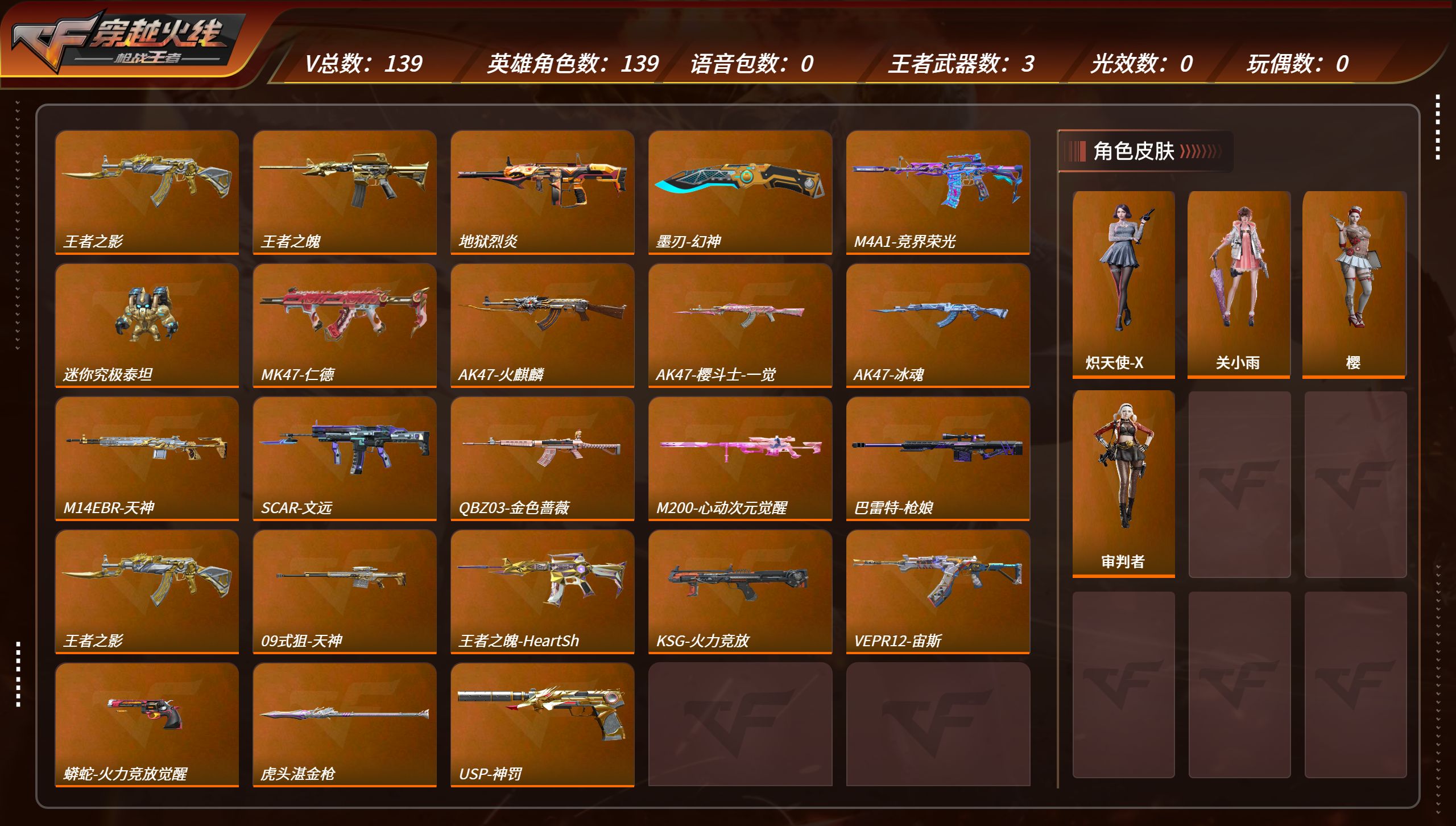 【v7/109v/3王者6角色/王魄女团/王影/王翼烟雾/仁德/文远/宙斯/孟获/境界荣光/81光明/冰魂/变色龙/风神翼龙/岚舞/芭蕾特呛娘/晴舞】安卓q-v3-139v-102金v-6角色 关小雨 审判者 炽天使-x 葵 零-新生 樱 王者之影 王者之魄-hear 王者之翼盐雾蛋 ksg-孟获 47-仁德 scar-文远 vepr12-宙斯 m4a1-竞界荣光 ak47-无影-呛皇之影 q