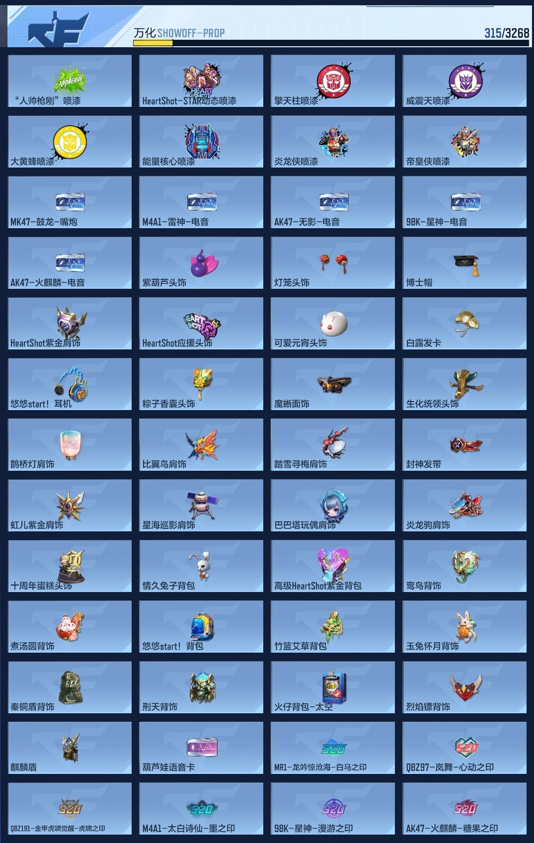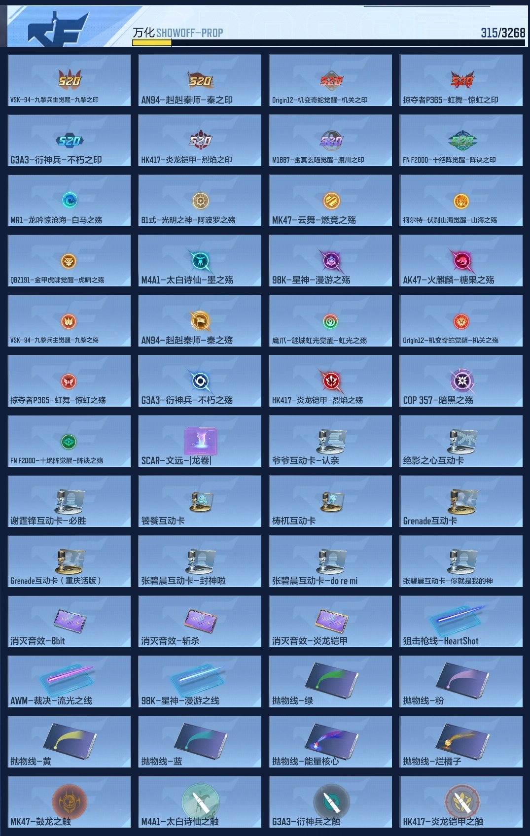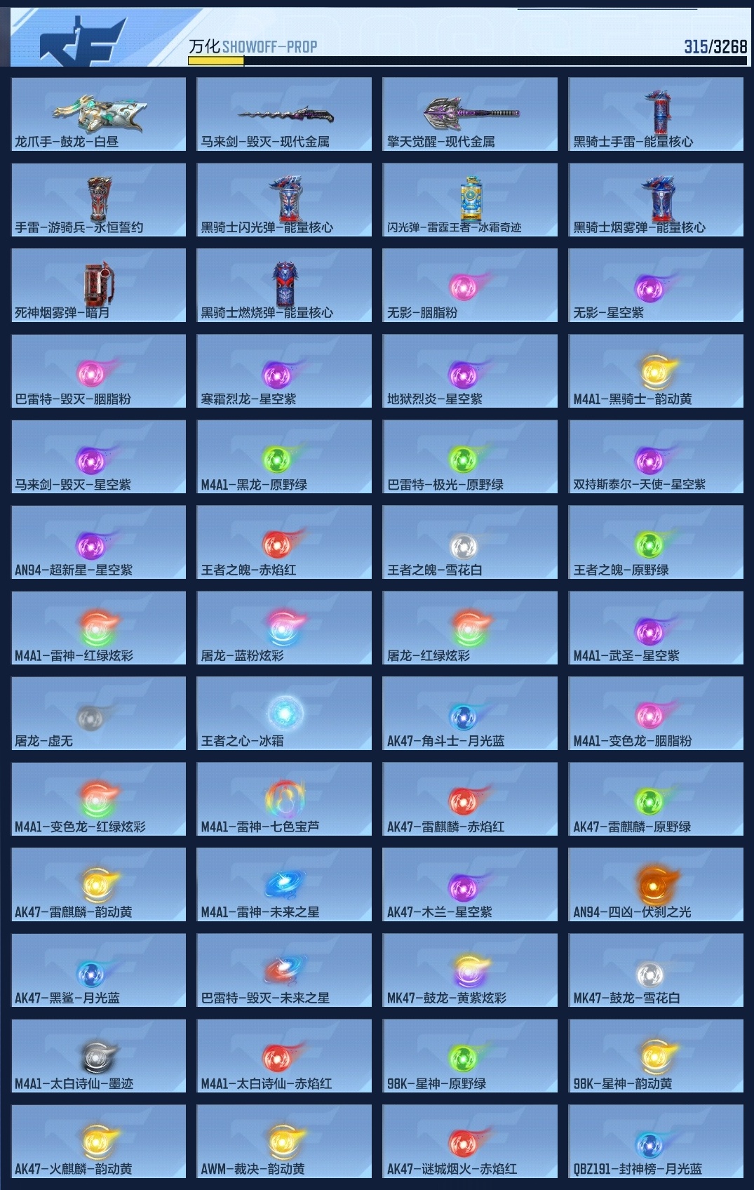 643627 【8王者-王心-王影-王魂-幻神-盖-妙才-m4雷霆-m4雷暴-多套装】 v王者角色数0 王者v武器数量8 英雄武器数量210 音效卡数量4 万化数量315 vip等级【文本】vip3级 【新锐】 【支持】 【是】 【可排位】 音效卡5 狙击呛线2 消灭音效3 语音卡1 抛物线5 音效卡:ak47-无影-电音,mk47-鼓龙-嘴炮,m4a1-雷神-电音,ak47-火麒麟-电音,98k-星神-电音; 狙击呛线:狙击呛线-heartshot,awm-裁决-流光之线; 消灭音效:消灭音效-8bit,消灭音效-斩杀,消灭音效-炎龙铠甲; 语音卡:葫芦娃语音卡; 抛物线:抛物线-能量核心,抛物线-绿,抛物线-蓝,抛物线-黄,抛物线-粉;