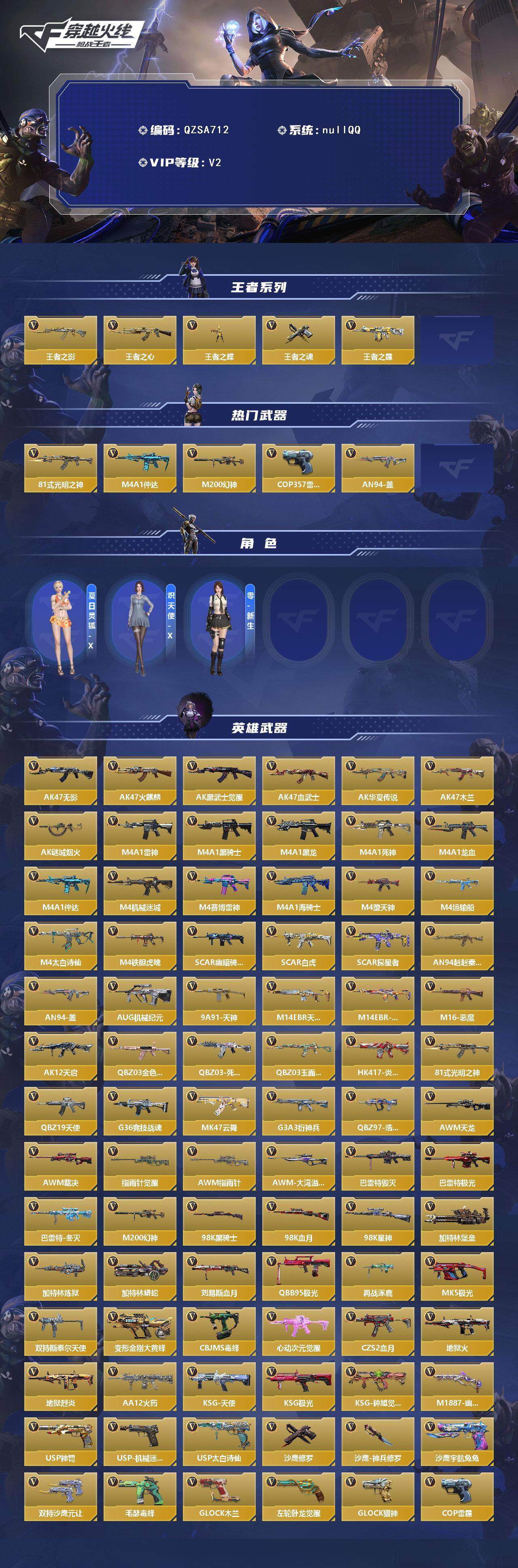 【qzsa712】vip2/220v/5王者/王者之影/王者之心/王者之蝶/王者之魂/王者之霆/81式-光明之神/m4a1-仲达/m200-幻神/cop357-雷霆/an94-盖/夏日灵狐-x/炽天使-x/零-新生/ak47-无影/ak47-火麒麟/ak47-黑武士觉醒/ak47-血武士/ak47-华夏传说/ak47-木兰/ak47-谜城烟火/m4a1-雷神/m4a1-黑骑士/m4a1-黑龙/