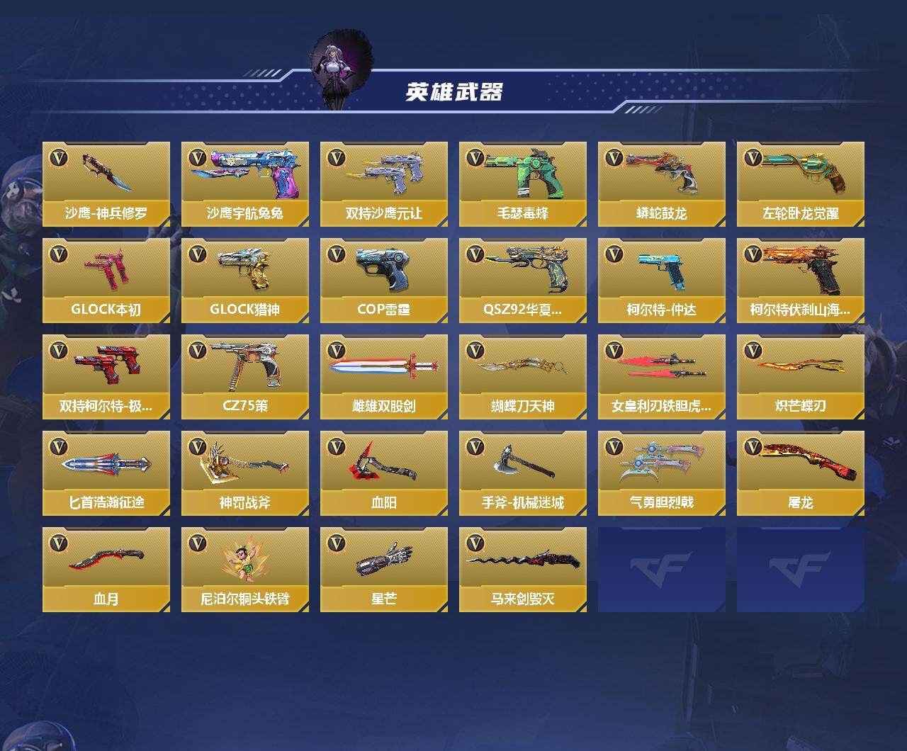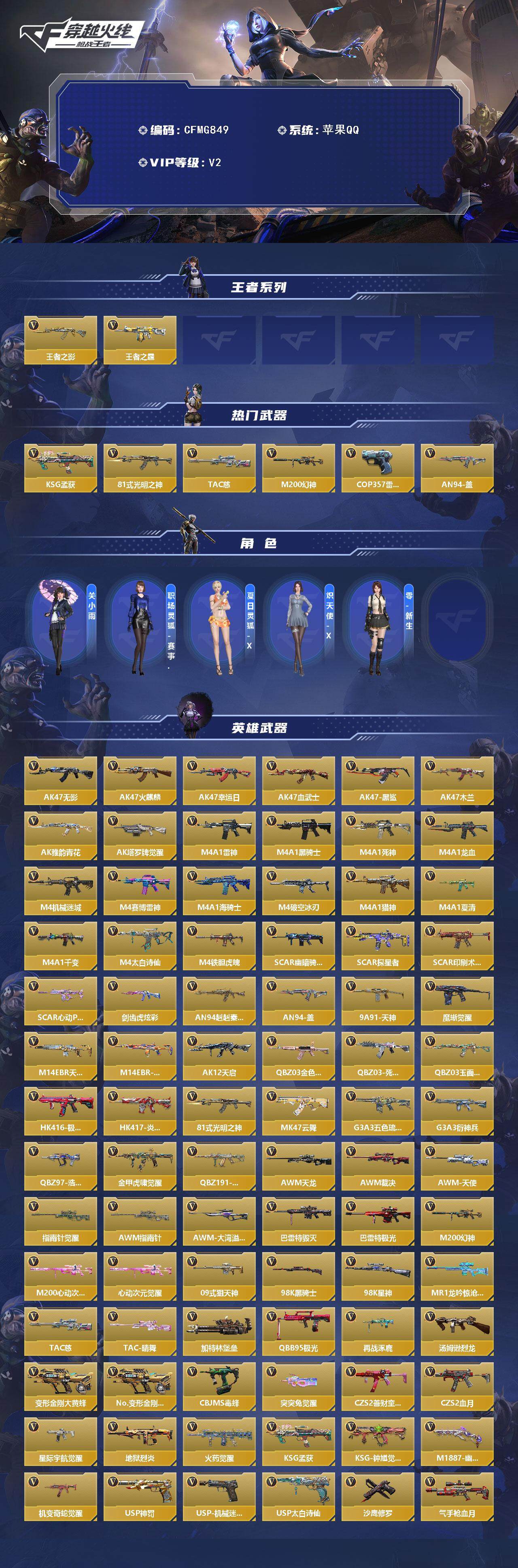 【cfmg849】vip2/237v/王者之影/王者之霆/ksg-孟获/81式-光明之神/tac-慈/m200-幻神/cop357-雷霆/an94-盖/关小雨/职场灵狐-赛事经理/夏日灵狐-x/炽天使-x/零-新生/ak47-无影/ak47-火麒麟/ak47-幸运日/ak47-血武士/ak47-黑鲨/ak47-木兰/ak47-雅韵青花/ak47-塔罗牌觉醒/m4a1-雷神/m4a1-黑骑士/m