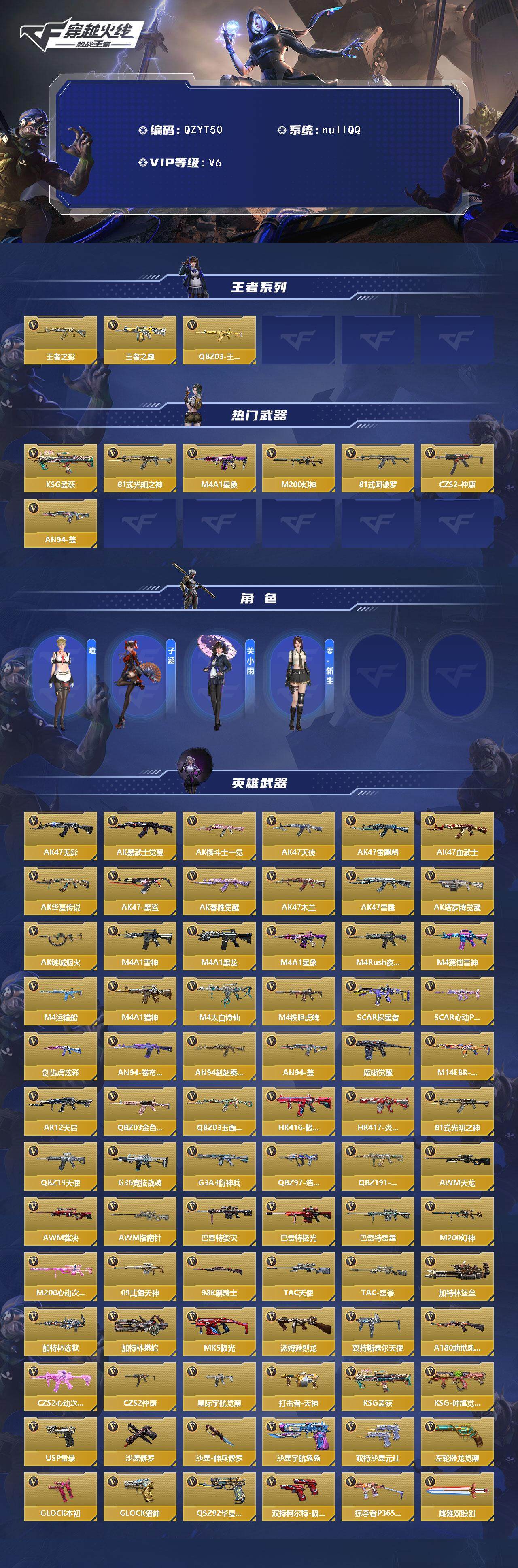 【qzyt50】vip6/200v/王者之影/王者之霆/q-03-王者蔷薇/ksg-孟获/81式-光明之神/m4a1-星象/m200-幻神/81式-阿波罗/czs2-仲康/an94-盖/瞳/子涵/关小雨/零-新生/ak47-无影/ak47-黑武士觉醒/ak47-樱斗士-一觉/ak47-天使/ak47-雷麒麟/ak47-血武士/ak47-华夏传说/ak47-黑鲨/ak47-春雅觉醒/ak47