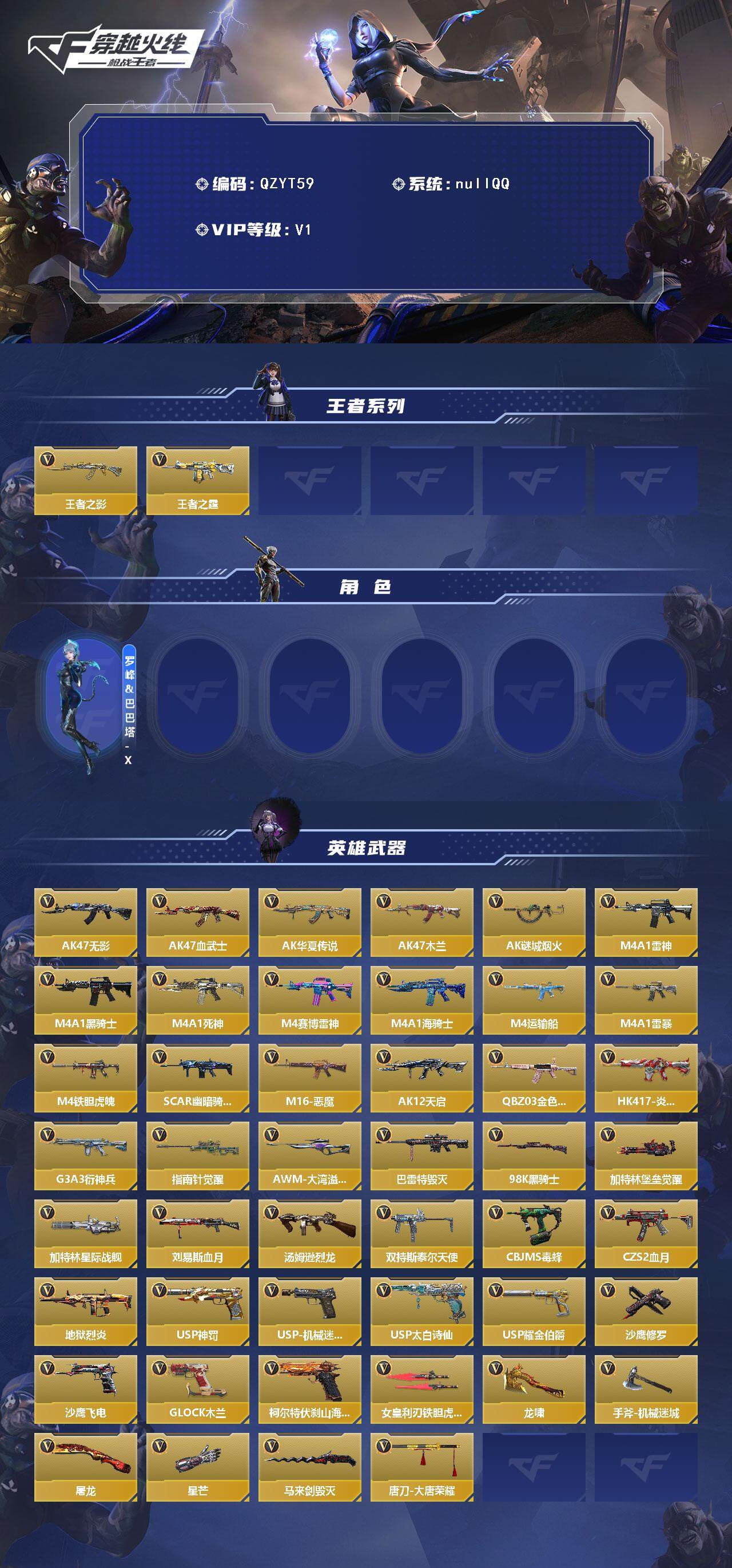 【qzyt59】vip1/75v/王者之影/王者之霆/王者之尊/罗峰巴巴塔-x/ak47-无影/ak47-血武士/ak47-华夏传说/ak47-木兰/ak47-谜城烟火/m4a1-雷神/m4a1-黑骑士/m4a1-死神/m4a1-赛博雷神/m4a1-海骑士/m4a1-运输船/m4a1-雷暴/m4a1-铁胆虎魄/scar-幽暗骑士/m16-恶魔/ak12-天启/q03-金色蔷薇/hk417-炎龙铠甲/g3a3-衍神兵/awm-指南针觉醒/awm-大湾溢彩/芭蕾特-毁灭/98k-黑骑士/加特林-堡垒觉醒/加特林-星际战舰/刘易斯-血月/汤姆逊-烈龙/双持斯泰尔-天使/cbj-ms-毒蜂/czs2-血月/地狱烈炎/usp-神罚/usp-机械迷城/usp-太白诗仙/usp-耀金伯爵/沙鹰-修罗/沙鹰-飞电/改装glock-木兰/柯尔特-伏刹山海觉醒/女皇利刃-铁胆虎魄/龙啸/手斧-机械迷城/屠龙/星芒/马来剑-毁灭/唐刀-大唐荣耀