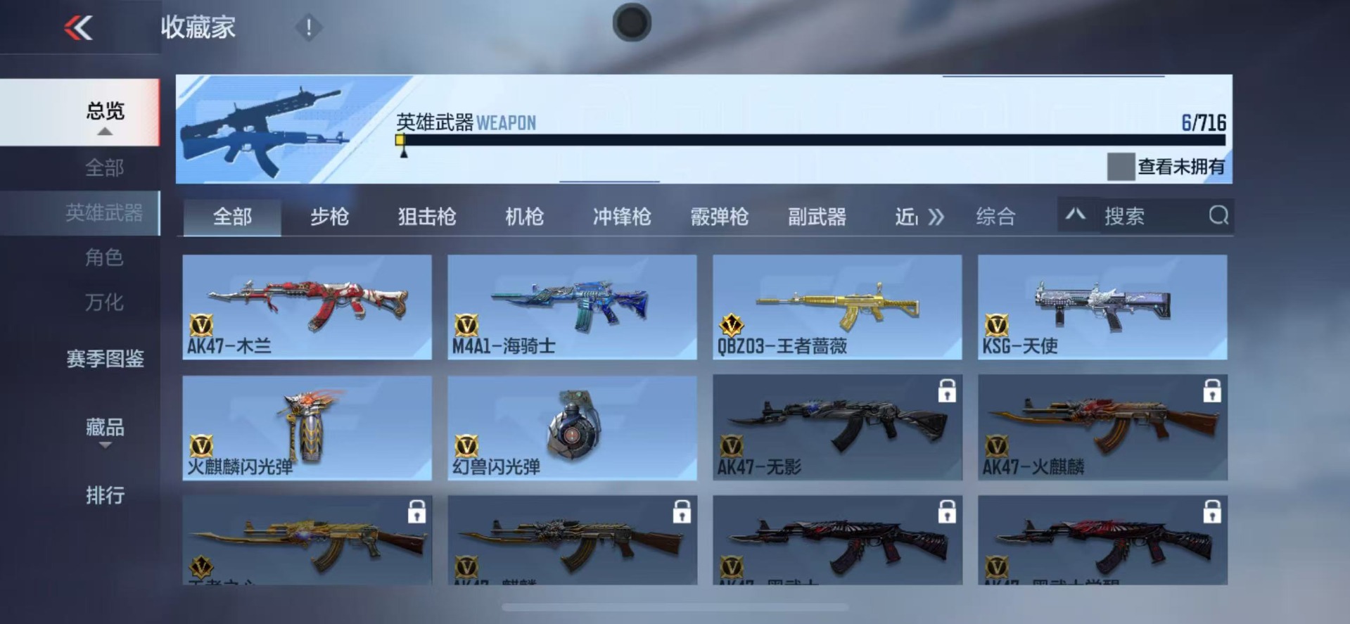 v1 1王者武器 6英雄武器 可二次 可修改实名 【v武器】:ksg-天使ak47-木兰m4a1-海骑士 【王者武器】:q03-王者蔷薇