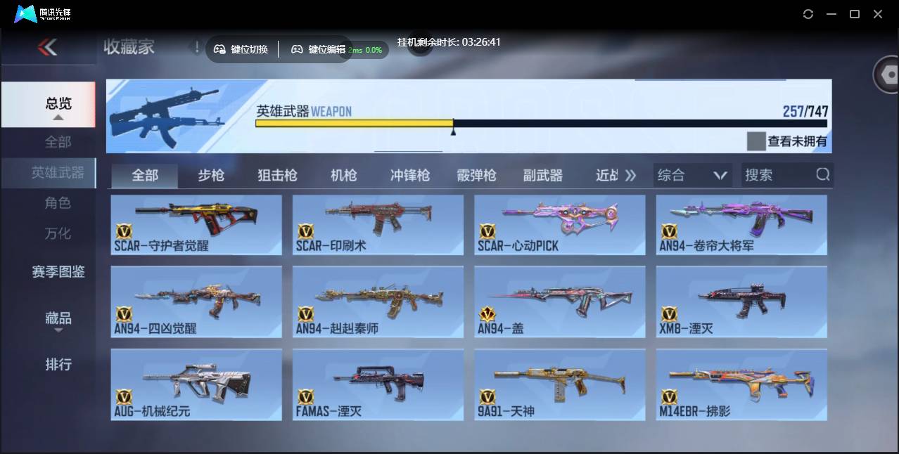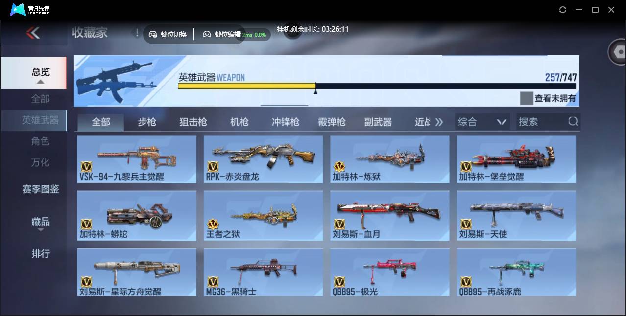 001fq:s3302,v3 7王者武器 257英雄武器 56英雄角色 339万化 英雄武器:m4a1-仲达awm-妙才m200-幻神an94-卷帘大将军hk416-混世行者81式-光明之神mk47-云舞tac-晴舞mr1-龙吟惊沧海ksg-孟获加特林-炼狱czs2-善财童子ksg-天蓬元帅ak47-火麒麟ak47-无影ak47-死神ak47-木兰m4a1-死神m4a1-黑骑士m4a1-雷神m4a1-堕天神m4a1-冰锋觉醒芭蕾特-极光芭蕾特-毁灭aug-机械纪元q03-死神q03-金色蔷薇q19-天使awm-天使98k-黑骑士刘易斯-天使mg36-黑骑士双持斯泰尔-天使mk5-极光ksg-黑骑士ak47-华夏传说ak47-沙漠领主ak47-雷麒麟ak47-猩红传说ak47-沙漠郡主-超觉ak47-黑鲨ak47-血武士m4a1-海骑士m4a1-赛博雷神m4a1-夏清觉醒m4a1-运输船m4a1-千变m4a1-猎神芭蕾特-冬灭觉醒scar-幽暗骑士觉醒scar-探星者scar-幽暗骑士9a91-天神an94-四凶觉醒awm-天龙暗杀神awm-裁决09式狙-魔音长歌觉醒sr25-燃烧泰坦gm6-战争风云觉醒09式狙-天神m200-心动次元觉醒ak47-破空冰刃ak47-轮回m14ebr-拂影scar-守护者觉醒scar-印刷术q03-玉面羞花q97-岚舞mk47-鼓龙g3a3-五色琉璃觉醒加特林-堡垒觉醒刘易斯-血月加特林-蟒蛇刘易斯-星际方舟觉醒rpk-赤炎盘龙汤姆逊-烈龙czs2-血月czs2-心动次元寒霜烈龙a180-地狱凤凰打击者-天神毁灭征服者-超越max嗜血金鲨pp19野牛-造纸术地狱烈炎地狱火ksg-火力竞放觉醒m4a1-太白诗仙scar light-白虎hk416-极光q191-金甲虎啸觉醒白骨利刃虎贲钩镰刀墨刃-幻神穷奇铁扇方天画戟沙鹰-修罗usp-机械迷城沙鹰-幻兽气手呛-血月沙鹰-神兵修罗沙鹰-冰锋觉醒沙鹰-无影usp-太白诗仙尼泊尔-冰锋觉醒尼泊尔-铜头铁臂尼泊尔-机械纪元百战巾帼呛usp-神罚龙鳞-觉醒屠龙唐刀-大唐荣耀唐刀-华夏传说迷你玉凝迷你饕餮迷你究极泰坦斩魔刀太白诗仙扇黑骑士手蕾黑骑士盐雾蛋黑骑士闪光丹幻兽闪光丹燃烧弹-游骑兵盐雾蛋-游骑兵闪光丹-游骑兵死神手蕾死神盐雾蛋死神闪光丹手蕾-竞界荣光雷神手蕾雷神闪光丹