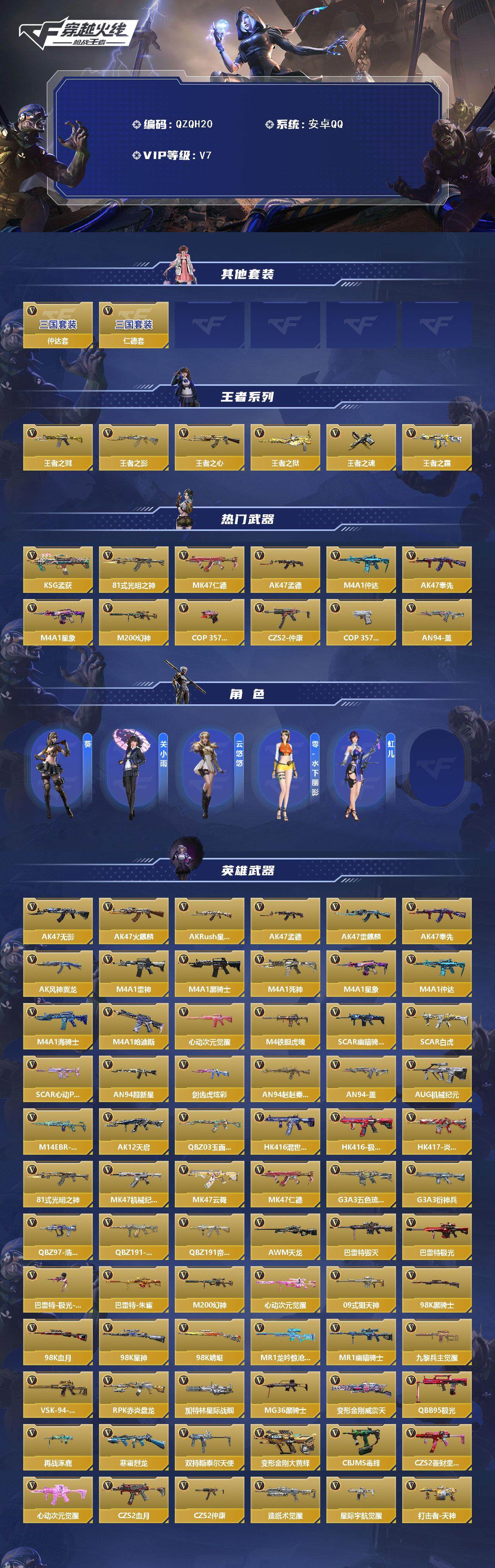 【qzqh20】vip7/279v/仲达套/仁德套/王者之戮/王者之影/王者之心/王者之狱/王者之魂/王者之霆/ksg-孟获/81式-光明之神/47-仁德/ak47-孟德/m4a1-仲达/ak47-奉先/m4a1-星象/m200-幻神/cop 357-堕天神/czs2-仲康/cop-357-安琪拉/an94-盖/葵/关小雨/云悠悠/零-水下丽影/虹儿/ak47-无影/ak47-火麒麟/ak
