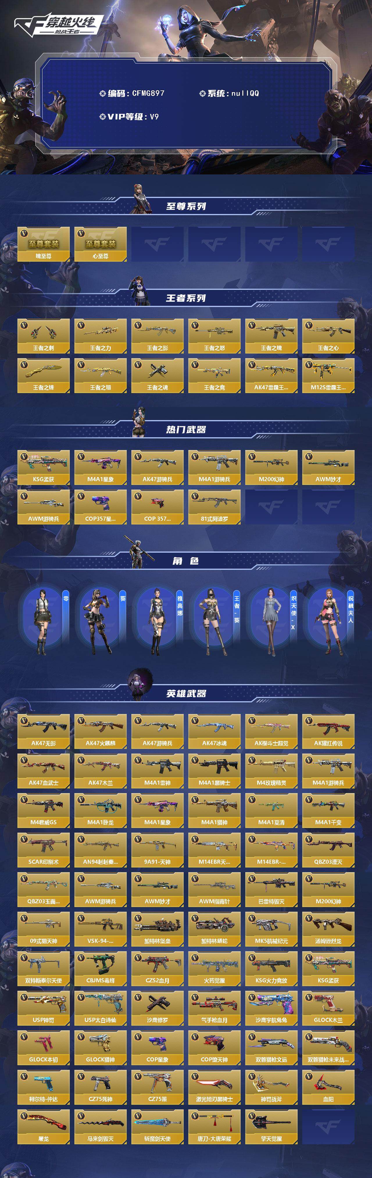 【cfmg897】vip9/176v/12王者/心至尊/魄至尊/王者之刺/王者之力/王者之影/王者之怒/王者之魄/王者之心/王者之锋/王者之翎/王者之魂/王者之竞/ak47-雷霆王者/m12s-雷霆王者/ksg-孟获/m4a1-星象/ak47-游骑兵/m4a1-游骑兵/m200-幻神/awm-妙才/awm-游骑兵/cop 357-星象/cop 357-堕天神/81式-阿波罗/零/葵/雅典娜/王者-葵/炽天使-x/祝融夫人/ak47-无影/ak47-火麒麟/ak47-冰魂/ak47-樱斗士-超觉/ak47-猩红传说/ak47-血武士/ak47-木兰/m4a1-雷神/m4a1-黑骑士/m4a1-玫瑰精灵/m4a1-君威gs/m4a1-卧龙/m4a1-猎神/m4a1-夏清/m4a1-千变/scar-印刷术/an94-赳赳秦师/9a91-天神/m14ebr-天神/m14ebr-拂影/q03-湮灭/q03-玉面羞花/awm-指南针/芭蕾特-毁灭/09式狙-天神/vsk-94-金蚀/加特林-堡垒/加特林-蟒蛇/mk5-机械纪元/汤姆逊-烈龙/双持斯泰尔-天使/cbj-ms-毒蜂/czs2-血月/aa12-火药觉醒/ksg-火力竞放/usp-神罚/usp-太白诗仙/沙鹰-修罗/气手呛-血月/沙鹰-宇航兔兔/改装glock-木兰/双持glock18-本初/glock18-猎神/双管猎呛-文远/双管猎呛-未来战士/柯尔特-仲达/cz75-死神/cz75-策/激光短刃-黑骑士/神罚战斧/血阳/屠龙/马来剑-毁灭/斩魔剑-天使/唐刀-大唐荣耀/擎天觉醒