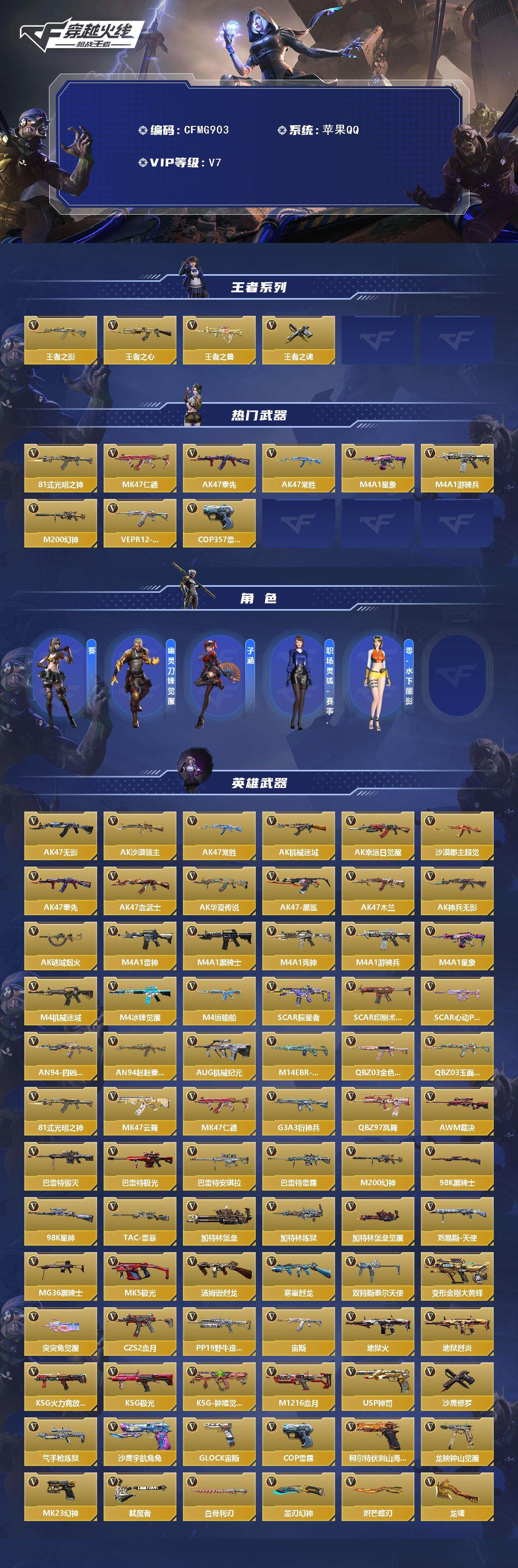 【cfmg903】vip7/149v/王者之影/王者之心/王者之兽/王者之魂/81式-光明之神/mk47-仁德/ak47-奉先/ak47-常胜/m4a1-星象/m4a1-游骑兵/m200-幻神/vepr12-宙斯/cop 357-雷霆/葵/幽灵刀锋-觉醒/子涵/职场灵狐-赛事经理/零-水下丽影/ak47-无影/ak47-沙漠领主/ak47-机械迷城/ak47-幸运日觉醒/ak47-沙漠郡主-超觉/ak47-血武士/ak47-华夏传说/ak47-黑鲨/ak47-木兰/ak47-神兵无影/ak47-谜城烟火/m4a1-雷神/m4a1-黑骑士/m4a1-死神/m4a1-机械迷城/m4a1-冰锋觉醒/m4a1-运输船/scar-探星者/scar-印刷术觉醒/scar-心动pick/an94-四凶觉醒/an94-赳赳秦师/aug-机械纪元/m14ebr-葫芦山庄/q03-金色蔷薇/q03-玉面羞花/mk47-云舞/g3a3-衍神兵/q97-岚舞/awm-裁决/芭蕾特-毁灭/芭蕾特-极光/芭蕾特-安琪拉/芭蕾特-雷霆/98k-黑骑士/98k-星神/tac-雷暴/加特林-堡垒/加特林-炼狱/加特林-堡垒觉醒/刘易斯-天使/mg36-黑骑士/mk5-极光/汤姆逊-烈龙/寒霜烈龙/双持斯泰尔-天使/qcw05-变形金刚·大黄蜂/p90-突突兔觉醒/czs2-血月/pp19野牛-造纸术/地狱火/地狱烈炎/ksg-火力竞放觉醒/ksg-极光/ksg-钟馗觉醒/m1216-血月/usp-神罚/沙鹰-修罗/气手呛-炼狱/沙鹰-宇航兔兔/glock18-宙斯/柯尔特-伏刹山海觉醒/cz75-龙映钟山觉醒/mk23-幻神/弑魔者/白骨利刃/墨刃-幻神/炽芒蝶刃/龙啸/神罚战斧/手斧-机械迷城/秋逸觉醒/屠龙/尼泊尔-火麒麟/尼泊尔-铜头铁臂/龙鳞-觉醒/麒麟刺/星芒/麒麟刺-堕天神/马来剑-毁灭/丈八蛇矛/雷霆权杖-宙斯/唐刀-大唐荣耀/擎天/斩神刀-雷暴/迷你玉凝