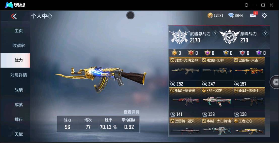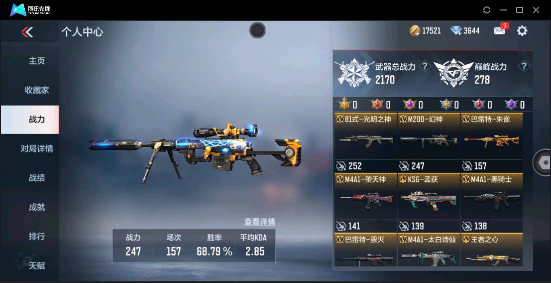 007m:m60121【安卓qq】【可二次实名】vip3,【m200-幻神,tac-慈,王者之狱,王者之尊,王者之心,王者之魂,孟获,炽天使-x,零-新生,宋雨琦-x,审判者,零,刀锋-呛战王者】英雄级武器160,万化204,角色27 【热门皮肤】:81式-光明之神-三足金乌、屠龙-星空、ak47-无影-暗月、m4a1-雷神-千变、蝴蝶刀-极光-清凉夏日、擎天觉醒-现代金属、尼泊尔-火麒麟-能量核心、芭蕾特-极光-清凉夏日、m4a1-黑骑士-白马银呛、m4a1-黑骑士-现代金属、ak47-火麒麟-白虎、m4a1-雷神-rgb骇客、芭蕾特-毁灭-星空、m4a1-死神-机甲核心、沙鹰-修罗-现代金属 【稀有道具】:98k-星神-电音、m4a1-雷神-电音、tac-慈-古代战场、m4a1-仲达-现代战场、ak47-无影-电音、消灭音效-能量核心、消灭音效-斩杀、消灭音效-炎龙铠甲、98k-星神-漫游之线、awm-裁决-流光之线 详情看图【英雄武器包含数量可能含有时效性武器,具体以截图内实际拥有为主】【官方截图】