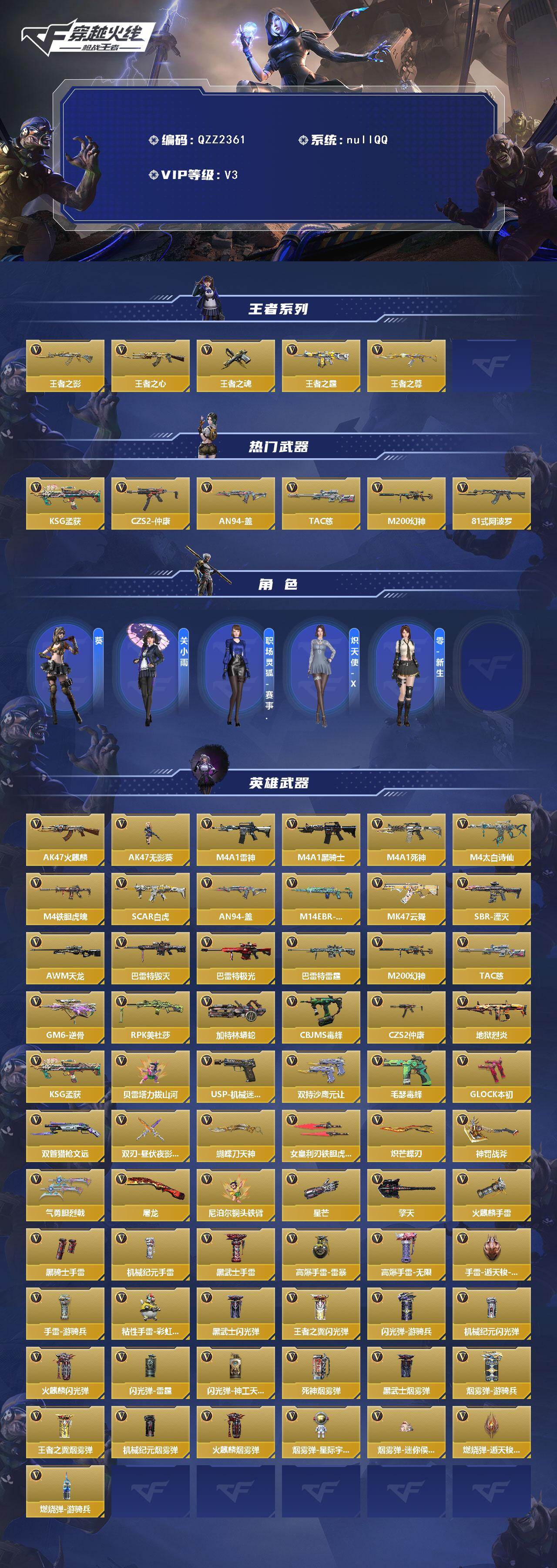【qzz2361】vip3/105v/王者之影/王者之心/王者之魂/王者之霆/王者之尊/ksg-孟获/czs2-仲康/an94-盖/tac-慈/m200-幻神/81式-阿波罗/葵/关小雨/职场灵狐-赛事经理/炽天使-x/零-新生/ak47-火麒麟/ak47-无影-葵/m4a1-雷神/m4a1-黑骑士/m4a1-死神/m4a1-太白诗仙/m4a1-铁胆虎魄/scar light-白虎/m14ebr-葫芦山庄/mk47-云舞/sbr-湮灭/awm-天龙/芭蕾特-毁灭/芭蕾特-极光/芭蕾特-雷霆/gm6-逆骨/rpk-美杜莎/加特林-蟒蛇/cbj-ms-毒蜂/地狱烈炎/贝雷塔-力拔山河/usp-机械迷城/双持沙鹰-元让/毛瑟-毒蜂/双持glock18-本初/双管猎呛-文远/双刃-昼伏夜影觉醒/蝴蝶刀-天神/女皇利刃-铁胆虎魄/炽芒蝶刃/神罚战斧/气勇胆烈戟/屠龙/尼泊尔-铜头铁臂/星芒/擎天/火麒麟手蕾/黑骑士手蕾/机械纪元手蕾/黑武士手蕾/高爆手蕾-雷暴/高爆手蕾-无限/手蕾-遁天梭-钻山锥/手蕾-游骑兵/粘性手蕾-彩虹小白马觉醒/黑武士闪光丹/王者之翼闪光丹/闪光丹-游骑兵/机械纪元闪光丹/火麒麟闪光丹/闪光丹-雷霆/闪光丹-神工天巧/死神盐雾蛋/黑武士盐雾蛋/盐雾蛋-游骑兵/王者之翼盐雾蛋/机械纪元盐雾蛋/火麒麟盐雾蛋/盐雾蛋-星际宇航/盐雾蛋-迷你侯卿/燃烧弹-遁天梭-剑鱼阵/燃烧弹-游骑兵