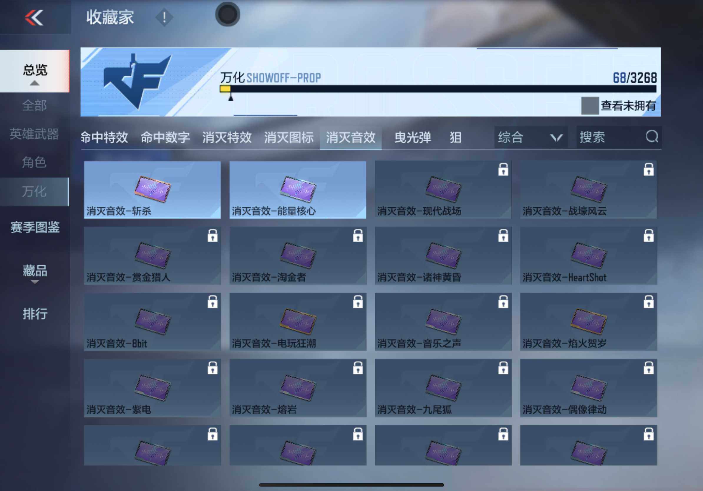 v3/4王者214英雄/王者之心/王者之影/王者之霆/王者之魂/m4仲达/an94盖/81光明之神/tac慈/m200幻神/czs2仲康/黑铁cop冰川守护/柯尔特仲达/双持gl0ck18本初/7屠龙/思召剑/炽芒蝶刃/角色/炽天使-x/消灭音效/能量核心/斩杀/