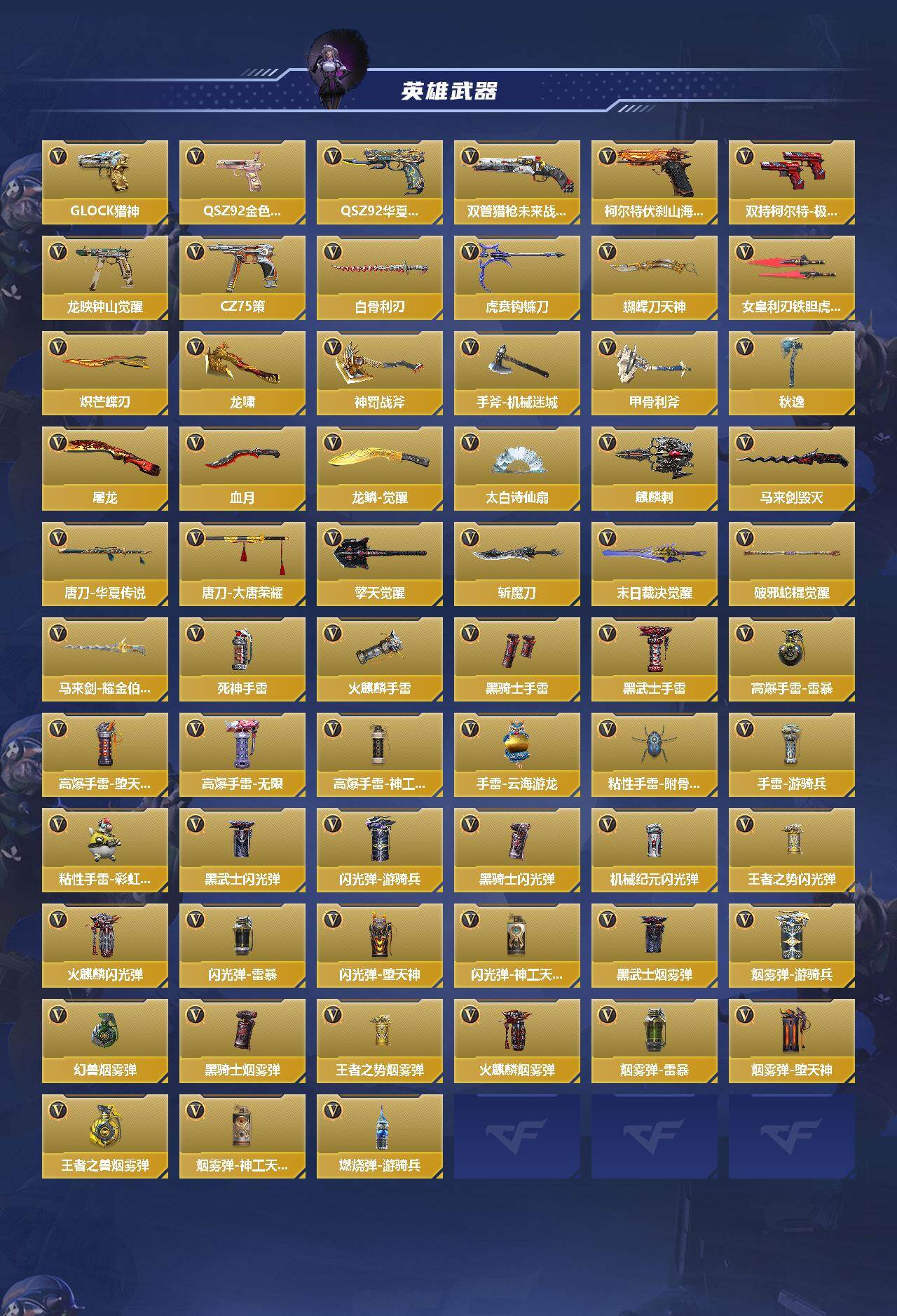 【qzf57】vip5/245v/王者之心/王者之魂/王者之霆/王者之誉/王者之尊/ksg-孟获/81式-光明之神/47-仁德/m4a1-仲达/m200-幻神/81式-阿波罗/审判者/萝拉/葵/杨玉凝-x/炽天使-x/ak47-无影/ak47-火麒麟/ak47-幸运日觉醒/ak47-猩红传说/ak47-沙漠郡主-超觉/ak47-血武士/ak47-黑鲨/ak47-木兰/ak47-雅韵青花/a
