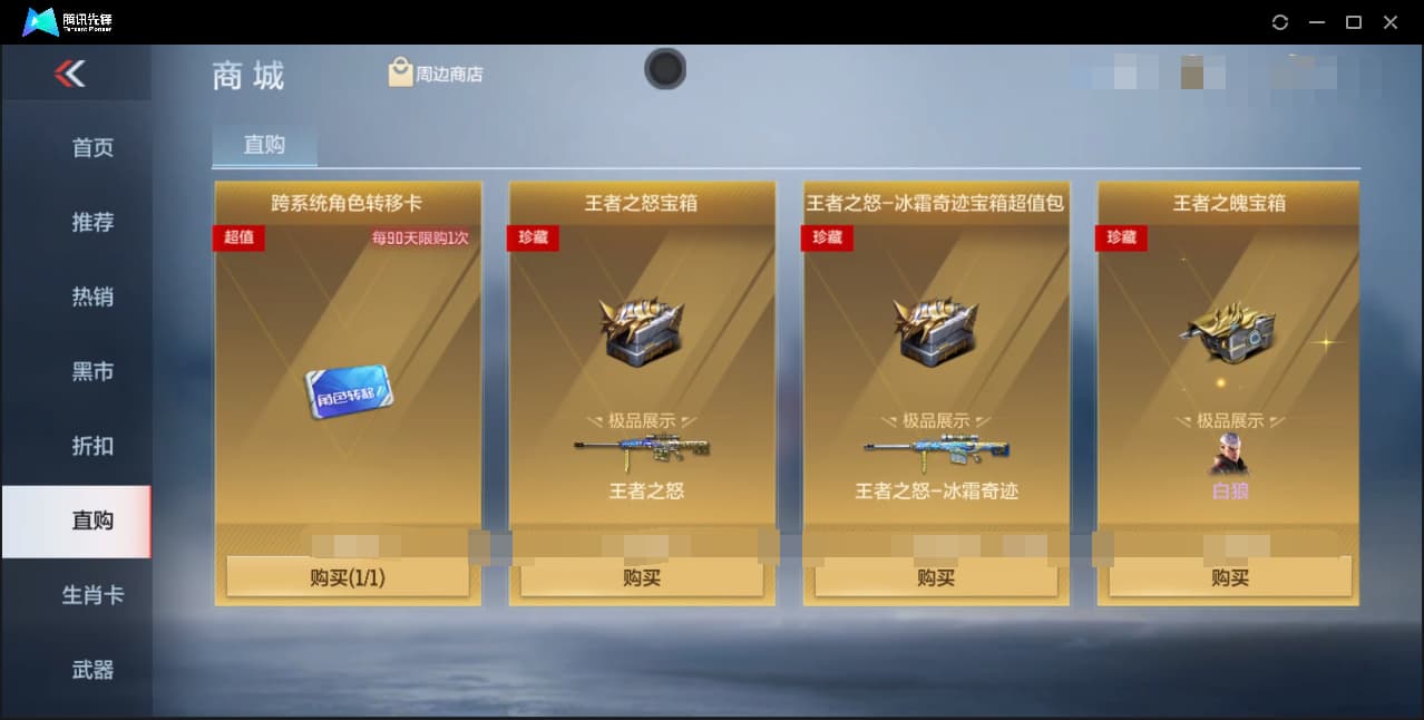 [14672905]e192551 cf手游/iosqq/贵9/可转区/275v/27王者/影至尊/王者之心/王者之翼-冰霜奇迹/王者之魄-冠军珍藏2/王者之尊/王者之心/王者之怒-heartshot/王者之光-冰霜奇迹/王者之神/王者之狱/王者之烈/m4威候/awm妙才2/ksg孟获/幻神套
