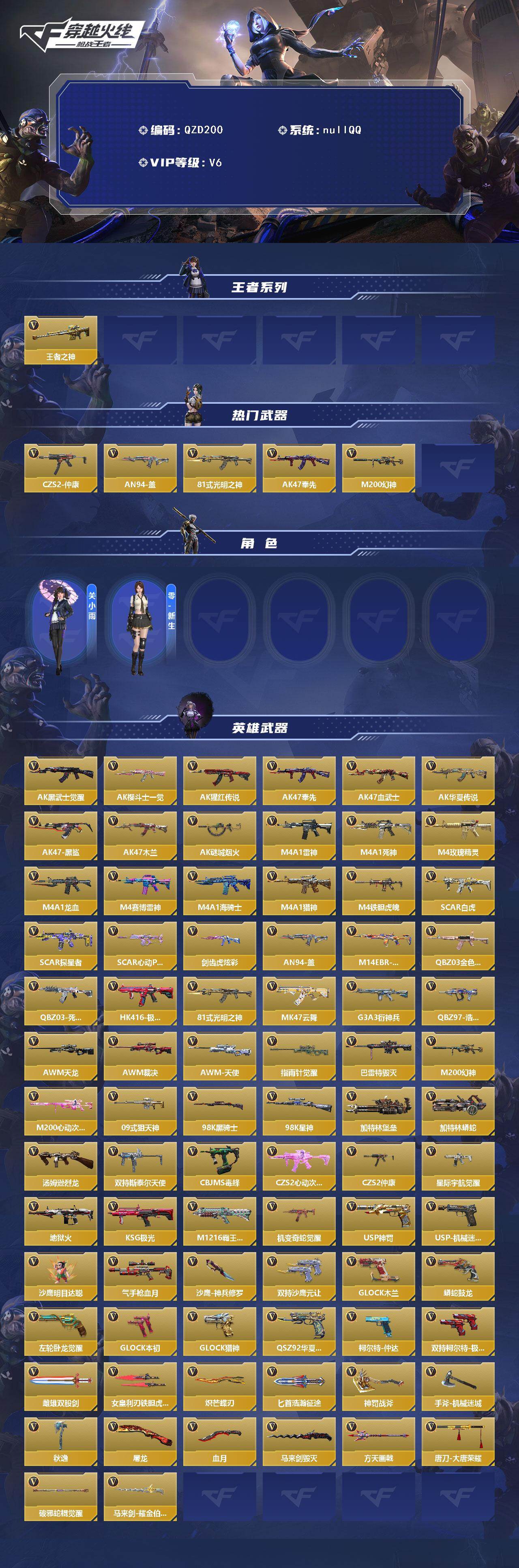 【qzd200】vip6/138v/王者之神/czs2-仲康/an94-盖/81式-光明之神/ak47-奉先/m200-幻神/关小雨/零-新生/ak47-黑武士觉醒/ak47-樱斗士-一觉/ak47-猩红传说/ak47-血武士/ak47-华夏传说/ak47-黑鲨/ak47-木兰/ak47-谜城烟火/m4a1-雷神/m4a1-死神/m4a1-玫瑰精灵/m4a1-龙血/m4a1-赛博雷神/m4a1