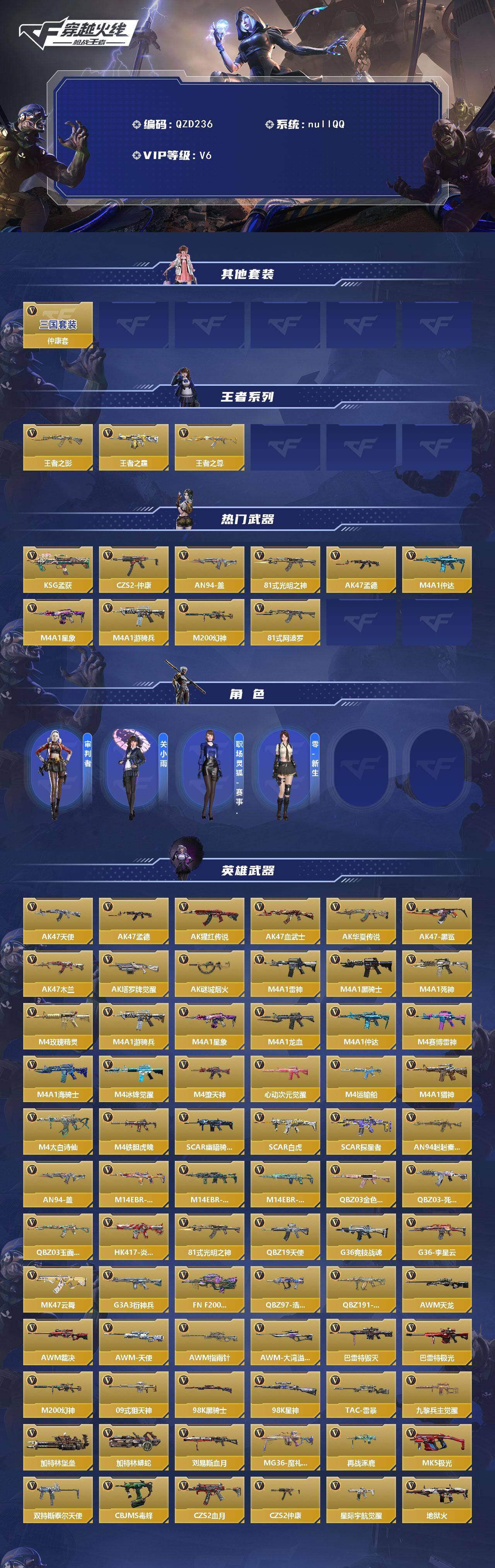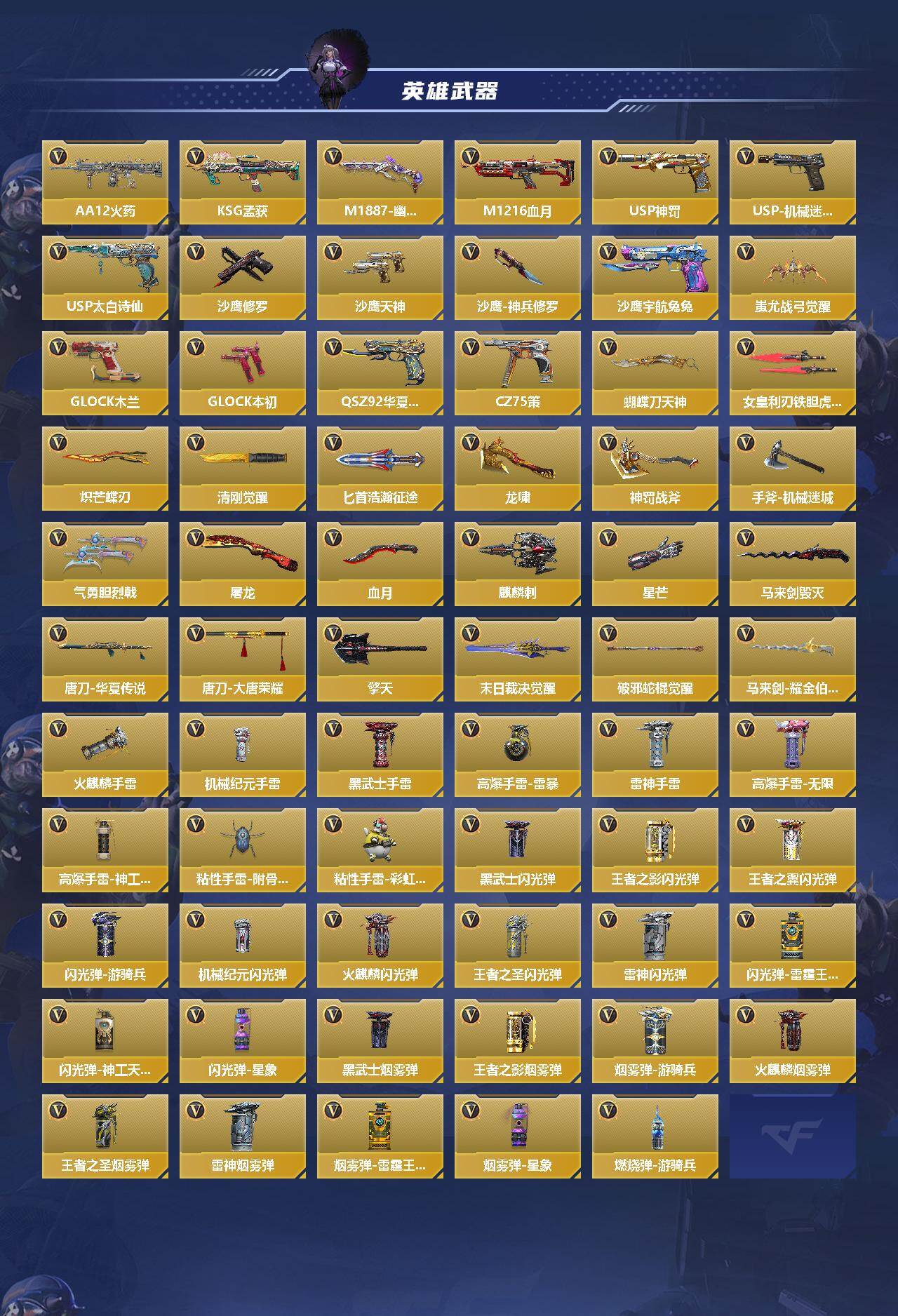 【qzd236】vip6/239v/仲康套/王者之影/王者之霆/王者之尊/ksg-孟获/czs2-仲康/an94-盖/81式-光明之神/ak47-孟德/m4a1-仲达/m4a1-星象/m4a1-游骑兵/m200-幻神/81式-阿波罗/审判者/关小雨/职场灵狐-赛事经理/零-新生/ak47-天使/ak47-猩红传说/ak47-血武士/ak47-华夏传说/ak47-黑鲨/ak47-木兰/ak47-塔罗牌觉醒/ak47-谜城烟火/m4a1-雷神/m4a1-黑骑士/m4a1-死神/m4a1-玫瑰精灵/m4a1-龙血/m4a1-赛博雷神/m4a1-海骑士/m4a1-冰锋觉醒/m4a1-堕天神/m4a1-心动次元觉醒/m4a1-运输船/m4a1-猎神/m4a1-太白诗仙/m4a1-铁胆虎魄/scar-幽暗骑士/scar light-白虎/scar-探星者/an94-赳赳秦师/m14ebr-拂影/m14ebr-玄武/m14ebr-葫芦山庄/q03-金色蔷薇/q03-死神/q03-玉面羞花/hk417-炎龙铠甲/q19-天使/g36-竞技战魂/g36-李星云/mk47-云舞/g3a3-衍神兵/fn f2000-十绝阵觉醒/q97-浩瀚征途/q191-封神榜/awm-天龙/awm-裁决/awm-天使/awm-指南针/awm-大湾溢彩/芭蕾特-毁灭/芭蕾特-极光/09式狙-天神/98k-黑骑士/98k-星神/tac-雷暴/vsk-94-九黎兵主觉醒/加特林-堡垒/加特林-蟒蛇/刘易斯-血月/mg36-魔礼青/qbb95-再战涿鹿/mk5-极光/双持斯泰尔-天使/cbj-ms-毒蜂/czs2-血月/ddm4-pdw-星际宇航觉醒/地狱火/aa12-火药/m1887-幽冥玄喵觉醒/m1216-血月/usp-神罚/usp-机械迷城/usp-太白诗仙/沙鹰-修罗/沙鹰-天神/沙鹰-神兵修罗/沙鹰-宇航兔兔/蚩尤战弓觉醒/改装glock-木兰/双持glock18-本初/qsz92-华夏传说/cz75-策/蝴蝶刀-天神/女皇利刃-铁胆虎魄/炽芒蝶刃/清刚-觉醒/匕首-浩瀚征途/龙啸/神罚战斧/手斧-机械迷城/气勇胆烈戟/屠龙/血月/麒麟刺/星芒/马来剑-毁灭/唐刀-华夏传说/唐刀-大唐荣耀/擎天/末日裁决觉醒/破邪蛇棍觉醒/马来剑-耀金伯爵/火麒麟手蕾/机械纪元手蕾/黑武士手蕾/高爆手蕾-雷暴/雷神手蕾/高爆手蕾-无限/高爆手蕾-神工天巧/粘性手蕾-附骨之虫觉醒/粘性手蕾-彩虹小白马觉醒/黑武士闪光丹/王者之影闪光丹/王者之翼闪光丹/闪光丹-游骑兵/机械纪元闪光丹/火麒麟闪光丹/王者之圣闪光丹/雷神闪光丹/闪光丹-雷霆王者/闪光丹-神工天巧/闪光丹-星象/黑武士盐雾蛋/王者之影盐雾蛋/盐雾蛋-游骑兵/火麒麟盐雾蛋/王者之圣盐雾蛋/雷神盐雾蛋/盐雾蛋-雷霆王者/盐雾蛋-星象/燃烧弹-游骑兵
