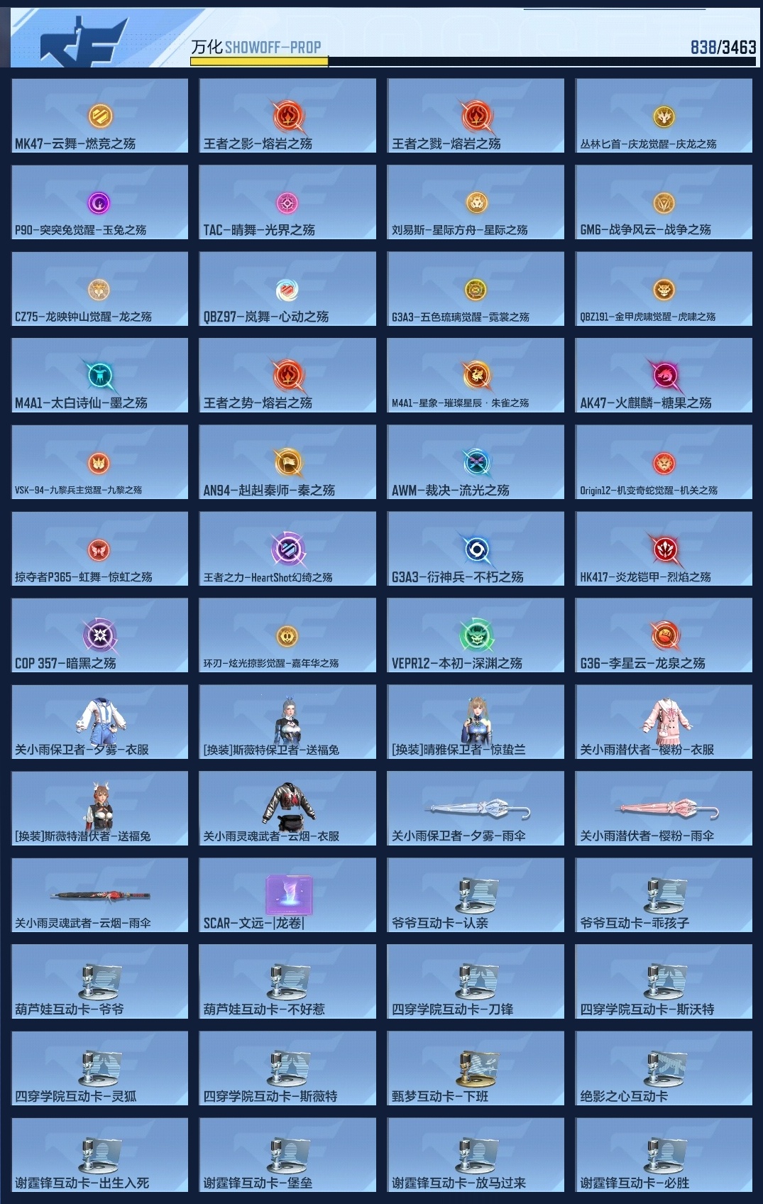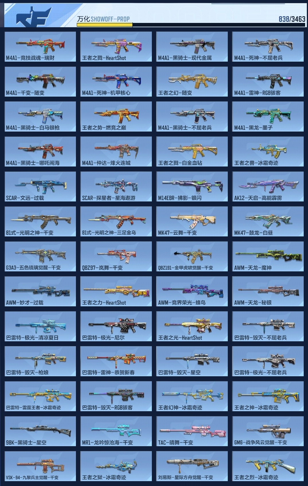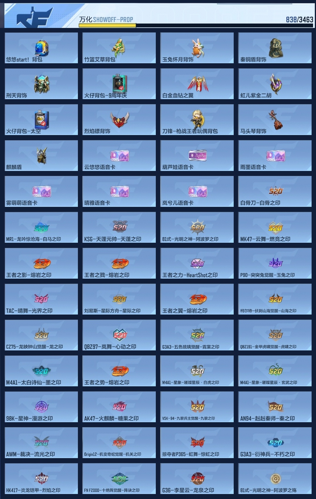 650547 【极品v10-十三至尊77王者-拉丝王力-冰皮雷霆大炮-冰皮王幻-11cop-满配三国套装-多狙击-爆破生化全能】 王者v武器数量52 英雄武器数量410 音效卡数量16 万化数量838 vip等级【文本】vip10级 【呛皇】 【支持】 【是】 【可排位】 音效卡16 狙击呛线4 消灭音效8 语音卡6 抛物线10 音效卡:王者之力-现代战场,王者之影-现代战场,王者之翼-现代战场,王者之戮-现代战场,王者之光-现代战场,王者之武-现代战场,m200-幻神-现代战场,ak47-无影-电音,芭蕾特-毁灭-现代战场,m4a1-仲达-现代战场,m4a1-仲达-原汁原味,芭蕾特-定军-没金饮羽,mk47-鼓龙-嘴炮,m4a1-雷神-电音,ak47-火麒麟-电音,98k-星神-电音; 狙击呛线:狙击呛线-诸神黄昏,狙击呛线-heartshot,狙击呛线-荣耀,awm-裁决-流光之线; 消灭音效:消灭音效-赏金猎人,消灭音效-诸神黄昏,消灭音效-8bit,消灭音效-能量核心,消灭音效-巴巴塔,消灭音效-焰火贺岁,消灭音效-斩杀,消灭音效-炎龙铠甲; 语音卡:岚兮儿语音卡,晴雅语音卡,雾萌萌语音卡,雨墨语音卡,葫芦娃语音卡,云悠悠语音卡; 抛物线:抛物线-能量核心,抛物线-熔岩,抛物线-字,抛物线-heartshot,抛物线-绿,抛物线-蓝,抛物线-黄,抛物线-粉,抛物线-荣耀,抛物线-诸神黄昏;