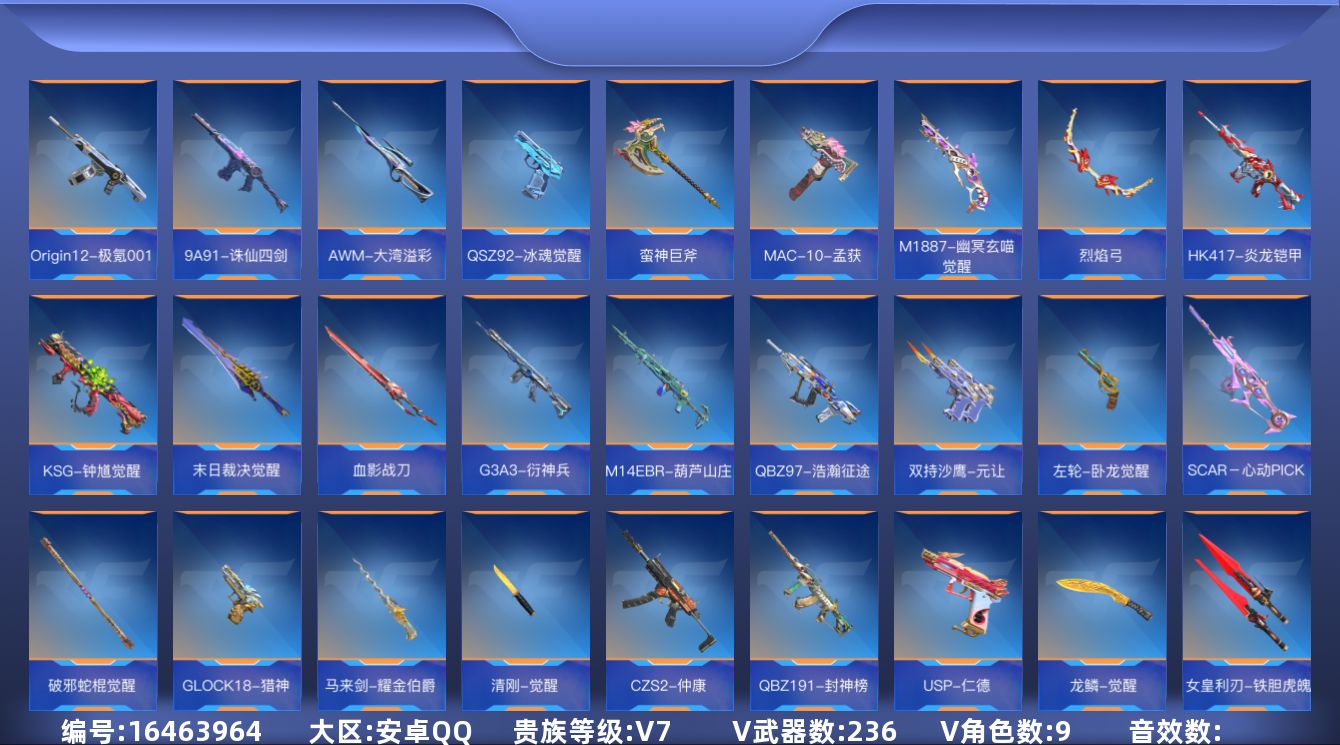 [16463964]v7 15王者武器 236英雄武器 9英雄角色 可二次 可修改实名 【v武器】hk416-极光太白诗仙扇usp-太白诗仙m4a1-太白诗仙scar light-白虎ksg-孟获迷你玉凝m14ebr-拂影09式狙-魔音长歌觉醒双管猎呛-文远m4a1-猎神虎贲钩镰刀scar-印刷术觉醒scar-印刷术9a91-魔蜥觉醒蝴蝶刀-天神百战巾帼呛m4a1-雷暴m4a1-千变ak47-木兰an94-赳赳秦师cz75-策cbj-ms-毒蜂毛瑟-毒蜂m16-恶魔vsk-94-九黎兵主觉醒scar-探星者手斧-机械迷城穷奇铁扇唐刀-大唐荣耀丛林匕首-庆龙觉醒左轮-黑武士柯尔特-仲达usp-机械迷城pp19野牛-造纸术98k-星神秋逸觉醒打击者-天神an94-四凶觉醒czs2-血月mk23-双脊龙qcw05-变形金刚·大黄蜂igin12-极氪001awm-大湾溢彩王者之誉ksg-钟馗觉醒hk417-炎龙铠甲烈焰弓m1887-幽冥玄喵觉醒mac-10-孟获蛮神巨斧qsz92-冰魂觉醒末日裁决觉醒9a91-诛仙四剑9a91-天神沙鹰-宇航兔兔q191-封神榜usp-仁德龙鳞-觉醒女皇利刃-铁胆虎魄唐刀-神工天巧czs2-仲康awm-指南针觉醒usp-神工天巧hk417-朱雀双持沙鹰-元让左轮-卧龙觉醒q97-浩瀚征途m14ebr-葫芦山庄g3a3-衍神兵血影战刀破邪蛇棍觉醒清刚-觉醒马来剑-耀金伯爵glock18-猎神scar-心动pick加特林-堡垒m4a1-黑龙mr1-龙吟惊沧海m200-心动次元觉醒ak47-火麒麟m4a1-雷神ak47-无影m4a1-黑骑士q03-湮灭m4a1-死神ak47-沙漠领主ak47-黑武士觉醒98k-黑骑士awm-妙才加特林-炼狱刘易斯-血月awm-天龙awm-裁决芭蕾特-毁灭09式狙-天神暗杀神芭蕾特-极光ak47-沙漠郡主-超觉sks-美杜莎81式-光明之神m4a1-冰锋觉醒m4a1-机械迷城m4a1-星象scar-幽暗骑士觉醒9a91-游骑兵m4a1-仲达ak47-变色龙a180-地狱凤凰血阳神罚战斧斩魔剑-天使