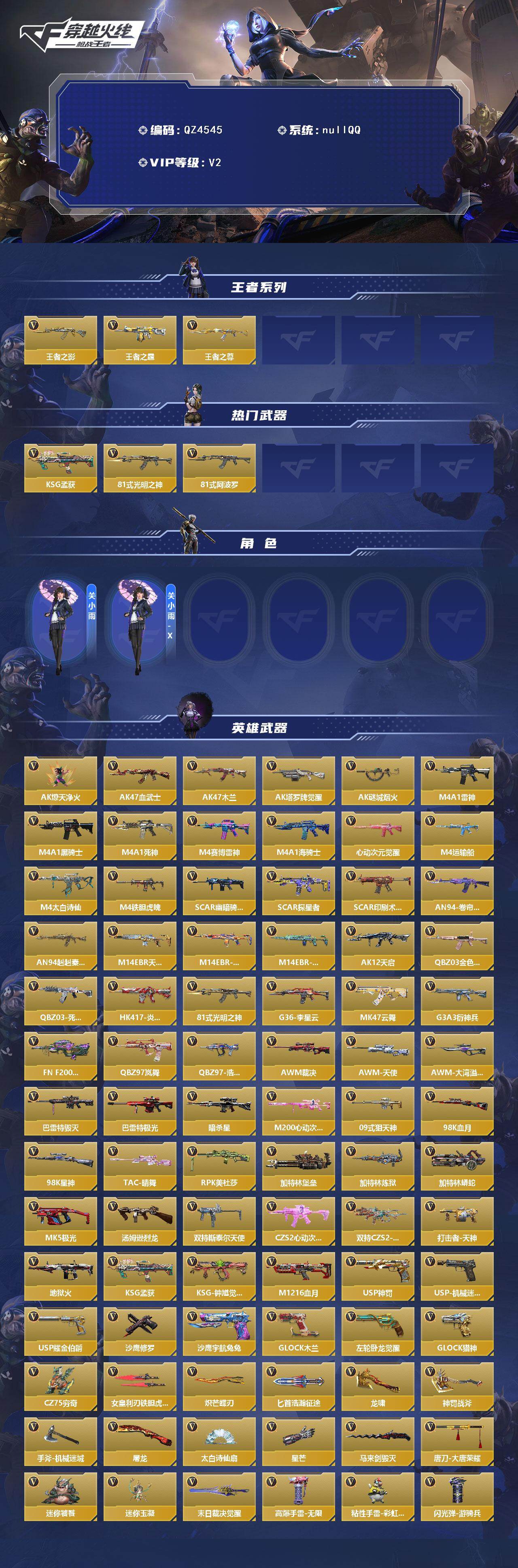 【qz4545】vip2/162v/王者之影/王者之霆/王者之尊/ksg-孟获/81式-光明之神/81式-阿波罗/关小雨/关小雨-x/ak47-燎天净火/ak47-血武士/ak47-木兰/ak47-塔罗牌觉醒/ak47-谜城烟火/m4a1-雷神/m4a1-黑骑士/m4a1-死神/m4a1-赛博雷神/m4a1-海骑士/m4a1-心动次元觉醒/m4a1-运输船/m4a1-太白诗仙/m4a1-铁胆虎魄/scar-幽暗骑士/scar-探星者/scar-印刷术觉醒/an94-卷帘大将军/an94-赳赳秦师/m14ebr-天神/m14ebr-拂影/m14ebr-葫芦山庄/ak12-天启/q03-金色蔷薇/q03-死神/hk417-炎龙铠甲/g36-李星云/mk47-云舞/g3a3-衍神兵/fn f2000-十绝阵觉醒/q97-岚舞/q97-浩瀚征途/awm-裁决/awm-天使/awm-大湾溢彩/芭蕾特-毁灭/芭蕾特-极光/暗杀星/m200-心动次元/09式狙-天神/98k-血月/98k-星神/tac-晴舞/rpk-美杜莎/加特林-堡垒/加特林-炼狱/加特林-蟒蛇/mk5-极光/汤姆逊-烈龙/双持斯泰尔-天使/czs2-心动次元/双持czs2-魔礼寿/打击者-天神/地狱火/ksg-钟馗觉醒/m1216-血月/usp-神罚/usp-机械迷城/usp-耀金伯爵/沙鹰-修罗/沙鹰-宇航兔兔/改装glock-木兰/左轮-卧龙觉醒/glock18-猎神/cz75-穷奇/女皇利刃-铁胆虎魄/炽芒蝶刃/匕首-浩瀚征途/龙啸/神罚战斧/手斧-机械迷城/屠龙/太白诗仙扇/星芒/马来剑-毁灭/唐刀-大唐荣耀/迷你饕餮/迷你玉凝/末日裁决觉醒/高爆手蕾-无限/粘性手蕾-彩虹小白马觉醒/闪光丹-游骑兵/火麒麟闪光丹/盐雾蛋-游骑兵/黑骑士盐雾蛋/盐雾蛋-神工天巧/盐雾蛋-星际宇航/燃烧弹-游骑兵