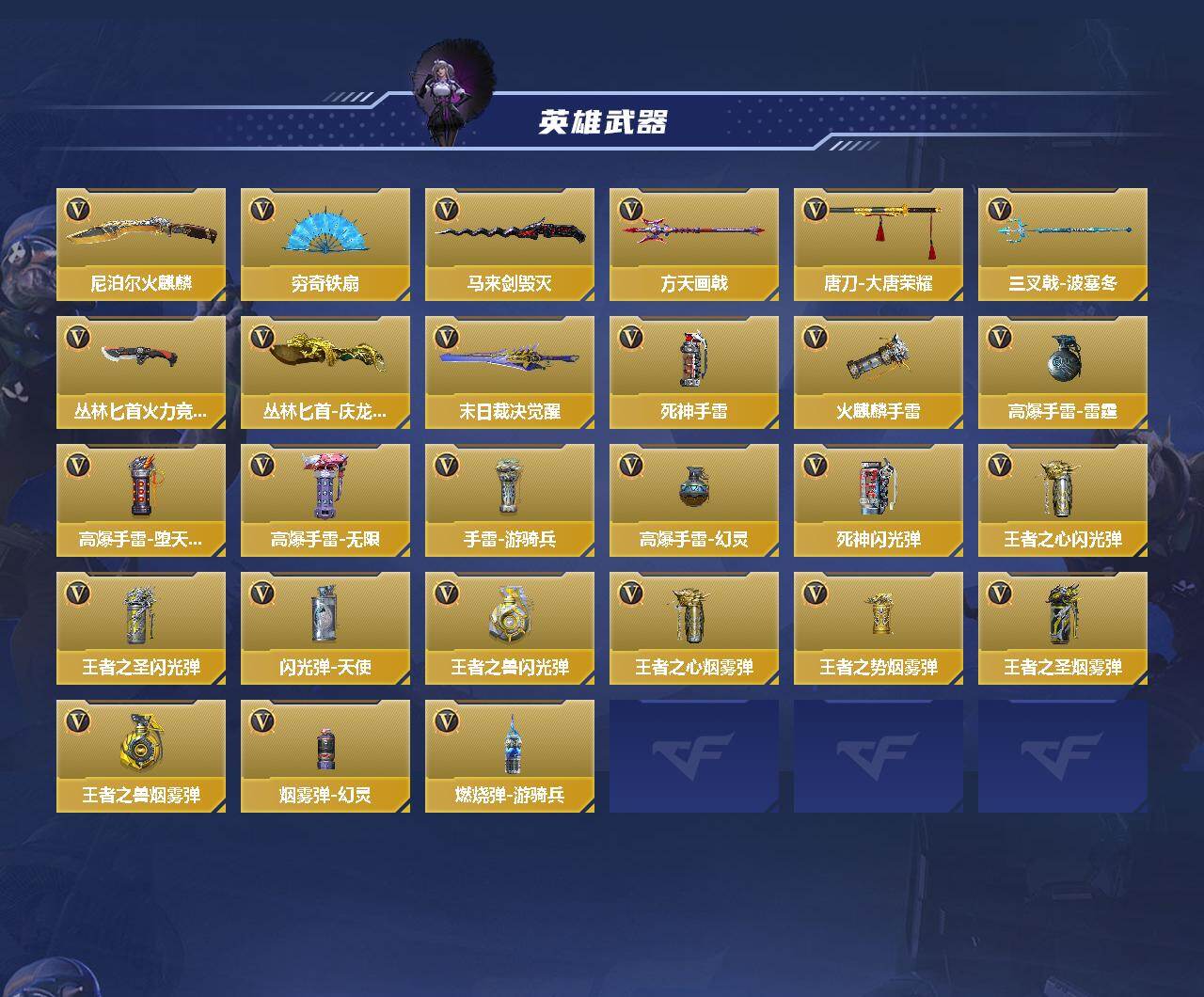 【qzx2289】vip6/214v/王者之怒/王者之蝶/王者之魂/王者之尊/ksg-孟获/81式-光明之神/tac-慈/m200-幻神/cop 357-星象/审判者/零/樱/职场灵狐-赛事经理/ak47-无影/ak47-沙漠领主/ak47-沙漠郡主-一觉/ak47-沙漠郡主-超觉/ak47-幸运日/ak47-燎天净火/ak47-心动次元觉醒/ak47-血武士/ak47-波塞冬/ak47-华夏传说/ak47-轮回/ak47-塔罗牌觉醒/ak47-谜城烟火/m4a1-雷神/m4a1-黑骑士/m4a1-死神/m4a1-玫瑰精灵/m4a1-机械迷城/m4a1-海骑士/m4a1-心动次元觉醒/m4a1-运输船/q95-天使/scar-探星者/aug-机械纪元/m16-恶魔/ak12-天启/q03-玉面羞花/hk417-炎龙铠甲/g36-李星云/mk47-机械纪元/mk47-云舞/g3a3-衍神兵/fn f2000-十绝阵觉醒/ak103-湮灭/sbr-湮灭/awm-天龙/awm-大湾溢彩/芭蕾特-毁灭/芭蕾特-极光/芭蕾特-安琪拉/m200-心动次元觉醒/98k-星神/mr1-龙吟惊沧海/sr25-燃烧泰坦/加特林-堡垒/汤姆逊-烈龙/双持斯泰尔-天使/qcw05-未来战士/cbj-ms-毒蜂/czs2-血月/地狱火/ksg-天蓬元帅/ksg-火力竞放/ksg-钟馗觉醒/usp-神罚/usp-机械迷城/usp-太白诗仙/沙鹰-修罗/沙鹰-火麒麟/沙鹰-无影/气手呛-炼狱/沙鹰-波塞冬/沙鹰-宇航兔兔/毛瑟-毒蜂/蟒蛇-火力竞放/glock18-猎神/qsz92-天使/柯尔特-仲达/柯尔特-伏刹山海觉醒/cz75-穷奇/白骨利刃/女皇利刃-铁胆虎魄/炽芒蝶刃/清刚-觉醒/龙啸/神罚战斧/血阳/手斧-机械迷城/屠龙/尼泊尔-火麒麟/穷奇铁扇/马来剑-毁灭/方天画戟/唐刀-大唐荣耀/三叉戟-波塞冬/丛林匕首-火力竞放/丛林匕首-庆龙觉醒/末日裁决觉醒/死神手蕾/火麒麟手蕾/高爆手蕾-雷霆/高爆手蕾-堕天神/高爆手蕾-无限/手蕾-游骑兵/高爆手蕾-幻灵/死神闪光丹/王者之心闪光丹/王者之圣闪光丹/闪光丹-天使/王者之兽闪光丹/王者之心盐雾蛋/王者之势盐雾蛋/王者之圣盐雾蛋/王者之兽盐雾蛋/盐雾蛋-幻灵/燃烧弹-游骑兵