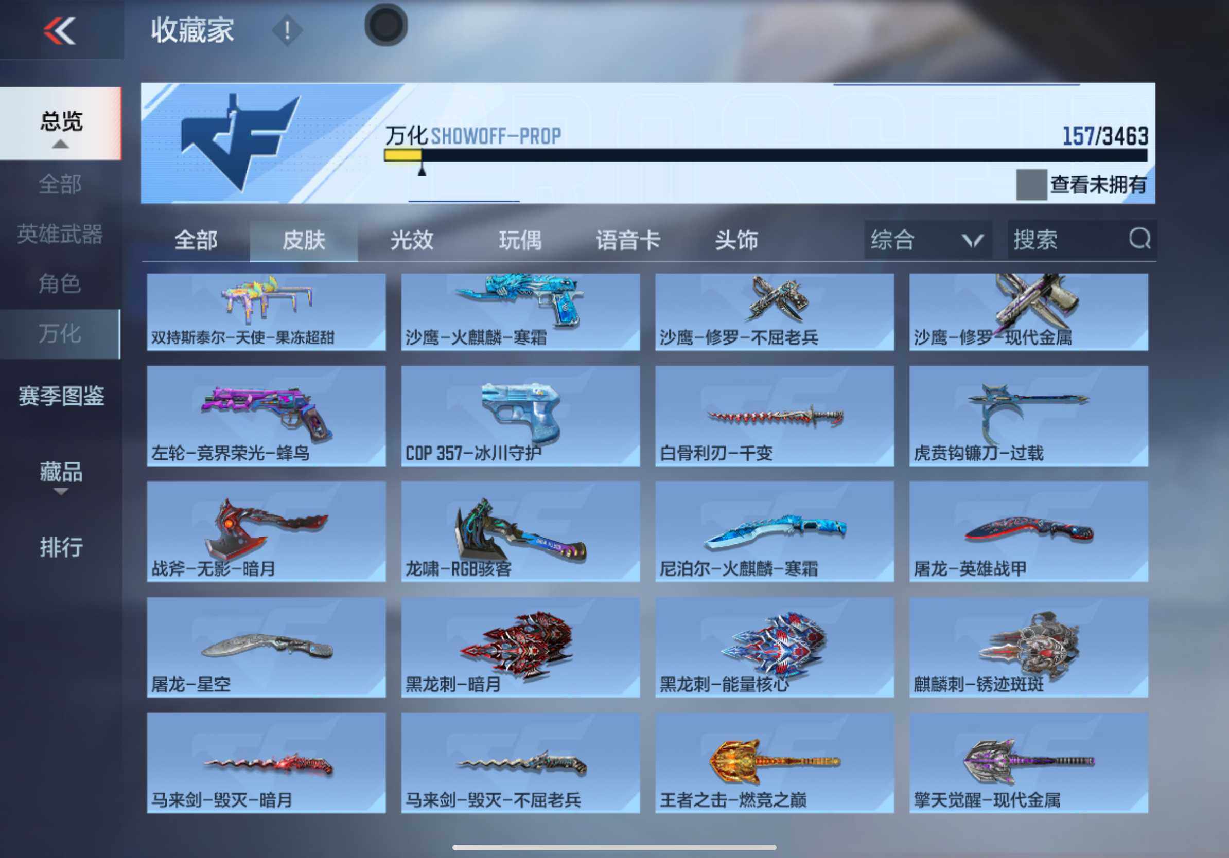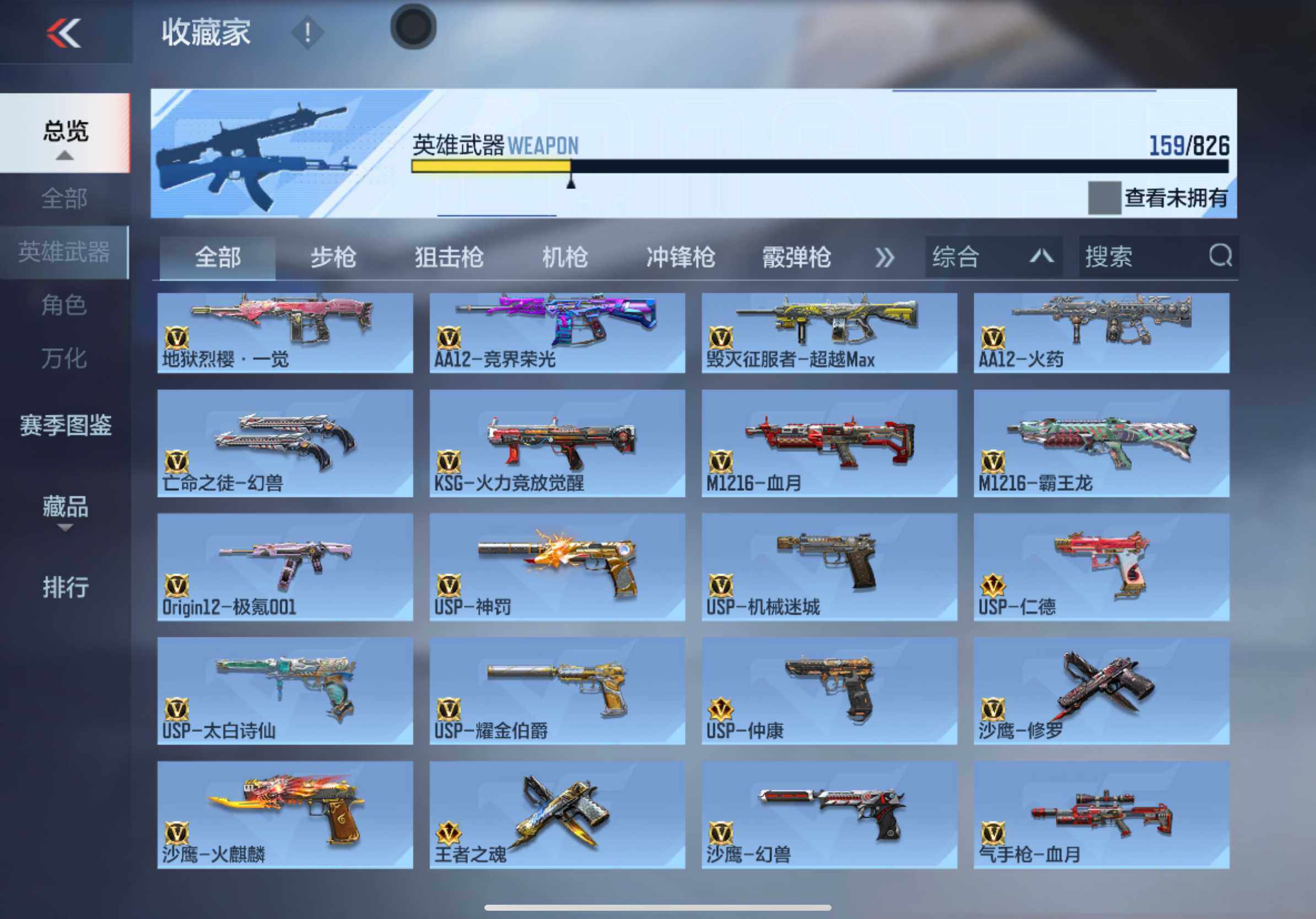 v7/9王者/210英雄/王者幻神冰皮/王者之影/王者之心/王者之尊/王者之兽/王者之掣/王者之魂/王者之击燃竞之巅/王影盐雾蛋/mk47仁德套装/m4竞界荣光/m1216霸王龙/雷霆cop/柯尔特仲达/usp仲康/cz75策/4屠龙/激昂霸王呛/霸王龙斧/角色/关小雨-x/消灭音效/诸神黄昏/狙击呛线/无双/诸神黄昏/