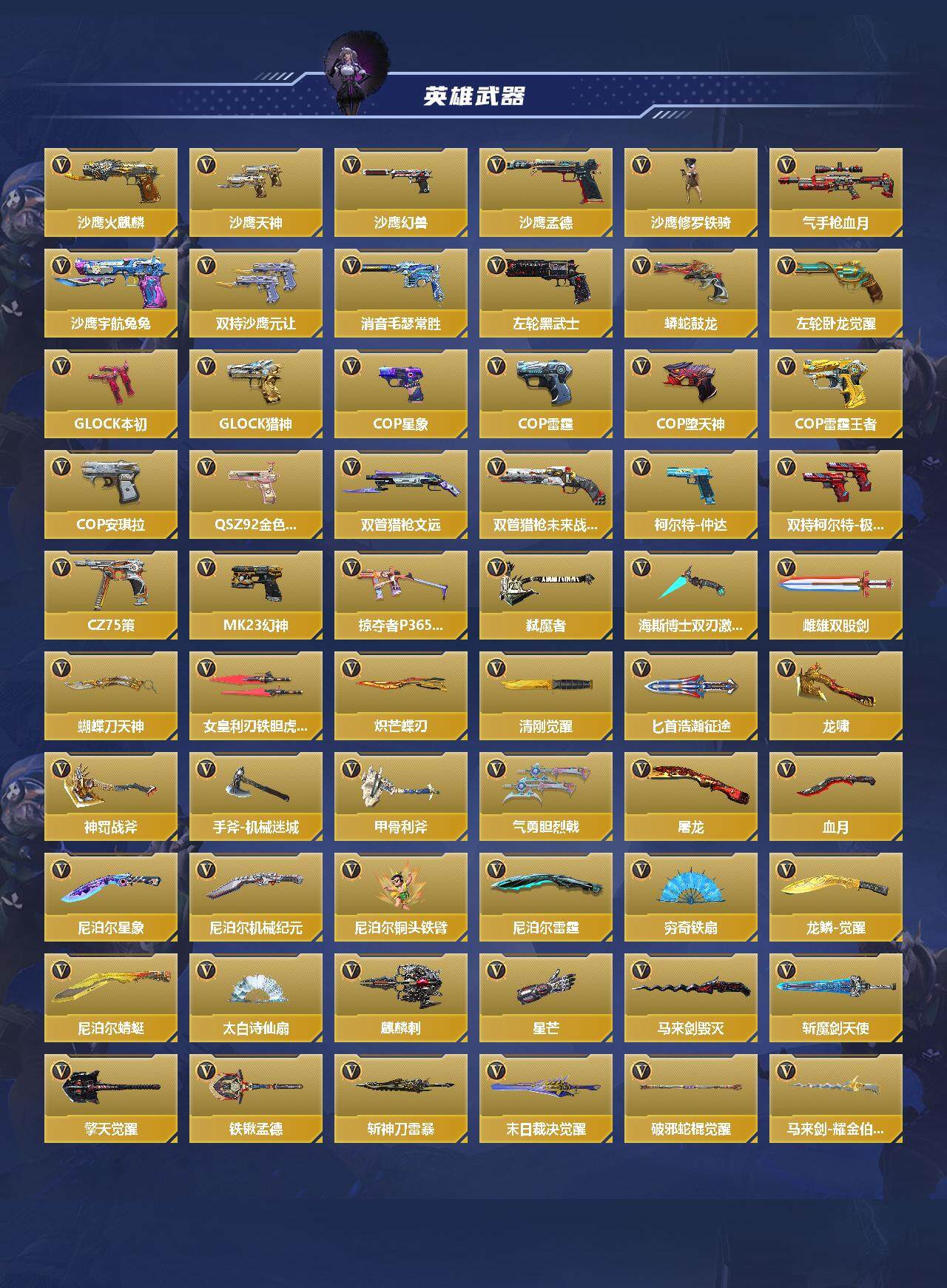 【cfmg1097】vip9/352v/魄至尊/仁德套/星象套/仲达套/孟德套/本初套/王者之刺/王者之势/王者之力/王者之影/王者之武/王者之怒/王者之魄/王者之心/王者之锋/王者之迹/王者之蝶/王者之狱/王者之魂/王者之烈/王者之霆/王者之业/m4a1-雷霆王者/芭蕾特-雷霆王者/ak47-雷霆王者/m12s-雷霆王者/cop 357-雷霆王者/ksg-孟获/81式-光明之神/mk47-仁德/ak47-孟德/m4a1-仲达/ak47-奉先/m4a1-星象/m4a1-游骑兵/tac-慈/m200-幻神/芭蕾特-定军/awm-游骑兵/vepr12-本初/cop 357-雷霆/cop 357-星象/cop 357-堕天神/81式-阿波罗/m200-权/czs2-仲康/cop 357-安琪拉/an94-盖/mk47-仁德-羸魔/m4a1-仲达-白露/ak47-孟德-过载/m4a1-星象-璀璨星辰·白虎/m4a1-星象-璀璨星辰·朱雀/m4a1-星象-璀璨星辰·玄武/m4a1-星象-璀璨星辰·青龙/ak47-奉先-无双/m4a1-雷霆王者-冰霜奇迹/王者之魄-heartshot/王者之武-heartshot/王者之势-heartshot/王者之力-紫电熔岩/王者之怒-冰霜奇迹/芭蕾特-雷霆王者-冰霜奇迹/审判者/樱/晴雅/雅典娜/蔡文昭/夏日灵狐-x/炽天使-x/祝融夫人/零-新生/步练师/ak47-无影/ak47-火麒麟/ak47-黑武士觉醒/ak47-机械迷城/ak47-猩红传说/ak47-燎天净火/ak47-血武士/ak47-黑鲨/ak47-春雅觉醒/ak47-神兵无影/ak47-轮回/ak47-雅韵青花/ak47-谜城烟火/ak47-钢铁狂热/m4a1-雷神/m4a1-黑骑士/m4a1-黑龙/m4a1-死神/m4a1-竞界荣光/m4a1-赛博雷神/m4a1-海骑士/m4a1-破空冰刃/m4a1-运输船/m4a1-猎神/m4a1-太白诗仙/m4a1-铁胆虎魄/scar-幽暗骑士/scar light-白虎/scar-心动pick/剑齿虎/剑齿虎-炫彩/aug-机械纪元/famas-湮灭/9a91-天神/m14ebr-拂影/m16-恶魔/ak12-天启/q03-金色蔷薇/q03-死神/q03-玉面羞花/hk416-极光/hk417-炎龙铠甲/mk47-机械纪元/sks-美杜莎/g3a3-五色琉璃觉醒/g3a3-衍神兵/q97-浩瀚征途/q191-金甲虎啸觉醒/awm-天龙/awm-裁决/awm-天使/awm-大湾溢彩/芭蕾特-毁灭/芭蕾特-极光/芭蕾特-雷神/芭蕾特-冬灭觉醒/暗杀神/m200-心动次元/98k-黑骑士/98k-星神/98k-蜻蜓/tac-雷暴/vsk-94-九黎兵主觉醒/rpk-盘龙/加特林-堡垒/加特林-蟒蛇/刘易斯-血月/刘易斯-天使/qbb95-极光/qbb95-再战涿鹿/mk5-机械纪元/mk5-极光/汤姆逊-烈龙/寒霜烈龙/双持斯泰尔-天使/qcw05-变形金刚·大黄蜂/cbj-ms-毒蜂/pp19野牛-造纸术/ddm4-pdw-星际宇航觉醒/地狱火/嗜血金鲨/aa12-火药/亡命之徒-鬼魅双生/ksg-火力竞放觉醒/ksg-极光/ksg-钟馗觉醒/m1216-血月/igin12-机变奇蛇觉醒/usp-神罚/usp-雷暴/usp-机械迷城/usp-仁德/usp-太白诗仙/沙鹰-修罗/沙鹰-飞电/沙鹰-火麒麟/沙鹰-天神/沙鹰-幻兽/沙鹰-孟德/沙鹰-修罗-铁骑/气手呛-血月/沙鹰-宇航兔兔/双持沙鹰-元让/消音毛瑟-常胜/左轮-黑武士/蟒蛇-鼓龙/左轮-卧龙觉醒/双持glock18-本初/glock18-猎神/qsz92-金色蔷薇/双管猎呛-文远/双管猎呛-未来战士/柯尔特-仲达/双持柯尔特-极光/cz75-策/mk23-幻神/掠夺者p365-虹舞/弑魔者/海斯博士双刃-激光/雌雄双股剑/蝴蝶刀-天神/女皇利刃-铁胆虎魄/炽芒蝶刃/清刚-觉醒/匕首-浩瀚征途/龙啸/神罚战斧/手斧-机械迷城/甲骨利斧/气勇胆烈戟/屠龙/血月/尼泊尔-星象/尼泊尔-机械纪元/尼泊尔-铜头铁臂/尼泊尔-雷霆/穷奇铁扇/龙鳞-觉醒/尼泊尔-蜻蜓/太白诗仙扇/麒麟刺/星芒/马来剑-毁灭/斩魔剑-天使/擎天觉醒/铁锹-孟德/斩神刀-雷暴/末日裁决觉醒/破邪蛇棍觉醒/马来剑-耀金伯爵