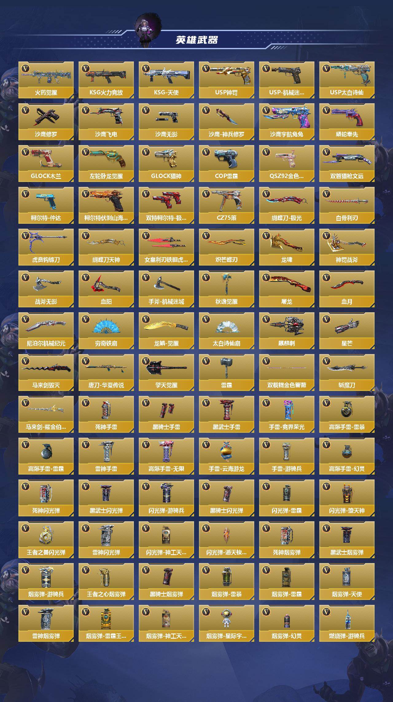 【cfmg1382】vip6/302v/王者之心/王者之神/王者之魂/m12s-雷霆王者/王者之尊/an94-盖/81式-光明之神/m200-幻神/81式-阿波罗/cop 357-雷霆/葵/关小雨/春节兰-x/炽天使-x/ak47-无影/ak47-火麒麟/ak47-沙漠领主/ak47-樱斗士-一觉/ak47-变色龙/ak47-沙漠郡主-超觉/ak47-雷麒麟/ak47-血武士/ak47-黑鲨/ak47-木兰/ak47-雅韵青花/ak47-塔罗牌觉醒/ak47-谜城烟火/m4a1-雷神/m4a1-黑骑士/m4a1-黑龙/m4a1-死神/m4a1-玫瑰精灵/m4a1-海骑士/m4a1-冰锋觉醒/m4a1-堕天神/m4a1-心动次元觉醒/m4a1-夏清/m4a1-千变/m4a1-太白诗仙/m4a1-铁胆虎魄/scar-幽暗骑士/scar light-白虎/scar-探星者/scar-印刷术觉醒/an94-四凶觉醒/an94-赳赳秦师/9a91-天神/m14ebr-天神/m14ebr-拂影/m14ebr-葫芦山庄/m16-恶魔/ak12-天启/q03-湮灭/q03-金色蔷薇/q03-玉面羞花/hk417-炎龙铠甲/q19-天使/g36-李星云/mk47-云舞/g3a3-衍神兵/fn f2000-十绝阵觉醒/q191-金甲虎啸觉醒/sbr-湮灭/awm-天龙/awm-裁决/awm-天使/awm-指南针/awm-大湾溢彩/芭蕾特-毁灭/芭蕾特-极光/芭蕾特-雷神/芭蕾特-朱雀/m200-心动次元觉醒/09式狙-天神/98k-黑骑士/98k-血月/98k-星神/mr1-龙吟惊沧海/mr1-幽暗骑士/tac-晴舞/gm6-战争风云觉醒/vsk-94-九黎兵主觉醒/刘易斯-血月/qbb95-极光/qbb95-再战涿鹿/mk5-极光/双持斯泰尔-天使/qcw05-变形金刚·大黄蜂/cbj-ms-毒蜂/czs2-善财童子/czs2-血月/pp19野牛-造纸术/打击者-天神/地狱火/地狱烈炎/aa12-火药觉醒/ksg-火力竞放/ksg-天使/usp-神罚/usp-机械迷城/usp-太白诗仙/沙鹰-修罗/沙鹰-飞电/沙鹰-无影/沙鹰-神兵修罗/沙鹰-宇航兔兔/蟒蛇-奉先/改装glock-木兰/左轮-卧龙觉醒/glock18-猎神/qsz92-金色蔷薇/双管猎呛-文远/柯尔特-仲达/柯尔特-伏刹山海觉醒/双持柯尔特-极光/cz75-策/蝴蝶刀-极光/白骨利刃/虎贲钩镰刀/蝴蝶刀-天神/女皇利刃-铁胆虎魄/炽芒蝶刃/龙啸/神罚战斧/战斧-无影/血阳/手斧-机械迷城/秋逸觉醒/屠龙/血月/尼泊尔-机械纪元/穷奇铁扇/龙鳞-觉醒/太白诗仙扇/麒麟刺/星芒/马来剑-毁灭/唐刀-华夏传说/擎天觉醒/雷霆/双截棍-金色蔷薇/斩魔刀/马来剑-耀金伯爵/死神手蕾/黑骑士手蕾/黑武士手蕾/手蕾-竞界荣光/高爆手蕾-雷暴/高爆手蕾-雷霆/雷神手蕾/高爆手蕾-无限/手蕾-云海游龙/手蕾-游骑兵/高爆手蕾-幻灵/死神闪光丹/黑武士闪光丹/闪光丹-游骑兵/黑骑士闪光丹/闪光丹-雷霆/闪光丹-堕天神/王者之兽闪光丹/雷神闪光丹/闪光丹-神工天巧/闪光丹-遁天梭-飞行/死神盐雾蛋/黑武士盐雾蛋/盐雾蛋-游骑兵/王者之心盐雾蛋/黑骑士盐雾蛋/盐雾蛋-雷暴/盐雾蛋-雷霆/盐雾蛋-天使/雷神盐雾蛋/盐雾蛋-雷霆王者/盐雾蛋-神工天巧/盐雾蛋-星际宇航/盐雾蛋-幻灵/燃烧弹-游骑兵