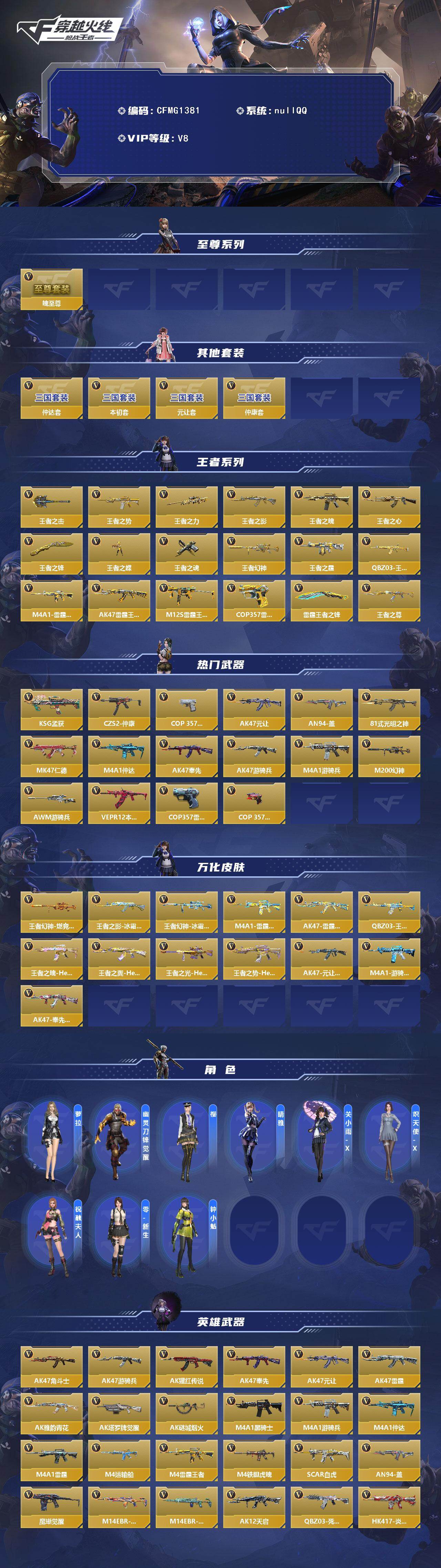 【cfmg1381】vip8/241v/魄至尊/仲达套/元让套/仲康套/本初套/王者之击/王者之势/王者之力/王者之影/王者之魄/王者之心/王者之锋/王者之蝶/王者之魂/王者幻神/王者之霆/q03-王者蔷薇/m4a1-雷霆王者/ak47-雷霆王者/m12s-雷霆王者/cop 357-雷霆王者/雷霆王者之锋/王者之尊/ksg-孟获/czs2-仲康/cop 357-安琪拉/ak47-元让/an94-盖/81式-光明之神/mk47-仁德/m4a1-仲达/ak47-奉先/ak47-游骑兵/m4a1-游骑兵/m200-幻神/awm-游骑兵/vepr12-本初/cop 357-雷霆/cop 357-堕天神/王者之影-冰霜奇迹/王者之翼-heartshot/ak47-奉先-无双/ak47-雷霆王者-冰霜奇迹/ak47-元让-过载/m4a1-游骑兵-寒霜/王者之魄-heartshot/王者之势-heartshot/m4a1-雷霆王者-冰霜奇迹/q03-王者蔷薇-冰霜奇迹/王者幻神-冰霜奇迹/王者幻神-燃竞之巅/王者之光-heartshot/萝拉/幽灵刀锋-觉醒/樱/晴雅/关小雨-x/炽天使-x/祝融夫人/零-新生/钟小魁/ak47-角斗士/ak47-猩红传说/ak47-雷霆/ak47-雅韵青花/ak47-塔罗牌觉醒/ak47-谜城烟火/m4a1-黑骑士/m4a1-雷霆/m4a1-运输船/m4a1-铁胆虎魄/scar light-白虎/9a91-魔蜥觉醒/m14ebr-拂影/m14ebr-葫芦山庄/ak12-天启/q03-死神/hk417-炎龙铠甲/g36-李星云/fn f2000-十绝阵觉醒/q191-帝皇铠甲/sbr-湮灭/awm-天龙/awm-裁决/awm-大湾溢彩/芭蕾特-毁灭/芭蕾特-极光/09式狙-天神/98k-黑骑士/gm6-逆骨/mg36-魔礼青/汤姆逊-烈龙/双持斯泰尔-天使/斯泰尔-蝴蝶/qcw05-竞界荣光/cbj-ms-毒蜂/m12s-雷霆/m12s-天公/pp19野牛-造纸术觉醒/打击者-天神/aa12-竞界荣光/aa12-火药/ksg-黑骑士/ksg-极光/igin12-机变奇蛇觉醒/usp-神罚/沙鹰-宇航兔兔/双持沙鹰-元让/双持glock18-本初/双管猎呛-未来战士/柯尔特-仲达/cz75-策/mk23-机械纪元/mk23-双脊龙/白骨利刃/雌雄双股剑/女皇利刃-铁胆虎魄/炽芒蝶刃/龙啸/气勇胆烈戟/屠龙/穷奇铁扇/死神手蕾/火麒麟手蕾/王者之心手蕾/黑骑士手蕾/机械纪元手蕾/黑武士手蕾/高爆手蕾-雷霆/高爆手蕾-堕天神/分裂雷-天使/雷神手蕾/高爆手蕾-无限/高爆手蕾-神工天巧/手蕾-云海游龙/手蕾-游骑兵/粘性手蕾-彩虹小白马觉醒/死神闪光丹/黑武士闪光丹/王者之影闪光丹/王者之翼闪光丹/闪光丹-游骑兵/王者之心闪光丹/黑骑士闪光丹/机械纪元闪光丹/火麒麟闪光丹/闪光丹-雷霆/王者之圣闪光丹/闪光丹-堕天神/闪光丹-天使/王者之兽闪光丹/雷神闪光丹/闪光丹-雷霆王者/闪光丹-神工天巧/死神盐雾蛋/黑武士盐雾蛋/王者之影盐雾蛋/盐雾蛋-游骑兵/王者之翼盐雾蛋/王者之心盐雾蛋/黑骑士盐雾蛋/机械纪元盐雾蛋/火麒麟盐雾蛋/盐雾蛋-雷霆/王者之圣盐雾蛋/盐雾蛋-堕天神/盐雾蛋-天使/王者之兽盐雾蛋/雷神盐雾蛋/盐雾蛋-雷霆王者/盐雾蛋-神工天巧/盐雾蛋-星际宇航/燃烧弹-遁天梭-剑鱼阵/燃烧弹-武圣/燃烧弹-游骑兵