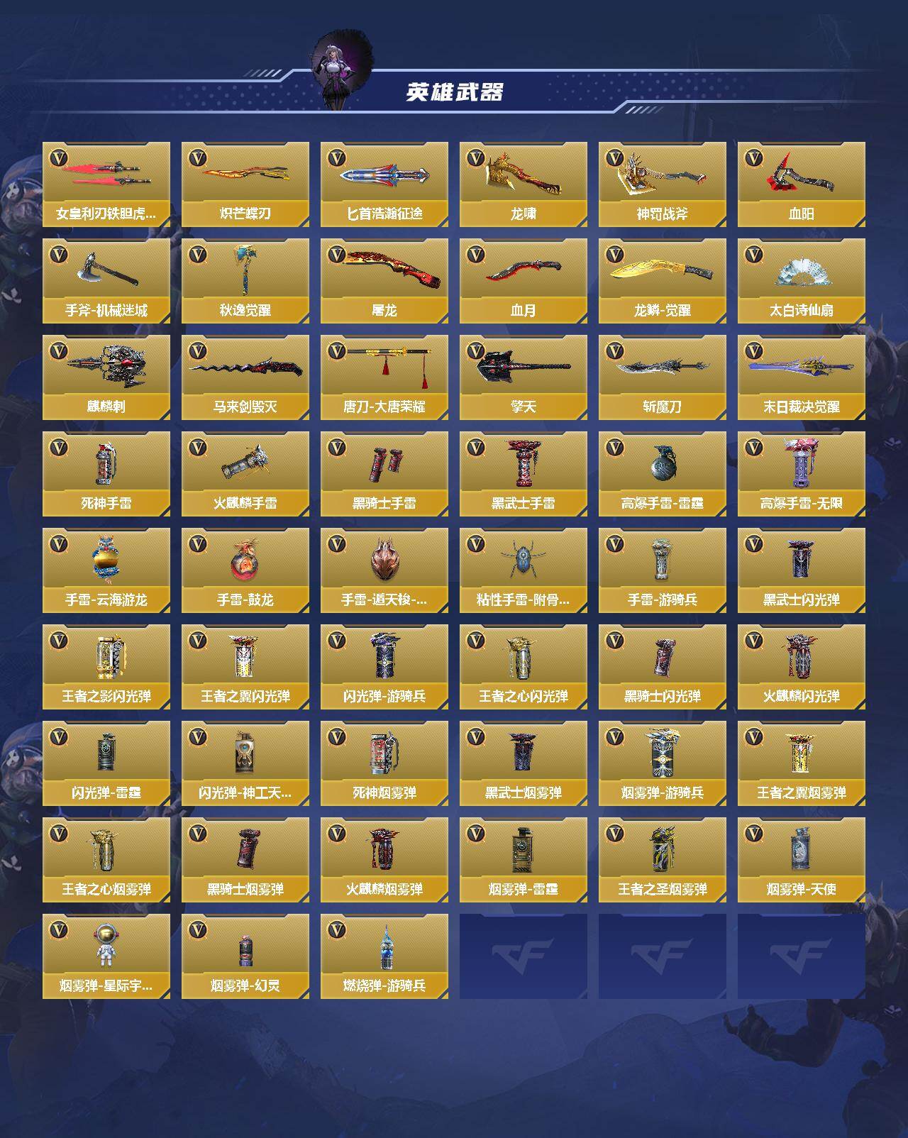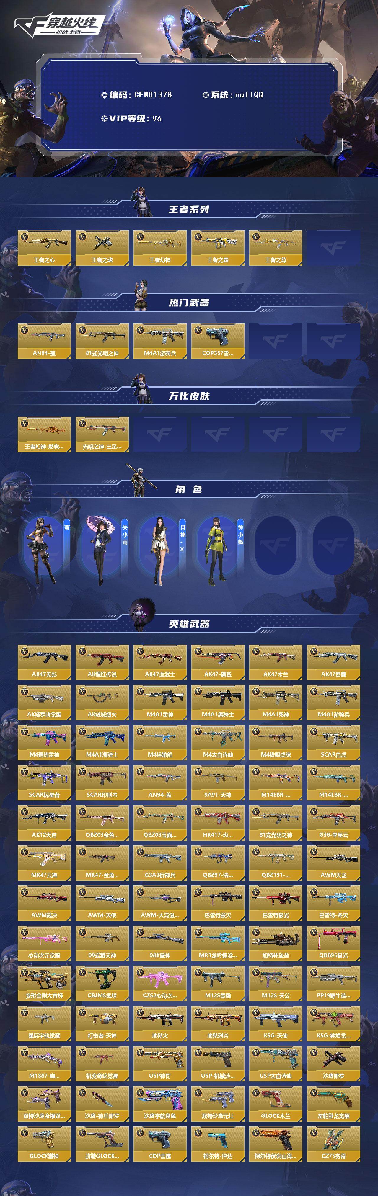 【cfmg1378】vip6/229v/5王者/王者之心/王者之魂/王者幻神/王者之霆/王者之尊/an94-盖/81式-光明之神/m4a1-游骑兵/cop 357-雷霆/王者幻神-燃竞之巅/81式-光明之神-三足金乌/葵/关小雨/月神-x/钟小魁/ak47-无影/ak47-猩红传说/ak47-血武士/ak47-黑鲨/ak47-木兰/ak47-雷霆/ak47-塔罗牌觉醒/ak47-谜城烟火/m4a1-雷神/m4a1-黑骑士/m4a1-死神/m4a1-赛博雷神/m4a1-海骑士/m4a1-运输船/m4a1-太白诗仙/m4a1-铁胆虎魄/scar light-白虎/scar-探星者/scar-印刷术/9a91-天神/m14ebr-拂影/m14ebr-葫芦山庄/ak12-天启/q03-金色蔷薇/q03-玉面羞花/hk417-炎龙铠甲/g36-李星云/mk47-云舞/mk47-金角巨兽/g3a3-衍神兵/q97-浩瀚征途/q191-封神榜/awm-天龙/awm-裁决/awm-天使/awm-大湾溢彩/芭蕾特-毁灭/芭蕾特-极光/芭蕾特-冬灭/m200-心动次元觉醒/09式狙-天神/98k-星神/mr1-龙吟惊沧海/加特林-堡垒/qbb95-极光/qcw05-变形金刚·大黄蜂/cbj-ms-毒蜂/czs2-心动次元/m12s-雷霆/m12s-天公/pp19野牛-造纸术/ddm4-pdw-星际宇航觉醒/打击者-天神/地狱火/地狱烈炎/ksg-天使/ksg-钟馗觉醒/m1887-幽冥玄喵觉醒/igin12-机变奇蛇觉醒/usp-神罚/usp-机械迷城/usp-太白诗仙/沙鹰-修罗/双持沙鹰-金银双煞/沙鹰-神兵修罗/沙鹰-宇航兔兔/双持沙鹰-元让/改装glock-木兰/左轮-卧龙觉醒/glock18-猎神/改装glock-魔杀族/柯尔特-仲达/柯尔特-伏刹山海觉醒/cz75-穷奇/女皇利刃-铁胆虎魄/炽芒蝶刃/匕首-浩瀚征途/龙啸/神罚战斧/血阳/手斧-机械迷城/秋逸觉醒/屠龙/血月/龙鳞-觉醒/太白诗仙扇/麒麟刺/马来剑-毁灭/唐刀-大唐荣耀/擎天/斩魔刀/末日裁决觉醒/死神手蕾/火麒麟手蕾/黑骑士手蕾/黑武士手蕾/高爆手蕾-雷霆/高爆手蕾-无限/手蕾-云海游龙/手蕾-鼓龙/手蕾-遁天梭-钻山锥/粘性手蕾-附骨之虫觉醒/手蕾-游骑兵/黑武士闪光丹/王者之影闪光丹/王者之翼闪光丹/闪光丹-游骑兵/王者之心闪光丹/黑骑士闪光丹/火麒麟闪光丹/闪光丹-雷霆/闪光丹-神工天巧/死神盐雾蛋/黑武士盐雾蛋/盐雾蛋-游骑兵/王者之翼盐雾蛋/王者之心盐雾蛋/黑骑士盐雾蛋/火麒麟盐雾蛋/盐雾蛋-雷霆/王者之圣盐雾蛋/盐雾蛋-天使/盐雾蛋-星际宇航/盐雾蛋-幻灵/燃烧弹-游骑兵