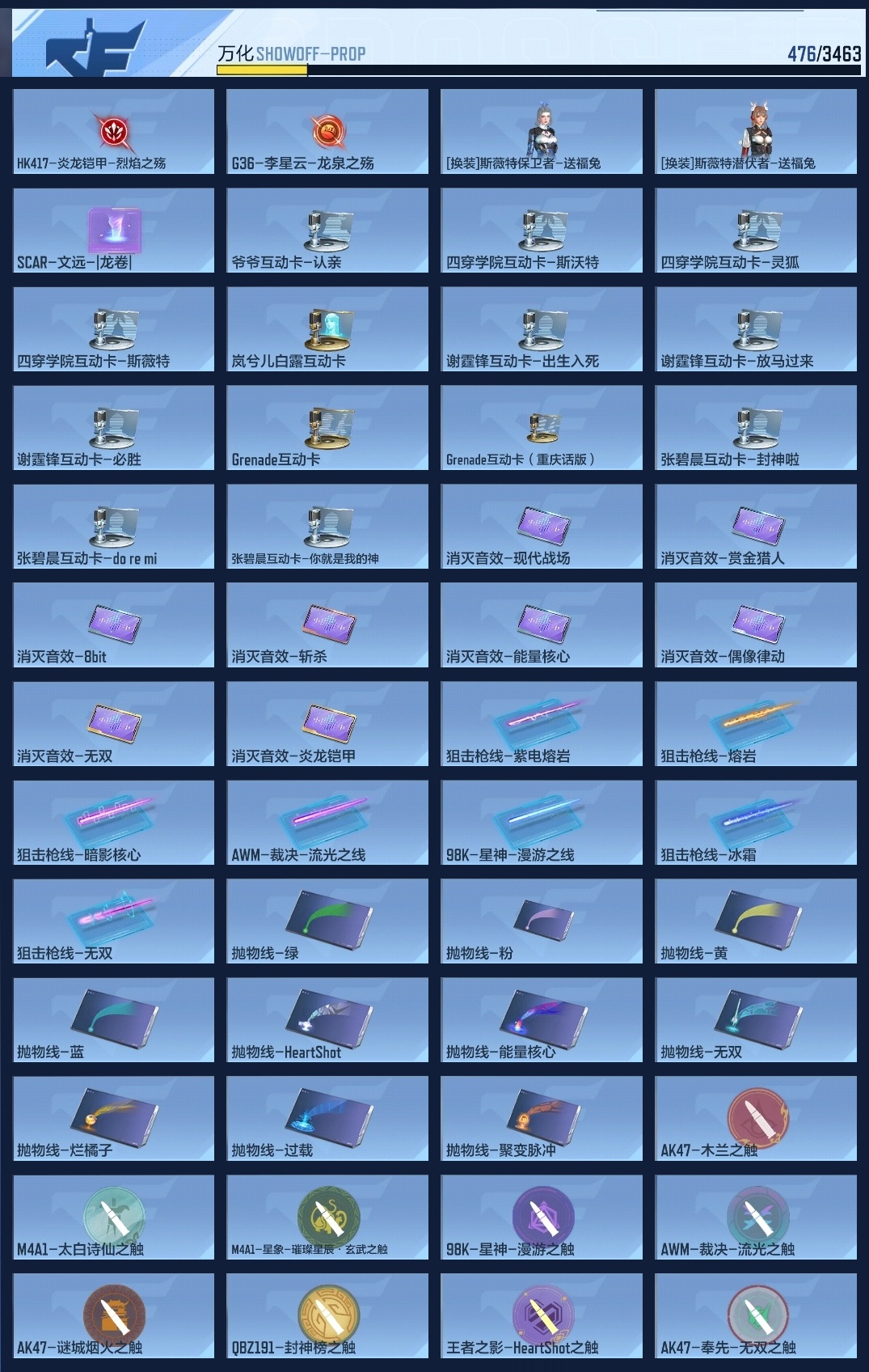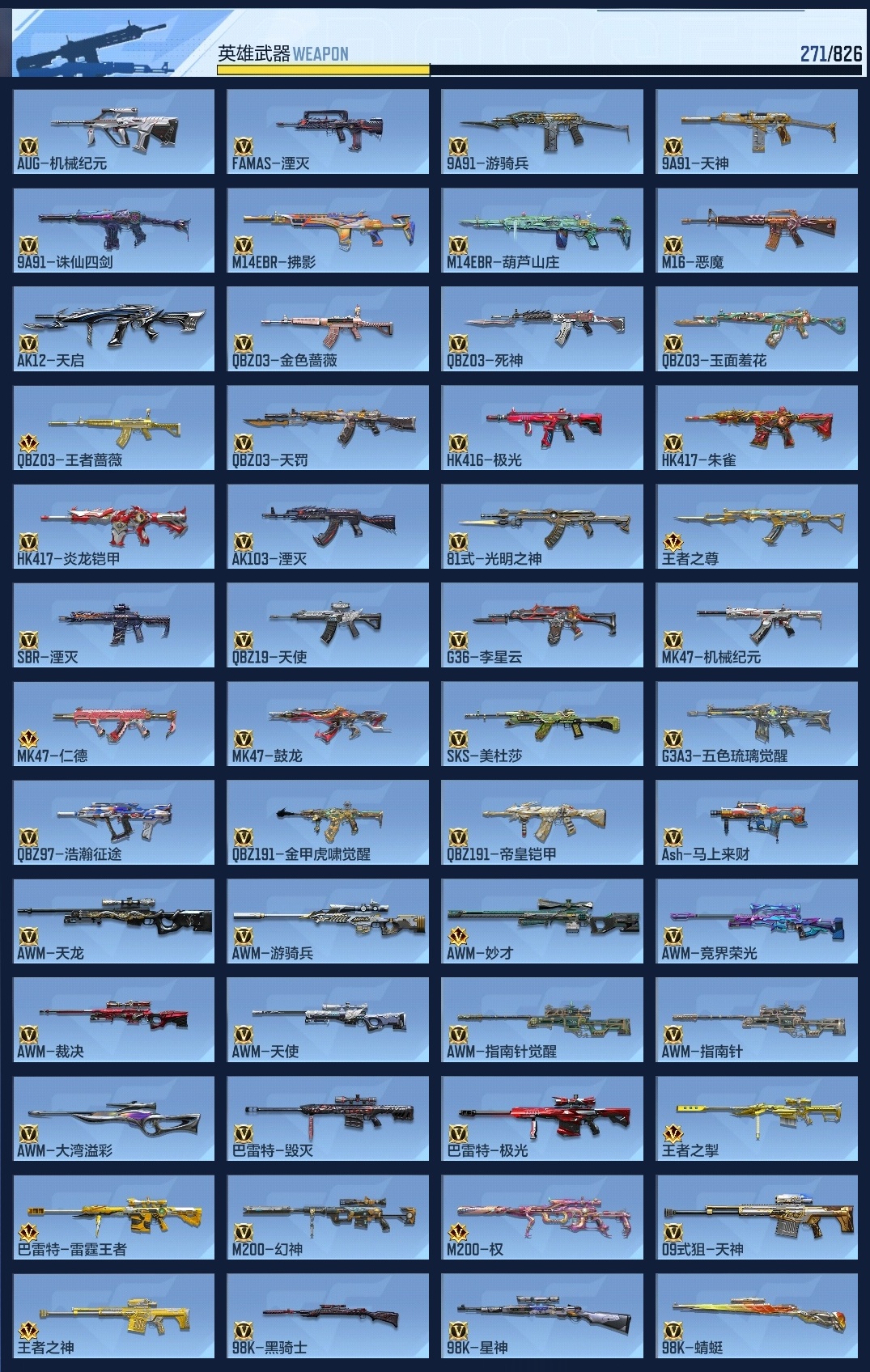 650899 【极品v8号-热门多三国武器号-24王者v武器-雷霆王者大炮拉丝王影-奉先权仲达元让仁德妙才】 王者v武器数量24 英雄武器数量271 音效卡数量12 万化数量476 vip等级【文本】vip8级 【呛王sss】 【支持】 【是】 【可排位】 音效卡12 狙击呛线5 消灭音效8 语音卡6 抛物线6 音效卡:王者之影-现代战场,王者之心-现代战场,王者之神-现代战场,m200-幻神-现代战场,ak47-无影-电音,芭蕾特-毁灭-现代战场,m4a1-仲达-现代战场,m4a1-仲达-原汁原味,tac-慈-没金饮羽,m4a1-雷神-电音,ak47-奉先-现代战场,ak47-元让-过载之音; 狙击呛线:狙击呛线-无双,狙击呛线-紫电熔岩,狙击呛线-暗影核心,狙击呛线-熔岩,awm-裁决-流光之线; 消灭音效:消灭音效-赏金猎人,消灭音效-现代战场,消灭音效-8bit,消灭音效-能量核心,消灭音效-偶像律动,消灭音效-无双,消灭音效-斩杀,消灭音效-炎龙铠甲; 语音卡:机器人语音卡,晴雅语音卡,雨墨语音卡,蛇精语音卡,葫芦娃语音卡,云悠悠语音卡; 抛物线:抛物线-能量核心,抛物线-heartshot,抛物线-绿,抛物线-蓝,抛物线-黄,抛物线-粉;