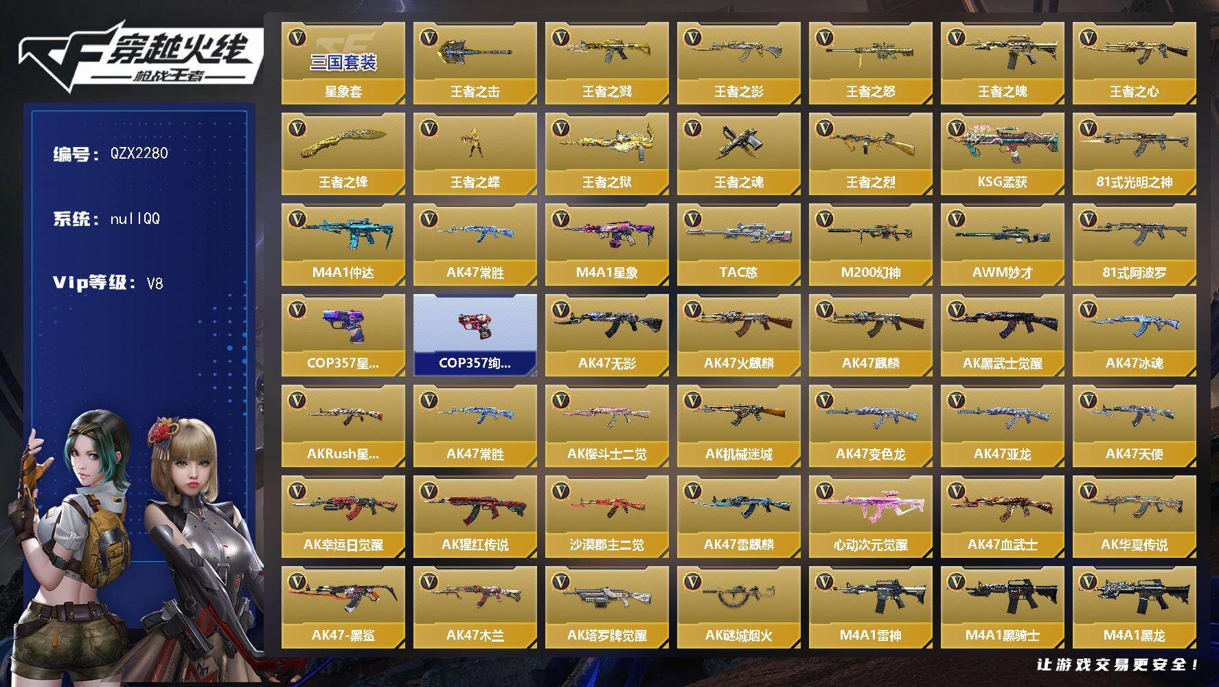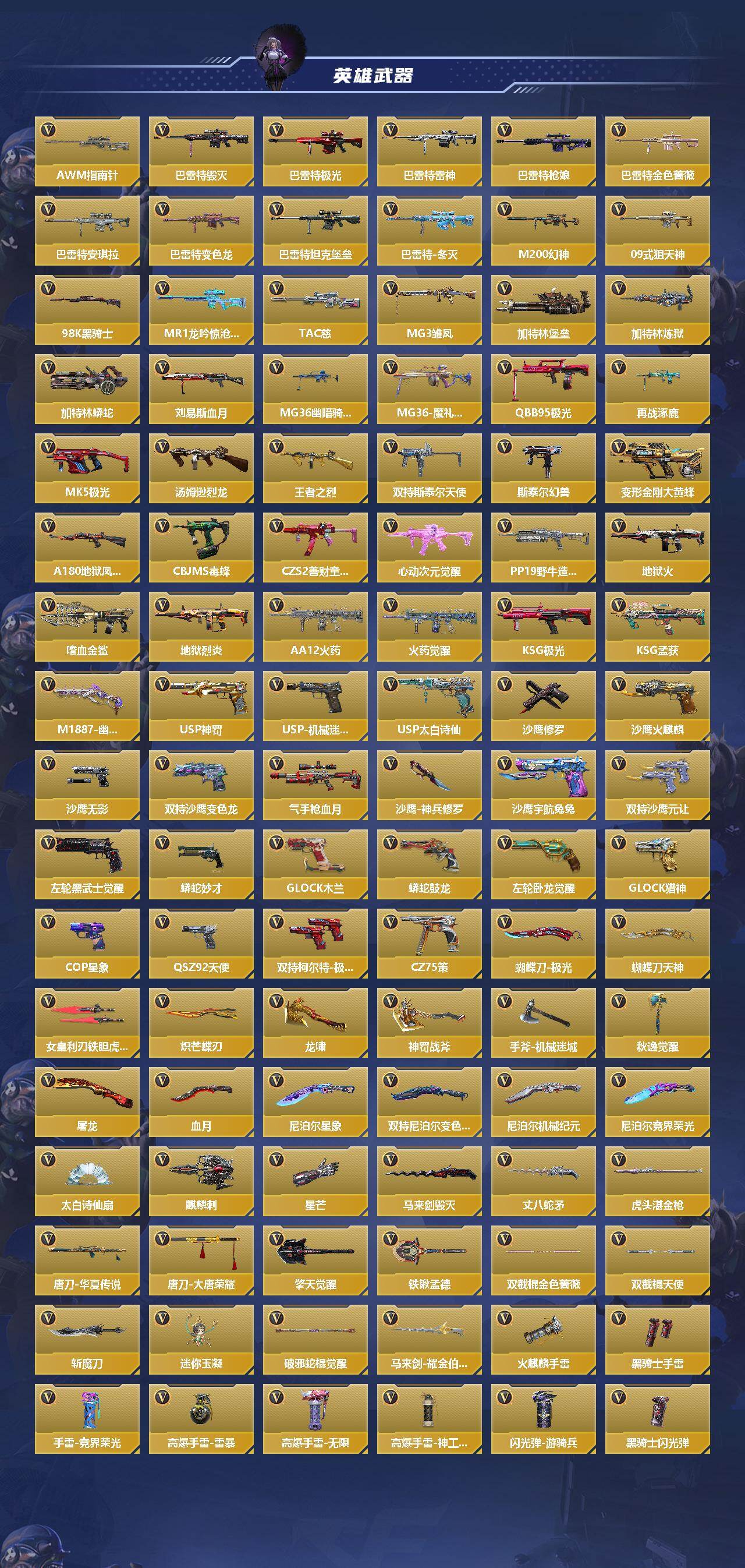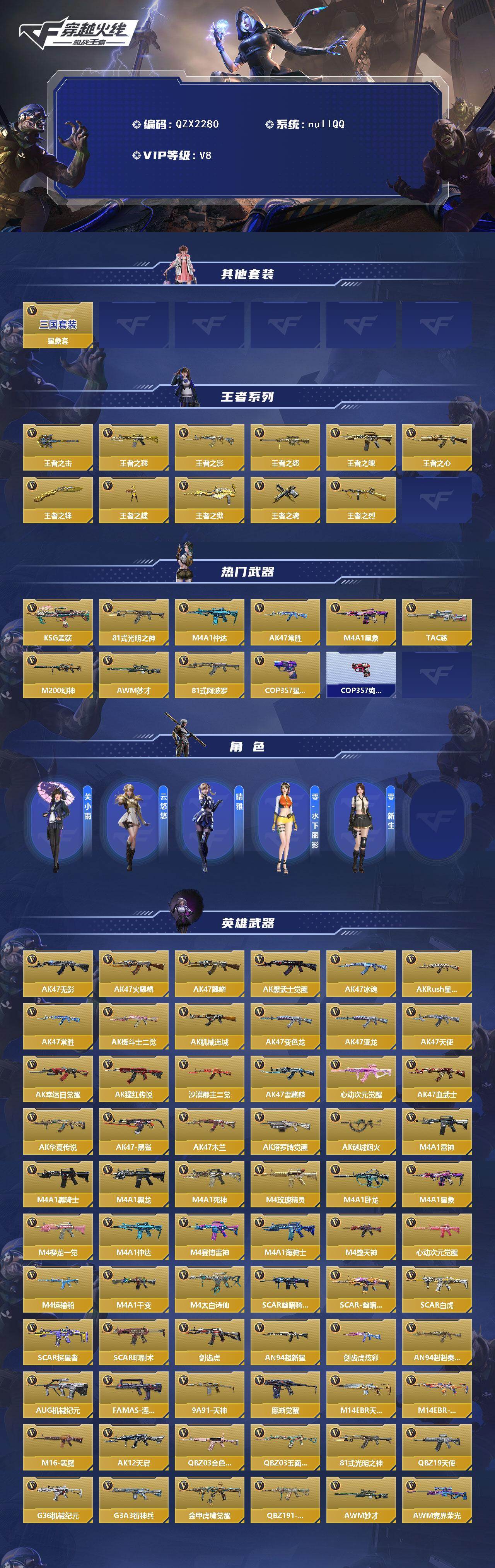 【qzx2280】vip8/266v/星象套/王者之击/王者之戮/王者之影/王者之怒/王者之魄/王者之心/王者之锋/王者之蝶/王者之狱/王者之魂/王者之烈/ksg-孟获/81式-光明之神/m4a1-仲达/ak47-常胜/m4a1-星象/tac-慈/m200-幻神/awm-妙才/81式-阿波罗/cop 357-星象/cop 357-绚樱/关小雨/云悠悠/晴雅/零-水下丽影/零-新生/ak47-无影/ak47-火麒麟/ak47-麒麟/ak47-黑武士觉醒/ak47-冰魂/ak47-rush-星速/ak47-樱斗士-二觉/ak47-机械迷城/ak47-变色龙/ak47-亚龙/ak47-天使/ak47-幸运日觉醒/ak47-猩红传说/ak47-沙漠郡主-二觉/ak47-雷麒麟/ak47-心动次元觉醒/ak47-血武士/ak47-华夏传说/ak47-黑鲨/ak47-木兰/ak47-塔罗牌觉醒/ak47-谜城烟火/m4a1-雷神/m4a1-黑骑士/m4a1-黑龙/m4a1-死神/m4a1-玫瑰精灵/m4a1-卧龙/m4a1-樱龙·一觉/m4a1-赛博雷神/m4a1-海骑士/m4a1-堕天神/m4a1-心动次元觉醒/m4a1-运输船/m4a1-千变/m4a1-太白诗仙/scar-幽暗骑士/scar-幽暗骑士觉醒/scar light-白虎/scar-探星者/scar-印刷术/剑齿虎/an94-超新星/剑齿虎-炫彩/an94-赳赳秦师/aug-机械纪元/famas-湮灭/9a91-天神/9a91-魔蜥觉醒/m14ebr-天神/m14ebr-拂影/m16-恶魔/ak12-天启/q03-金色蔷薇/q03-玉面羞花/q19-天使/g36-机械纪元/g3a3-衍神兵/q191-金甲虎啸觉醒/q191-封神榜/awm-竞界荣光/awm-指南针/芭蕾特-毁灭/芭蕾特-极光/芭蕾特-雷神/芭蕾特-呛娘/芭蕾特-金色蔷薇/芭蕾特-安琪拉/芭蕾特-变色龙/芭蕾特-坦克堡垒/芭蕾特-冬灭/09式狙-天神/98k-黑骑士/mr1-龙吟惊沧海/mg3-雏凤/加特林-堡垒/加特林-炼狱/加特林-蟒蛇/刘易斯-血月/mg36-幽暗骑士/mg36-魔礼青/qbb95-极光/qbb95-再战涿鹿/mk5-极光/汤姆逊-烈龙/双持斯泰尔-天使/斯泰尔-幻兽/qcw05-变形金刚·大黄蜂/a180-地狱凤凰/cbj-ms-毒蜂/czs2-善财童子/czs2-心动次元觉醒/pp19野牛-造纸术/地狱火/嗜血金鲨/地狱烈炎/aa12-火药/aa12-火药觉醒/ksg-极光/m1887-幽冥玄喵觉醒/usp-神罚/usp-机械迷城/usp-太白诗仙/沙鹰-修罗/沙鹰-火麒麟/沙鹰-无影/双持沙鹰-变色龙/气手呛-血月/沙鹰-神兵修罗/沙鹰-宇航兔兔/双持沙鹰-元让/左轮-黑武士觉醒/蟒蛇-妙才/改装glock-木兰/蟒蛇-鼓龙/左轮-卧龙觉醒/glock18-猎神/qsz92-天使/双持柯尔特-极光/cz75-策/蝴蝶刀-极光/蝴蝶刀-天神/女皇利刃-铁胆虎魄/炽芒蝶刃/龙啸/神罚战斧/手斧-机械迷城/秋逸觉醒/屠龙/血月/尼泊尔-星象/双持尼泊尔-变色龙/尼泊尔-机械纪元/尼泊尔-竞界荣光/太白诗仙扇/麒麟刺/星芒/马来剑-毁灭/丈八蛇矛/虎头湛金呛/唐刀-华夏传说/唐刀-大唐荣耀/擎天觉醒/铁锹-孟德/双截棍-金色蔷薇/双截棍-天使/斩魔刀/迷你玉凝/破邪蛇棍觉醒/马来剑-耀金伯爵/火麒麟手蕾/黑骑士手蕾/手蕾-竞界荣光/高爆手蕾-雷暴/高爆手蕾-无限/高爆手蕾-神工天巧/闪光丹-游骑兵/黑骑士闪光丹/王者之势闪光丹/竞技战魂闪光丹/闪光丹-雷暴/闪光丹-神工天巧/王者之竞闪光丹/死神盐雾蛋/黑武士盐雾蛋/盐雾蛋-游骑兵/黑骑士盐雾蛋/王者之势盐雾蛋/盐雾蛋-雷暴/盐雾蛋-堕天神/盐雾蛋-神工天巧/燃烧弹-游骑兵