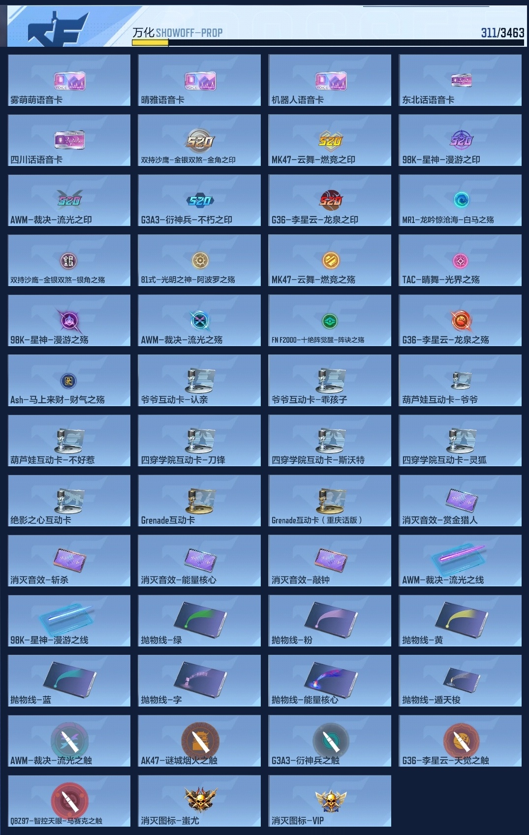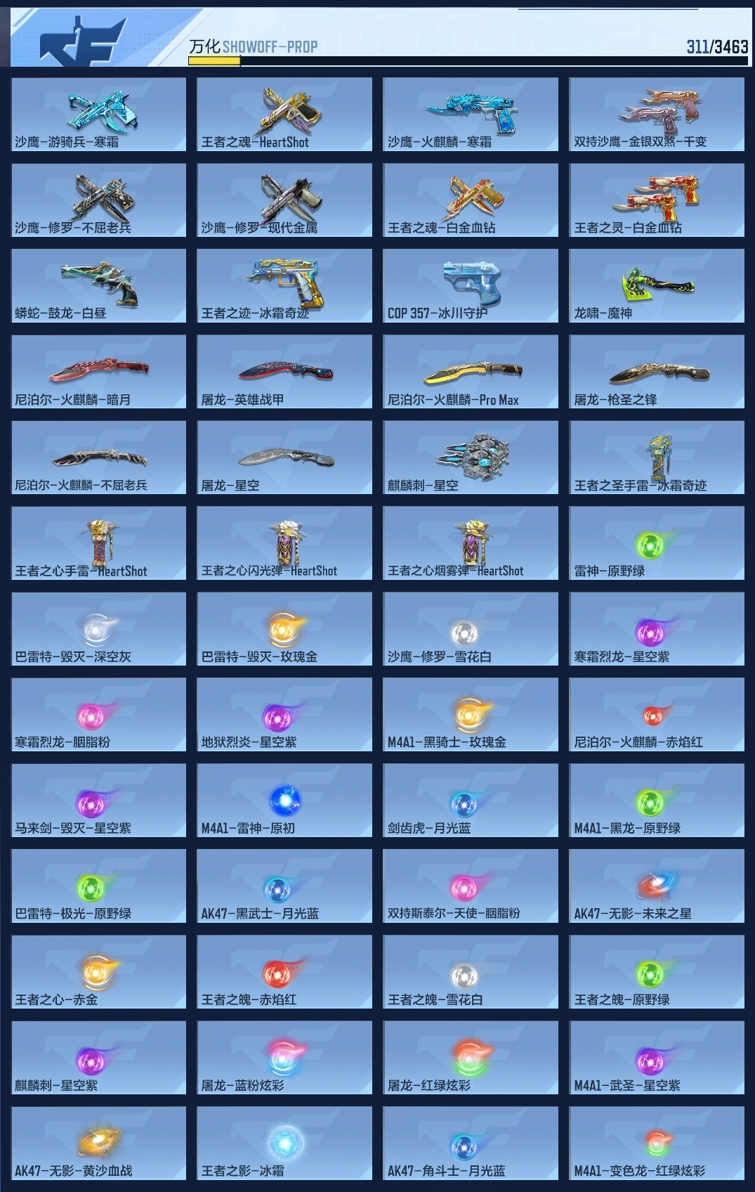 650639 【特价v8-24王者-3至尊1同框-拉丝王魄王心王怒带音效-烽火仲达套带音效-瑞财幻神带音效-奉先-m4游骑兵-常胜-多王者多三国多万化】 王者v武器数量24 英雄武器数量198 音效卡数量9 万化数量311 vip等级【文本】vip8级 狙击呛线数量1 消灭音效数量4 游戏等级128 【呛王】 【支持】 【是】 【可排位】 音效卡9 狙击呛线1 消灭音效4 语音卡7 抛物线6 音效卡:王者之魄-现代战场,王者之怒-现代战场,王者之心-现代战场,m200-幻神-现代战场,芭蕾特-毁灭-现代战场,m4a1-仲达-原汁原味,mk47-鼓龙-嘴炮,ak47-无影-现代战场,98k-星神-电音; 狙击呛线:awm-裁决-流光之线; 消灭音效:消灭音效-赏金猎人,消灭音效-能量核心,消灭音效-敲钟,消灭音效-斩杀; 语音卡:东北话语音卡,机器人语音卡,晴雅语音卡,雾萌萌语音卡,雨墨语音卡,葫芦娃语音卡,云悠悠语音卡; 抛物线:抛物线-能量核心,抛物线-字,抛物线-绿,抛物线-蓝,抛物线-黄,抛物线-粉;