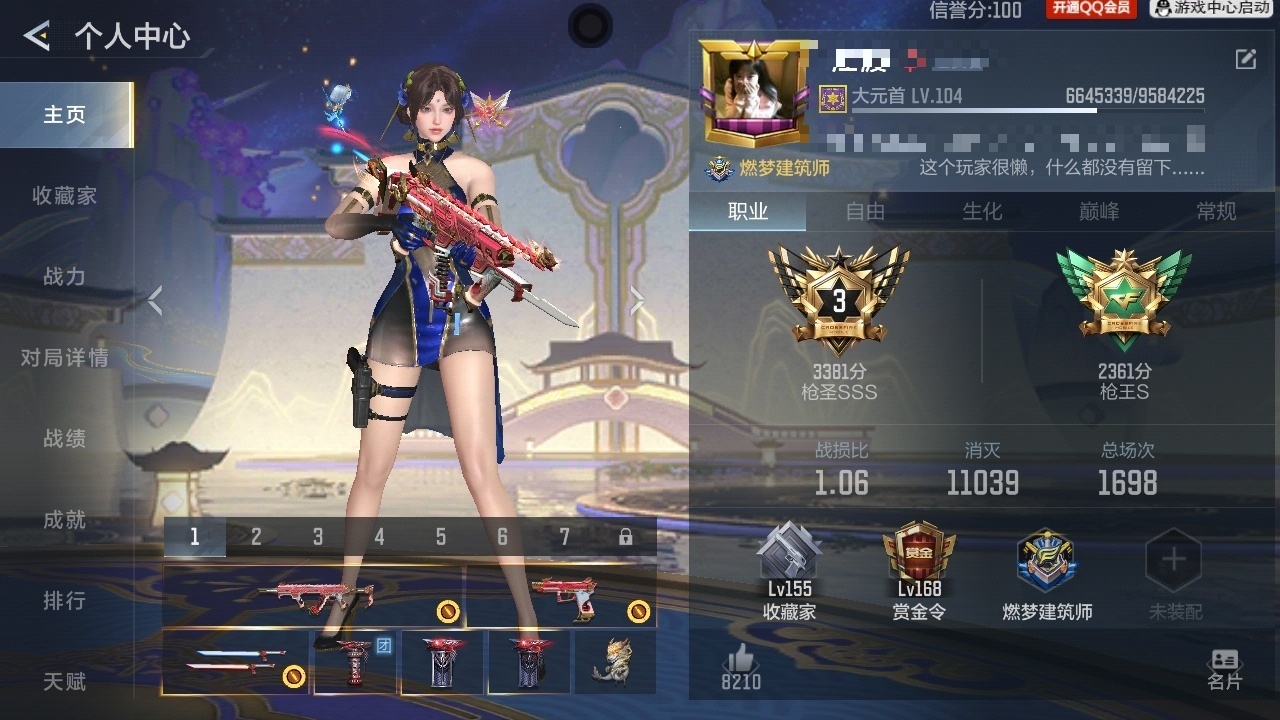 651369 【极品爆破入坑号-11王者-仁德套-策套-星象-盖-幻神】 v王者角色数0 王者v武器数量11 英雄武器数量234 音效卡数量3 万化数量349 vip等级【文本】vip6级 【新锐】 【支持】 【是】 【可排位】 音效卡3 狙击呛线2 消灭音效5 语音卡2 抛物线4 音效卡:m200-幻神-现代战场,芭蕾特-毁灭-现代战场,m4a1-雷神-电音; 狙击呛线:狙击呛线-熔岩,awm-裁决-流光之线; 消灭音效:消灭音效-现代战场,消灭音效-诸神黄昏,消灭音效-能量核心,消灭音效-葫芦娃,消灭音效-斩杀; 语音卡:晴雅语音卡,葫芦娃语音卡; 抛物线:抛物线-绿,抛物线-蓝,抛物线-黄,抛物线-粉;