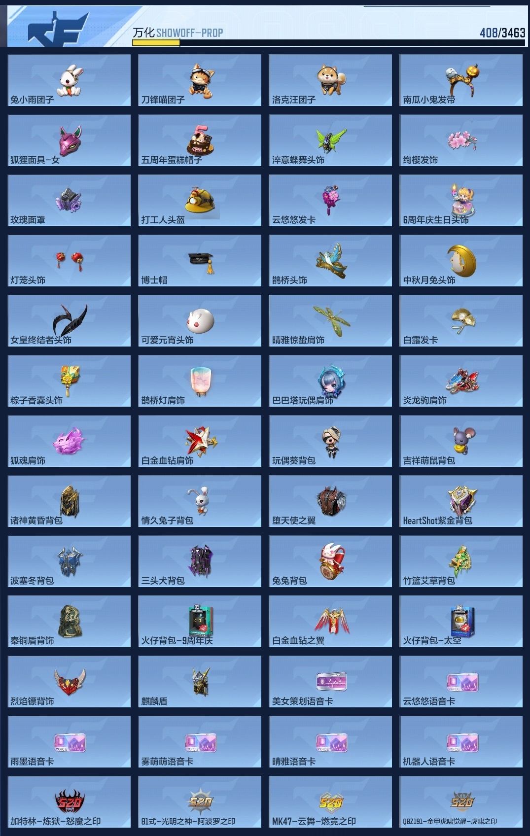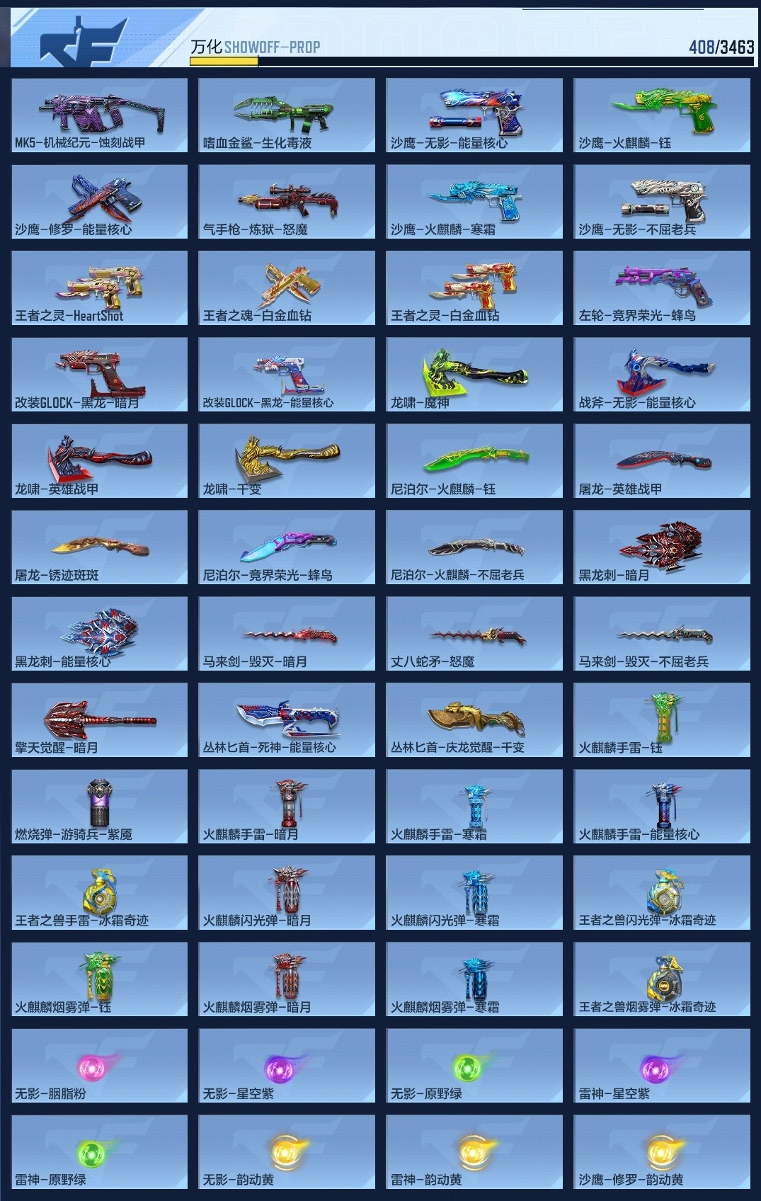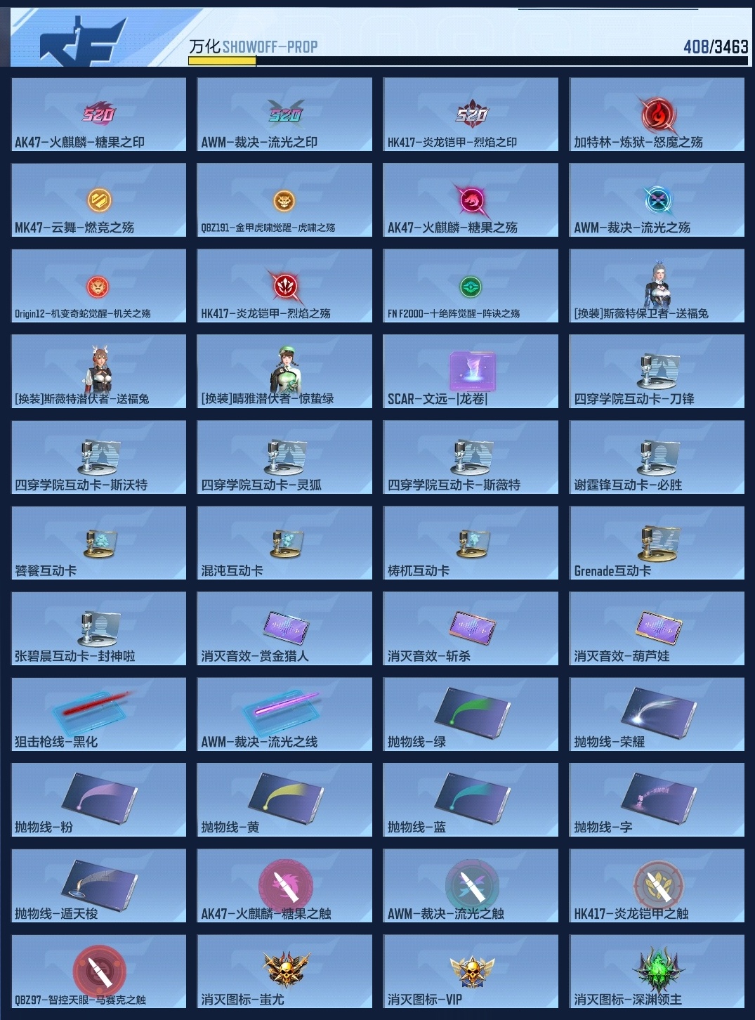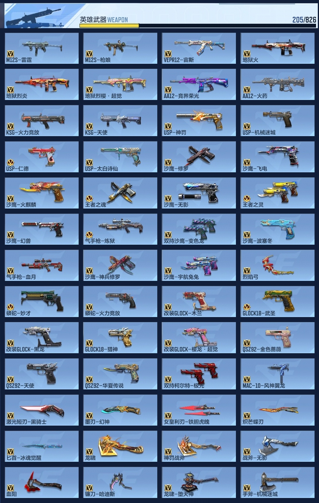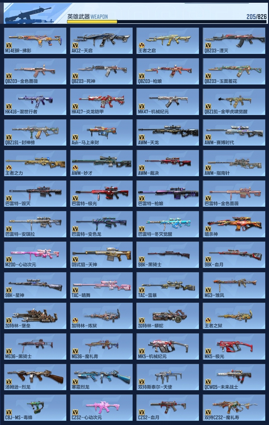 650917 【特价15王者-王力-王影带音效-武圣套-妙才-宙斯-火麒麟全套带皮-2呛线3消灭音效】 王者v武器数量15 英雄武器数量205 音效卡数量7 万化数量408 vip等级【文本】vip8级 狙击呛线数量2 消灭音效数量3 游戏等级112 【大师】 【支持】 【是】 【可排位】 音效卡7 狙击呛线2 消灭音效3 语音卡6 抛物线6 音效卡:王者之影-现代战场,芭蕾特-毁灭-现代战场,加特林-炼狱-现代战场,m4a1-仲达-现代战场,m4a1-仲达-原汁原味,ak47-火麒麟-电音,98k-星神-电音; 狙击呛线:狙击呛线-黑化,awm-裁决-流光之线; 消灭音效:消灭音效-赏金猎人,消灭音效-葫芦娃,消灭音效-斩杀; 语音卡:机器人语音卡,晴雅语音卡,雾萌萌语音卡,雨墨语音卡,云悠悠语音卡,美女策划语音卡; 抛物线:抛物线-字,抛物线-绿,抛物线-蓝,抛物线-黄,抛物线-粉,抛物线-荣耀;