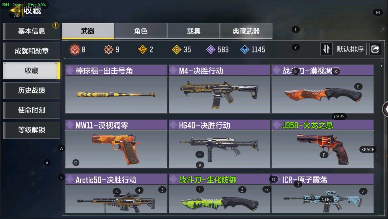 实名: 可修改 段位: 无 等级: 354 满级神话8 神话9 典藏2 传说35 史诗583 呛械皮肤:dr 2-远古神迹 holger26-黑暗曙光 fercc-元畏x amr-亚特兰蒂斯 m13-黑耀星辰 switchblade xg9-瞬影斩决 kilo 141-暗夜奏鸣曲 kig 6-冰