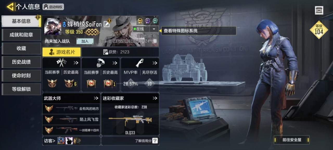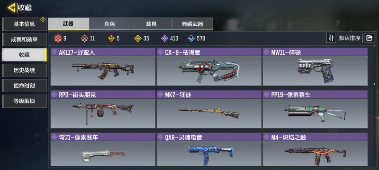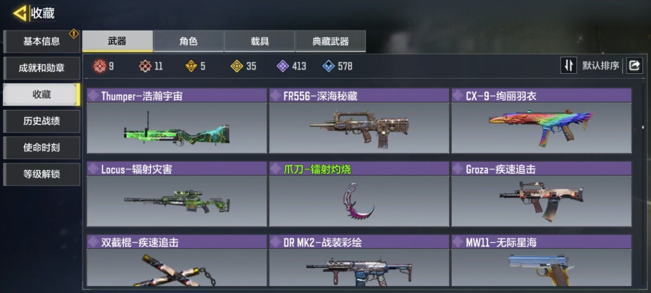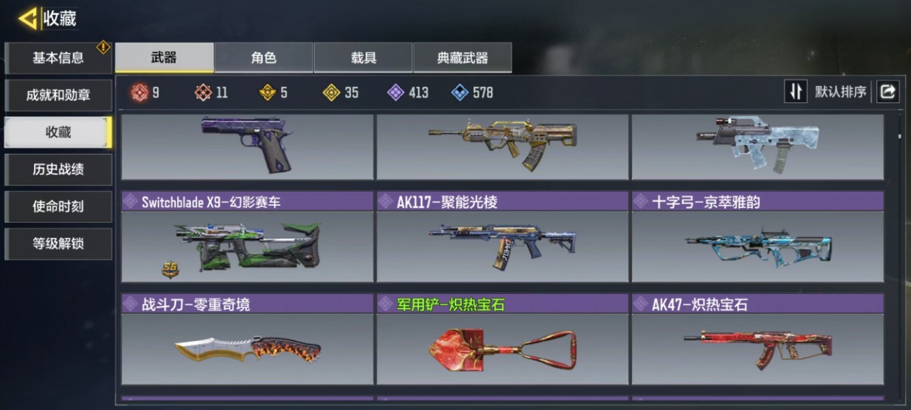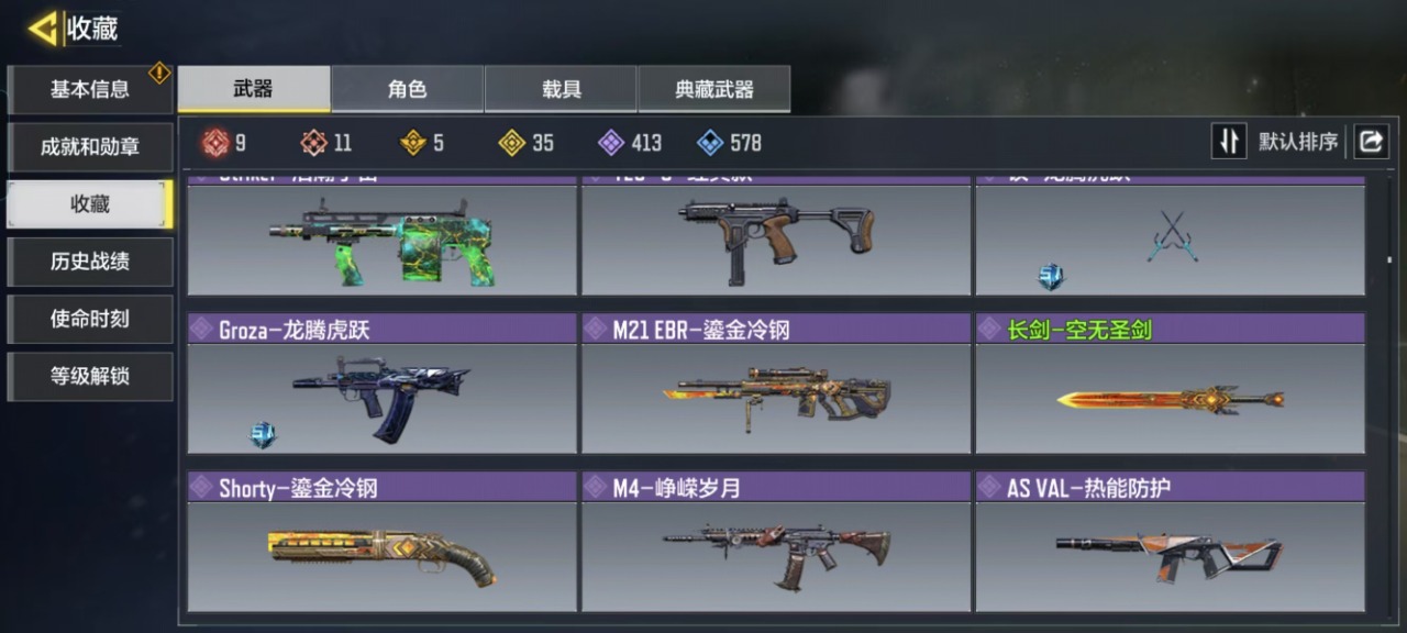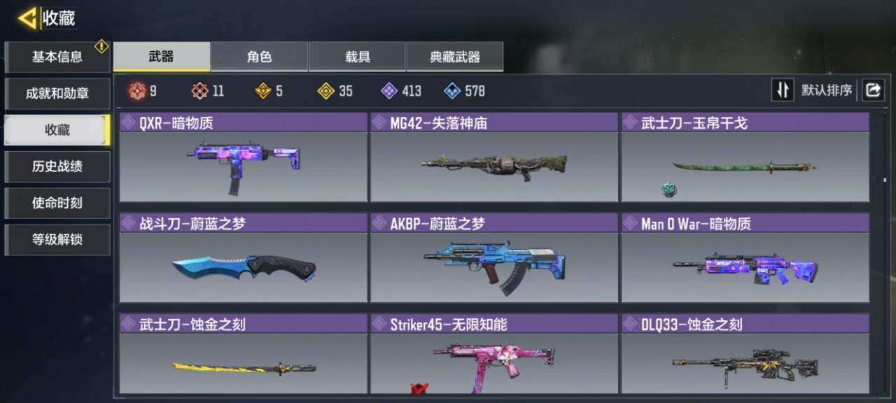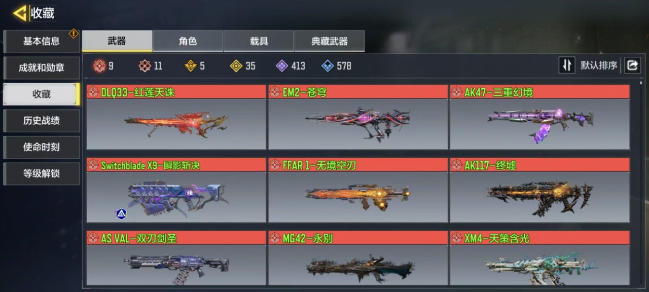 实名: 可修改 段位: 无 等级: 350 满级神话9 神话11 典藏5 传说35 史诗 413 呛械皮肤:0l033-红莲天诛 em2-苍穹 ak47-三重幻境 switchblade x9-瞬影斩决 ffar 1-无境空刃 ak117-终墟 as val-双刃剑圣 mg42-永别 xm4-天策