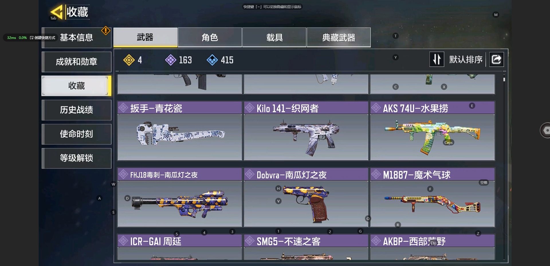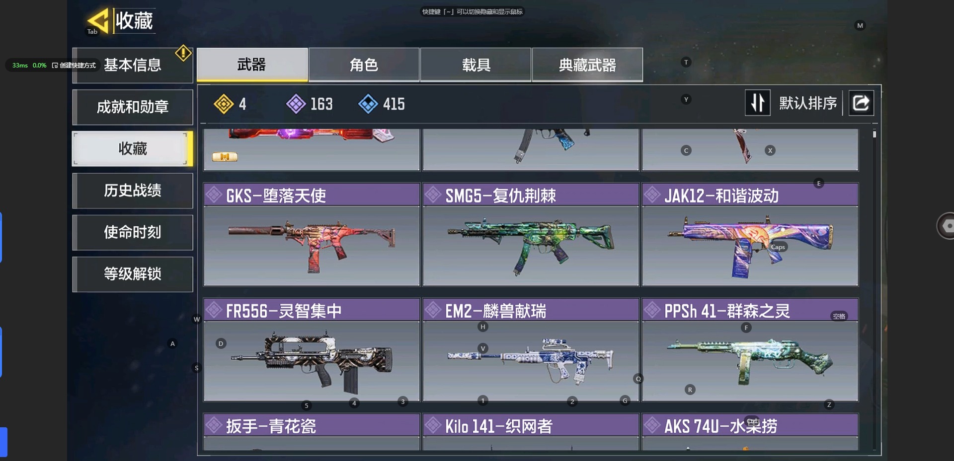 [9502312]302等级 可二次 可修改实名 段位:无 传说4 史诗163 呛械皮肤:type25-赤焰复仇 dl033-炫彩冬目 sa80-狂暴冲锋 电棍-永恒炽热 smg5-动力摇滚 fennec-守护者 gks-堕落天使 smg5-复仇荆棘 jak12-和谐波动 fr556-灵智集中 em2-麟兽献瑞 ppsh 41-群森之灵 扳手-青花瓷 kilo 141-织网者 aks 74u-水栗捞