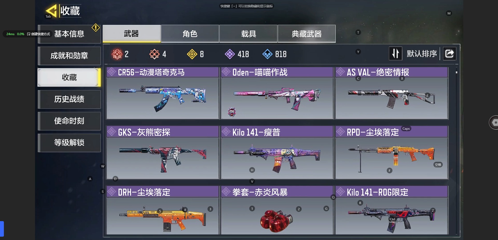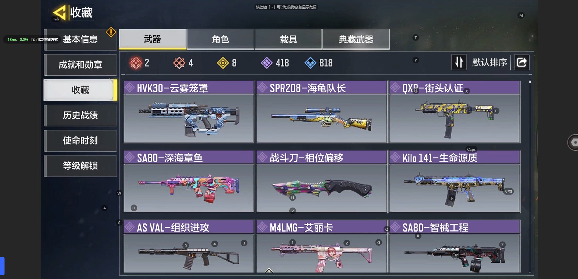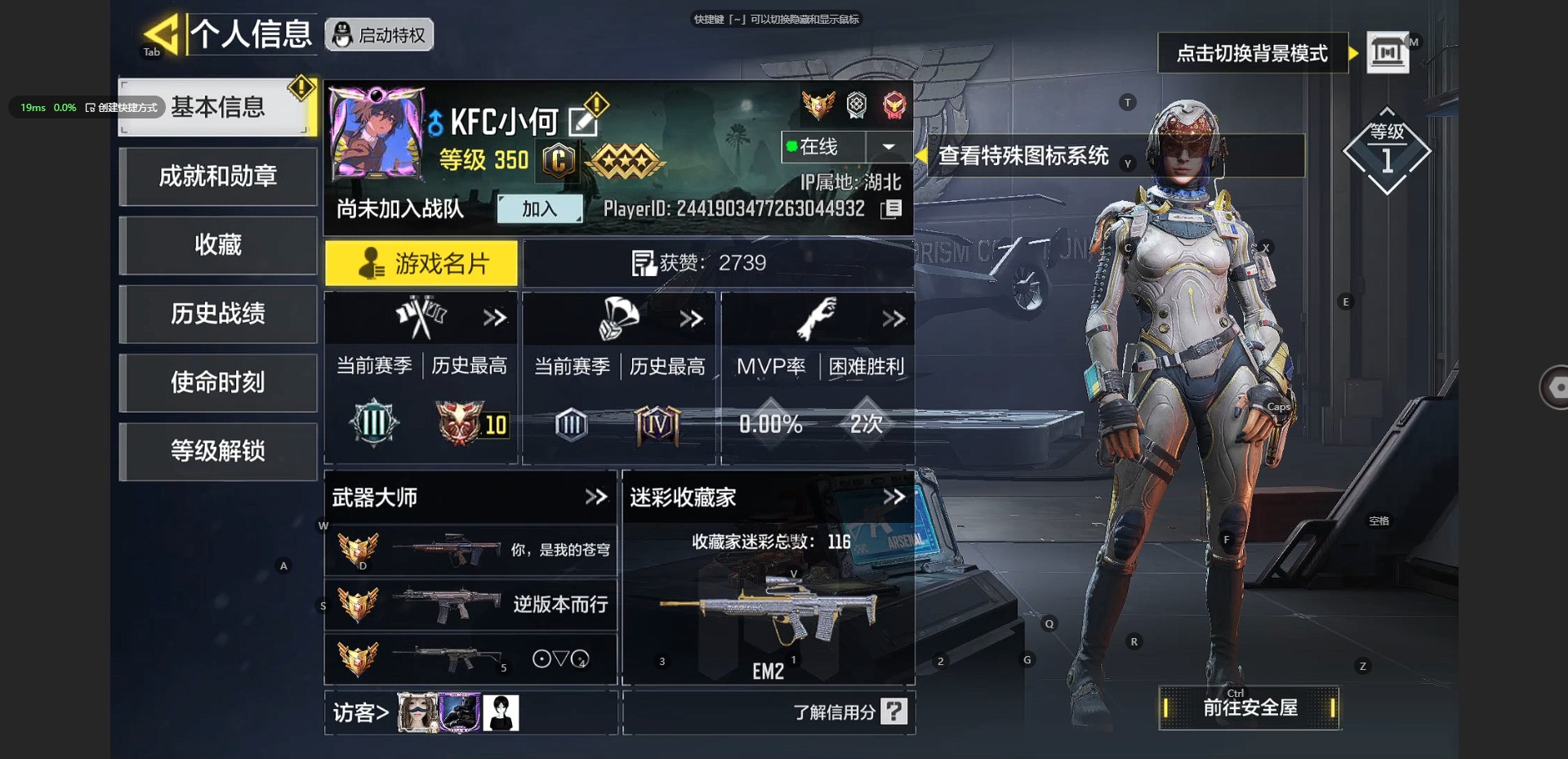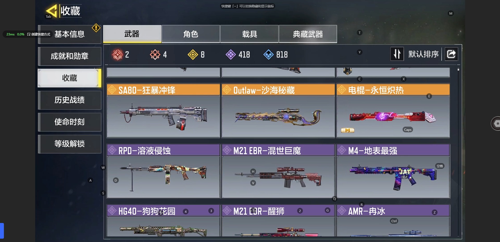 [10241897]350等级 可二次 可修改实名 段位:无 满级神话2 神话4 传说8 史诗418 呛械皮肤:em2-苍穹 grau 5.56-源核天灾 amp-亚特兰蒂斯 xm4-天策含光 an94-毁灭浪潮 m4-皇家黑魂 type25-赤焰复仇 maddox-晶流梦魇 drh-蝮蛇潜渊 sa80-狂暴冲锋 dutlaw-沙海秘藏 电棍-永恒炽热 rpd-溶液侵蚀 m21 ebr-混世巨魔 m4-地表最强 hg40-狗狗花园 m21 ebr一醒狮 amr-冉冰 hvk30-云雾笼罩 spr208-海龟队长 qxb-街头认证 sa80-深海章鱼 战斗刀-相位偏移 kilo 141-生命源质 as val-组织进攻 m4lmg-艾丽卡 sa80-智械工程
