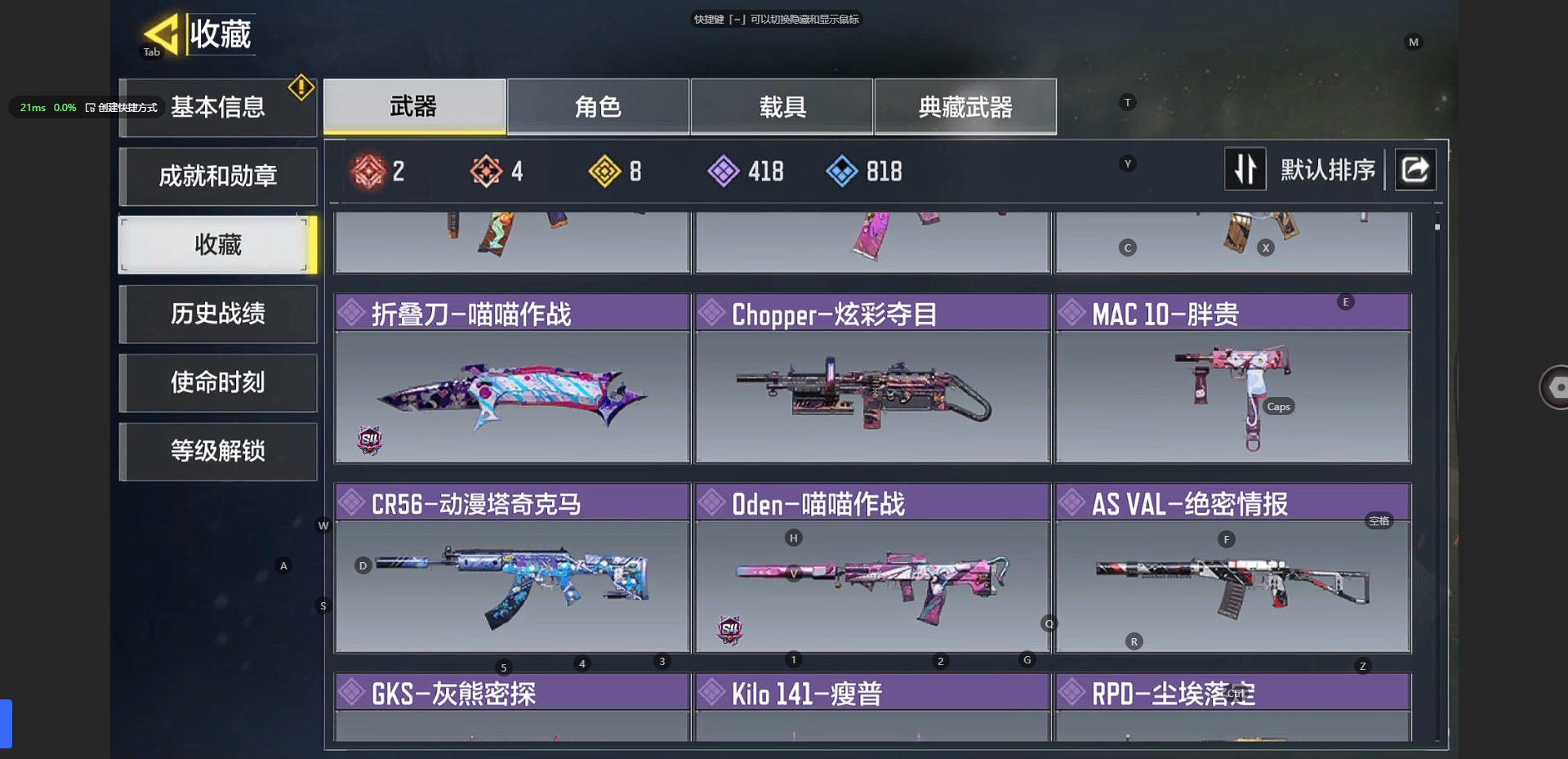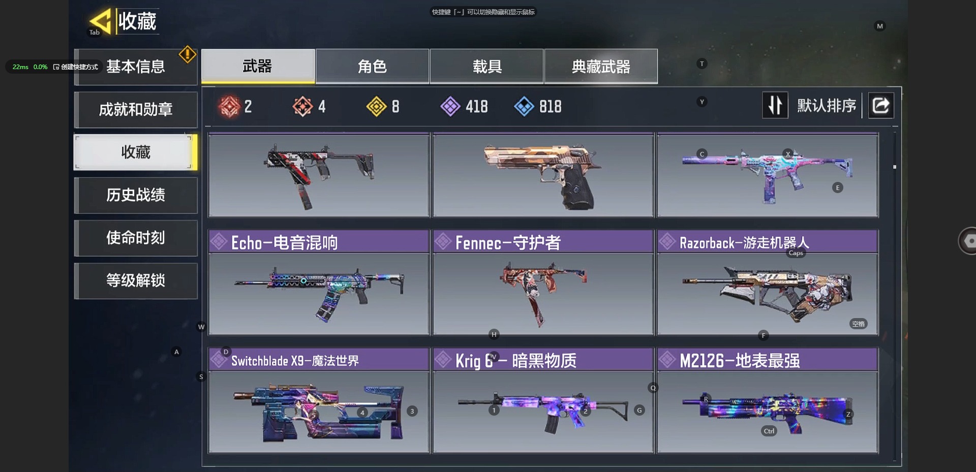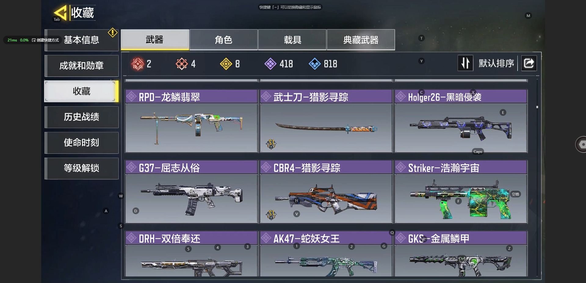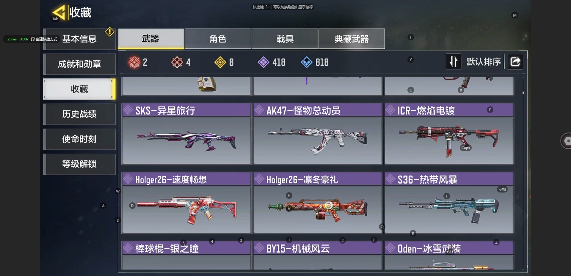 [10241897]350等级 可二次 可修改实名 段位:无 满级神话2 神话4 传说8 史诗418 呛械皮肤:em2-苍穹 grau 5.56-源核天灾 amp-亚特兰蒂斯 xm4-天策含光 an94-毁灭浪潮 m4-皇家黑魂 type25-赤焰复仇 maddox-晶流梦魇 drh-蝮蛇潜渊 sa80-狂暴冲锋 dutlaw-沙海秘藏 电棍-永恒炽热 rpd-溶液侵蚀 m21 ebr-混世巨魔 m4-地表最强 hg40-狗狗花园 m21 ebr一醒狮 amr-冉冰 hvk30-云雾笼罩 spr208-海龟队长 qxb-街头认证 sa80-深海章鱼 战斗刀-相位偏移 kilo 141-生命源质 as val-组织进攻 m4lmg-艾丽卡 sa80-智械工程