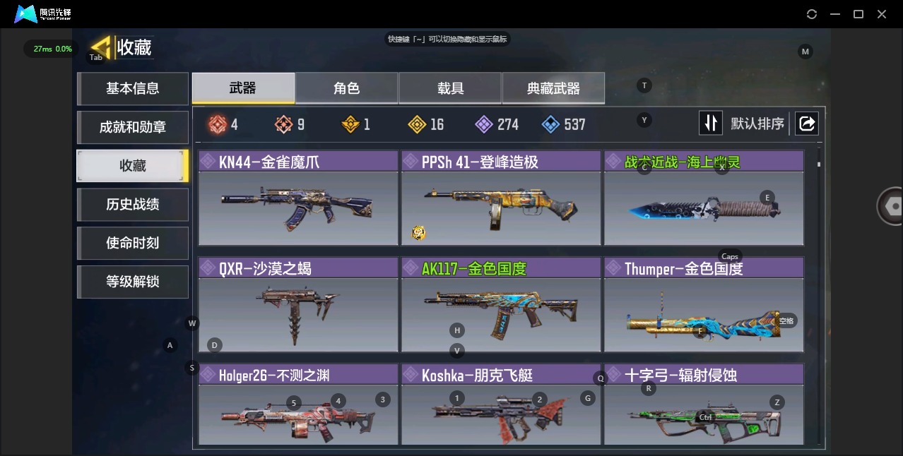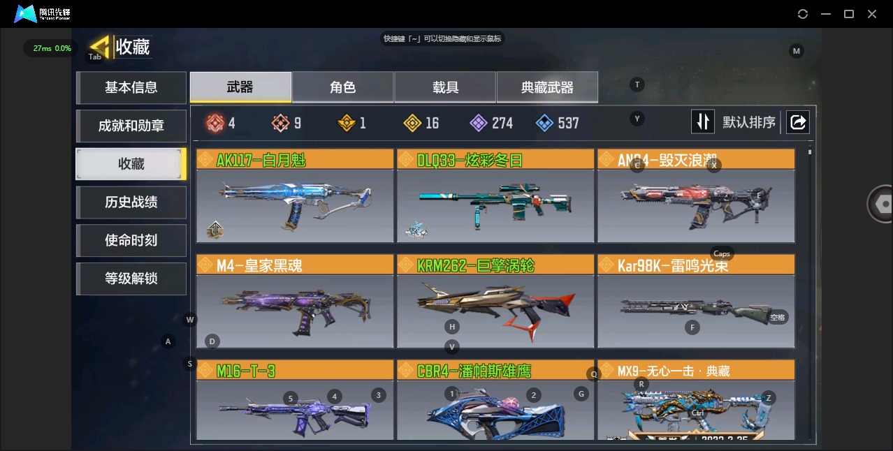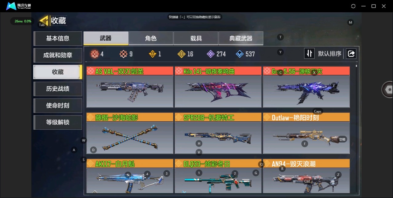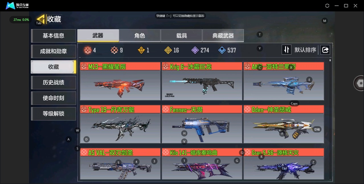 307等级 可二次 可修改实名 段位:白银 满级神话4 神话9 典藏1 传说16 史诗274 典藏呛械:mx9-无心一击·典藏 神话呛械:type19-丹青万壑krig 6-冰霜巨龙grau 5.56-源核天灾as val-双刃剑圣fennec-无畏amr-亚特兰蒂斯m13-