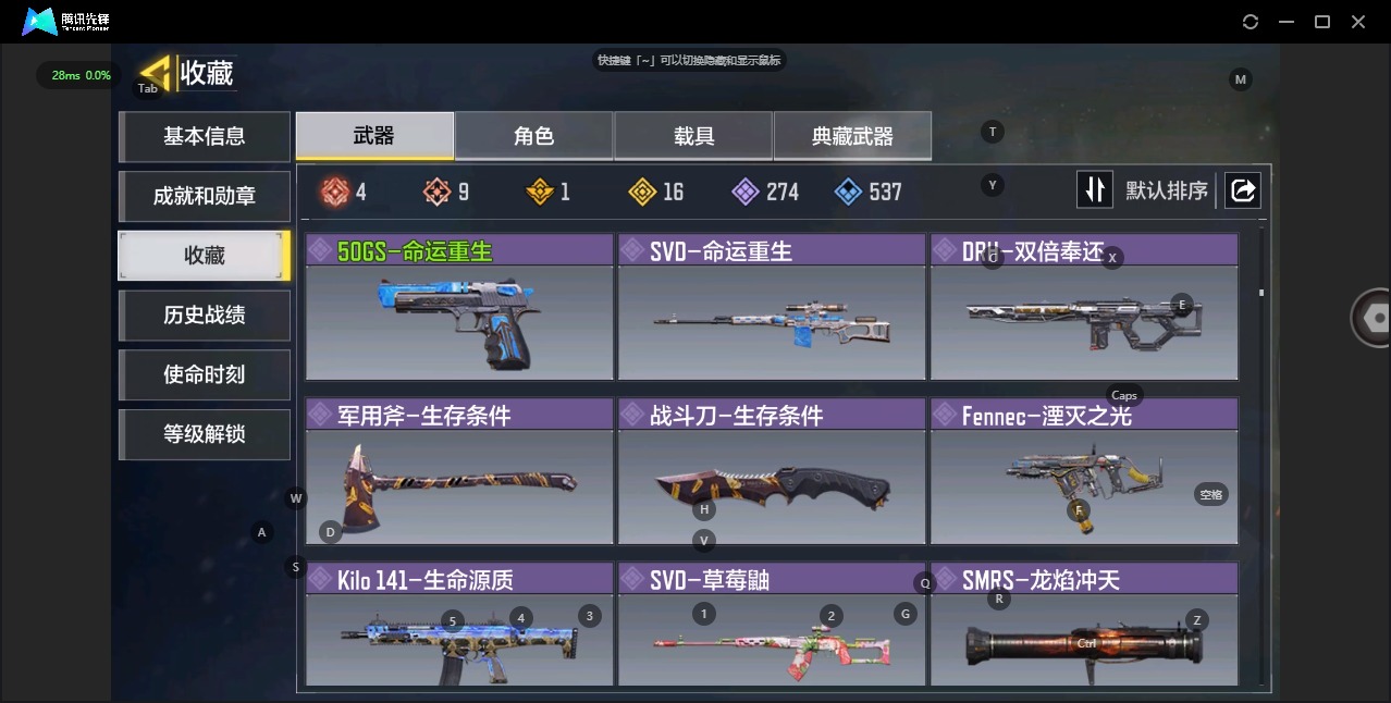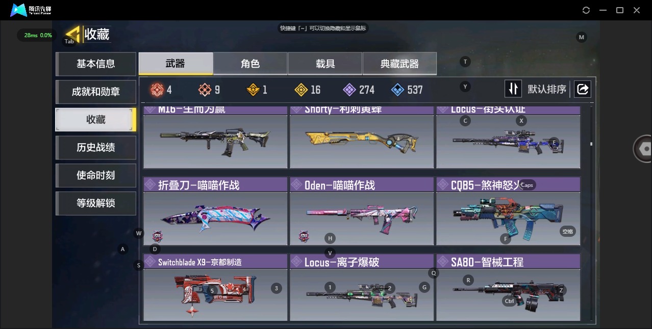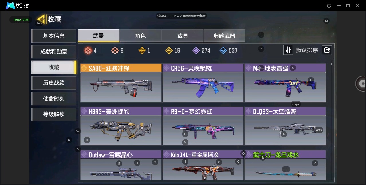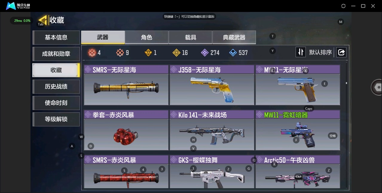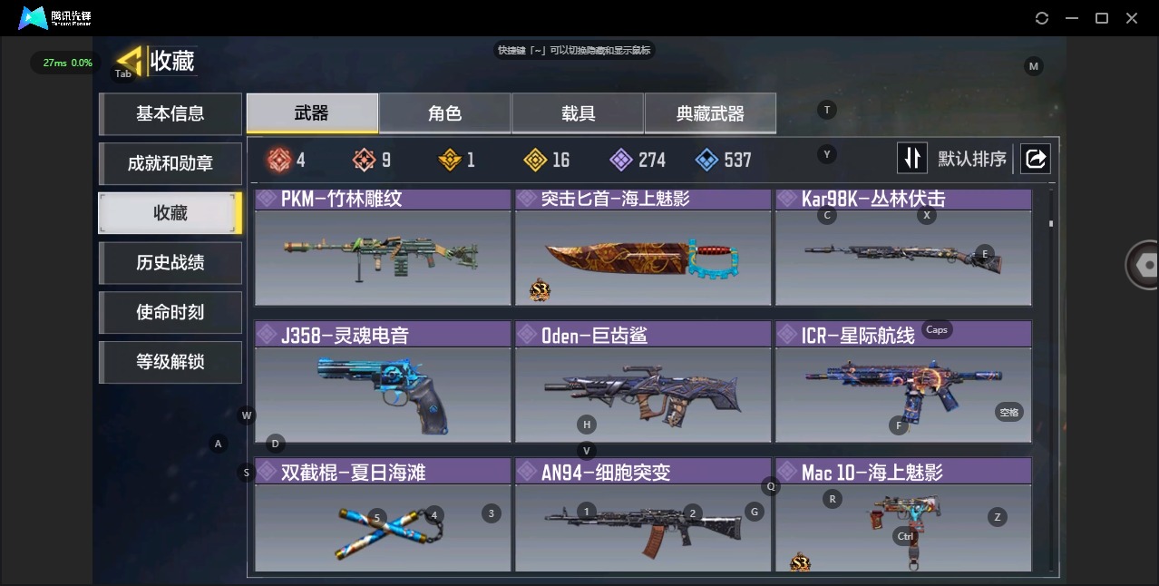 307等级 可二次 可修改实名 段位:白银 满级神话4 神话9 典藏1 传说16 史诗274 典藏呛械:mx9-无心一击·典藏 神话呛械:type19-丹青万壑krig 6-冰霜巨龙grau 5.56-源核天灾as val-双刃剑圣fennec-无畏amr-亚特兰蒂斯m13-