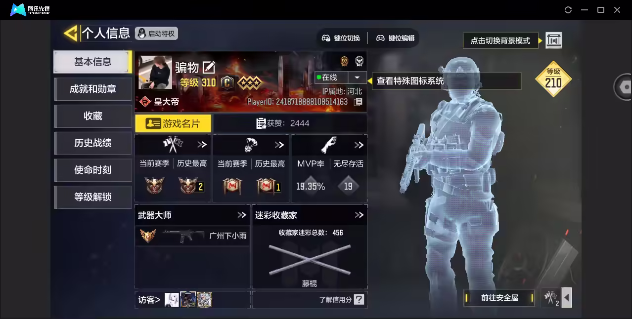 xly4224 亮点:11神话-1神话角色-素子-粉红猫-黑伊利 游戏区服:苹果qq 实名情况:可二次实名 神话武器数量:11 神话角色数量:1 传说武器数量:28 传说角色数量:3 传说载具数量:0 神话武器:lw3-tundra-离散单元5级ffar1-无境空刃满级smg5-潮海汐月满级dlq33-红莲天诛3级em2-苍穹2级oden-神圣惩戒1级ak47-三重幻境2级kilo141-暗夜奏鸣曲满级m13-黑曜星辰3级fennec-无畏3级asval-双刃剑圣7级 神话角色: 传说典藏武器:ak47-炎舞慕雪mx9-无心一击agr-圣骑之刃arctic50-魅惑灵狐 传说辉光武器: 传说武器:an94-毁灭浪潮s36-甜心诱惑藤棍-沙海蛇影cr56-野性之力man0war-梦幻水晶m16-t-3amr-龙魄reti-钢铁幻影pkm-麋鹿m4-皇家黑魂kar98k-雷鸣光束蝴蝶刀-雷光焰影mac10-金龙鳞影fr556-谜影之境m1887-闪耀明星ak117-诸神黄昏hbr3-蜜蜂工厂50gs-路阻且长svd-赫拉之击唐刀-白月魁grau5.56-龙魂怒焰飞翼浮游炮v高达ak47-火箭炮 传说角色:镰刀-修罗战魂尼克托-黑暗边缘幻影-不朽传说 热门角色:素子蔷薇刺客-幻粉猫猫 传说载具: