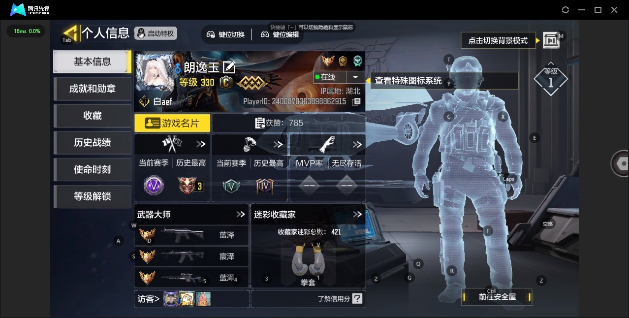 330级 3神话 1典藏 7传说 192史诗 段位钻石 可二次 可修改实名 【典藏呛械】:ak117-火龙咆哮·典藏 【神话呛械】:type19-丹青万壑grau 5.56-源核天灾amr-亚特兰蒂斯 【传说呛械】:akbp-塞壬律曲fennec-华珑sa80-狂暴冲锋ak47-火箭炮