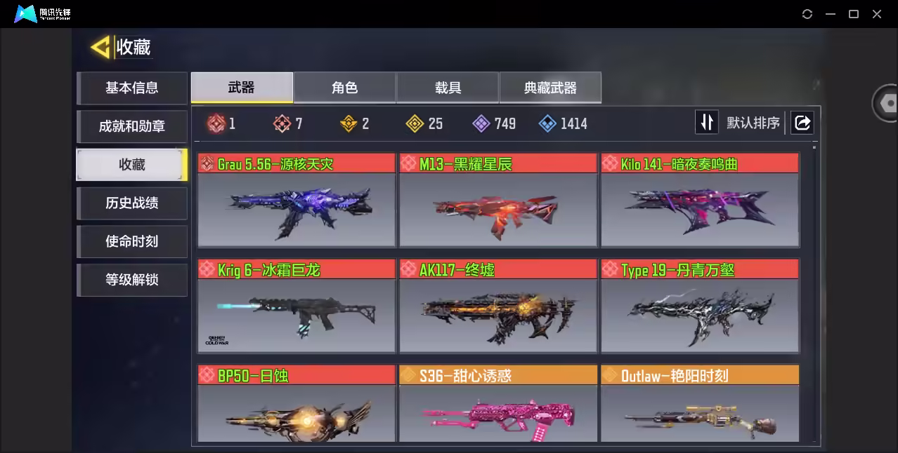 xly4447 亮点:7神话-素子-冉冰 游戏区服:安卓qq 实名情况:可二次实名 神话武器数量:7 神话角色数量:1 传说武器数量:25 传说角色数量:0 传说载具数量:0 神话武器:bp50-日蚀1级type19-丹青万壑1级grau556-源核天灾满级ak117-终墟1级krig6-冰霜巨龙1级kilo141-暗夜奏鸣曲m13-黑曜星辰3级 神话角色:幽魂-t3(觉醒) 传说典藏武器:man0war-灵魂低语50gs-路阻且长 传说辉光武器: 传说武器:outlaw-艳阳时刻s36-甜心诱惑唐刀-白月魁ak117-白月魁an94-毁灭浪潮m4-皇家黑魂type25-赤焰复仇m16-t-3hbr3-蜜蜂工厂thumper-惊魂火炮drh-蝮蛇潜渊sa80-狂暴冲锋type19-星河hdr-狂笑终章groza-流光宝瓶拳套-魔羊利角g37-群山灿阳电棍-永恒炽热cr56-回音律动locus-红色彗星ak47-火箭炮飞翼浮游炮v高达ffar1星彩乐手 传说角色: 热门角色:素子冉冰 传说载具: