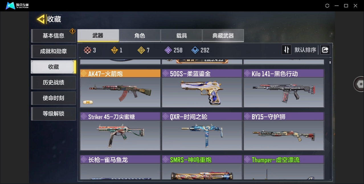 [13263118]【编号18922 可秒换绑】店长推荐特价处理精品号【3神话7传说武器(1典藏)】 as val-双刃剑圣 lw3-tundra-离散单元 ak117-熔岩 hdr-狂笑终章 电棍-永恒炽热 cr56-回音律动 m13-紫炎舞 smg5-月光追痕·典藏 ffar 1-烬灭余灰 ak47-火箭炮,smg5-月光追痕·典藏,as val-双刃剑圣,lw3-tundra-离散单元,ak117-熔岩,m13-紫炎舞,hdr-狂笑终章,cr56-回音律动,电棍-永恒炽热,ak47-火箭炮