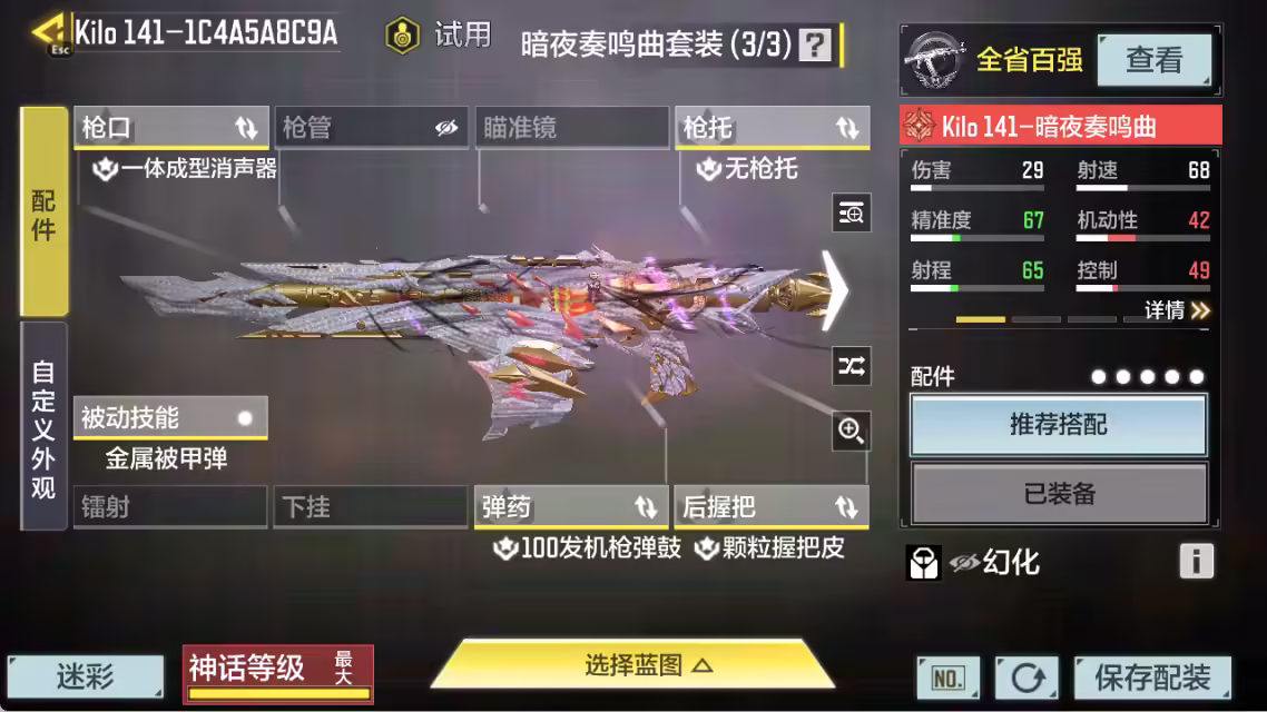 xly4610 亮点:4神3满/素子 游戏区服:苹果qq 实名情况:可二次实名 神话武器数量:4 神话角色数量: 传说武器数量: 传说角色数量: 传说载具数量: 神话武器:bp50-日蚀满级smg5-潮海汐月满级dlq33-红莲天诛1级kilo141-暗夜奏鸣曲满级 神话角色: 传说典藏武器:hades-永夜黑骑 传说辉光武器: 传说武器:an94-毁灭浪潮s36-甜心诱惑m4-皇家黑魂ak117-逐乐之章type25-赤焰复仇sa80-狂暴冲锋cx9-山吹烬龙泉剑-七星龙渊bruenmk9-月球巡航qxr-冰雪奇迹ak47-火箭炮电棍-永恒炽热cr56-回音律动飞翼浮游炮v高达ffar1星彩乐手aks74u神灯灵愿rpd-一路悠扬 传说角色: 热门角色:素子 传说载具: