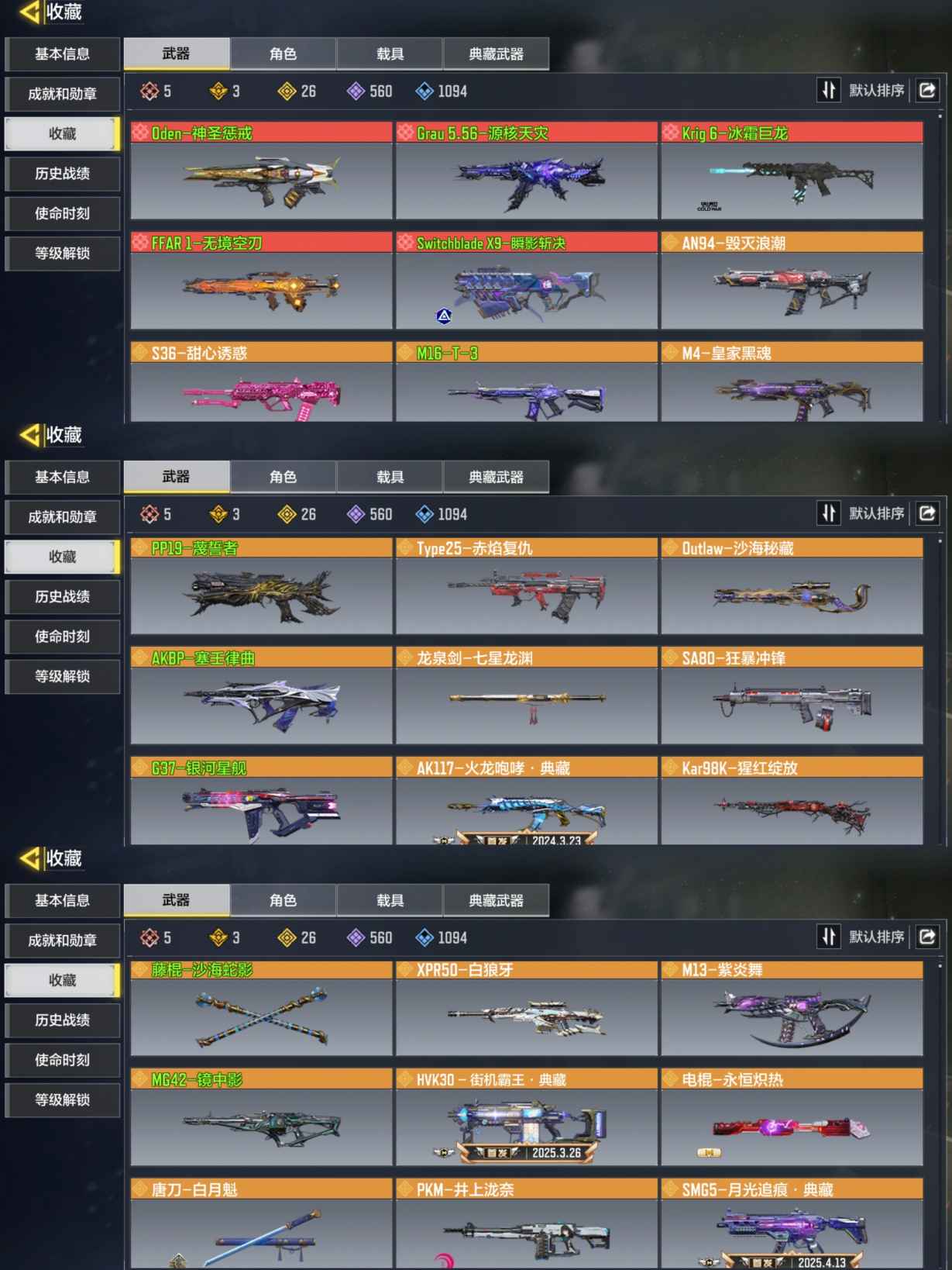 【6红32金3典藏】安卓q-等级400-史诗呛械560【1神话角色】 幽魂-t-3 【5神话】 0den-神圣惩戒 ffar1-无境空刃 grau 5.56-源核天灾 switchblade x9-瞬影斩决 krig6-冰霜巨龙【3典藏传说】 ak117-火龙咆哮·典藏 hvk30-街机霸王·典藏 smg5-月光追痕·典藏 【32传说】 ak47-火箭炮 电棍-永恒炽热 locus-红色彗星 m