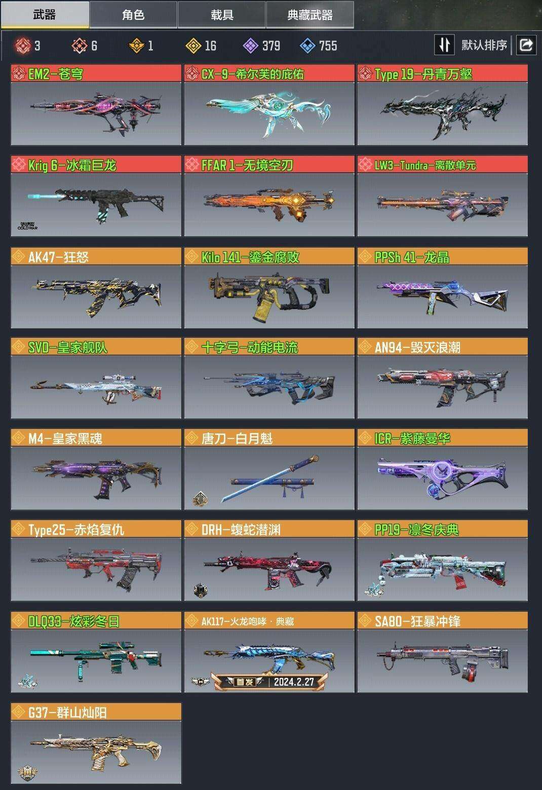 [14106771]【编号80793 可秒换绑】店长推荐精品号【6神话武器(3满级)16传说武器1典藏武器1传说载具】 em2-苍穹 krig 6-冰霜巨龙 cx-9-希尔芙的庇佑 ffar 1-无境空刃 type 19-丹青万壑 lw3-tundra-离散单元 ak47-狂怒 kilo 141-鎏金腐败 ppsh 41-龙晶 svd-皇家舰队 m4-皇家黑魂 type25-赤焰复仇 十字弓-动能电流 唐刀-白月魁 drh-蝮蛇潜渊 an94-毁灭浪潮 icr-紫藤曼华 pp19-凛冬庆典 dlq33-炫彩冬日 ak117-火龙咆哮·典藏 sa80-狂暴冲锋 g37-群山灿阳 滑雪板-砂蚀边界,ak117-火龙咆哮·典藏,em2-苍穹,cx-9-希尔芙的庇佑,ffar 1-无境空刃,lw3-tundra-离散单元,ppsh 41-龙晶,唐刀-白月魁,dlq33-炫彩冬日,kilo 141-鎏金腐败,svd-皇家舰队,pp19-凛冬庆典,ak47-狂怒,十字弓-动能电流,g37-群山灿阳,m4-皇家黑魂,type25-赤焰复仇,sa80-狂暴冲锋,an94-毁灭浪潮,drh-蝮蛇潜渊,icr-紫藤曼华,滑雪板-砂蚀边界