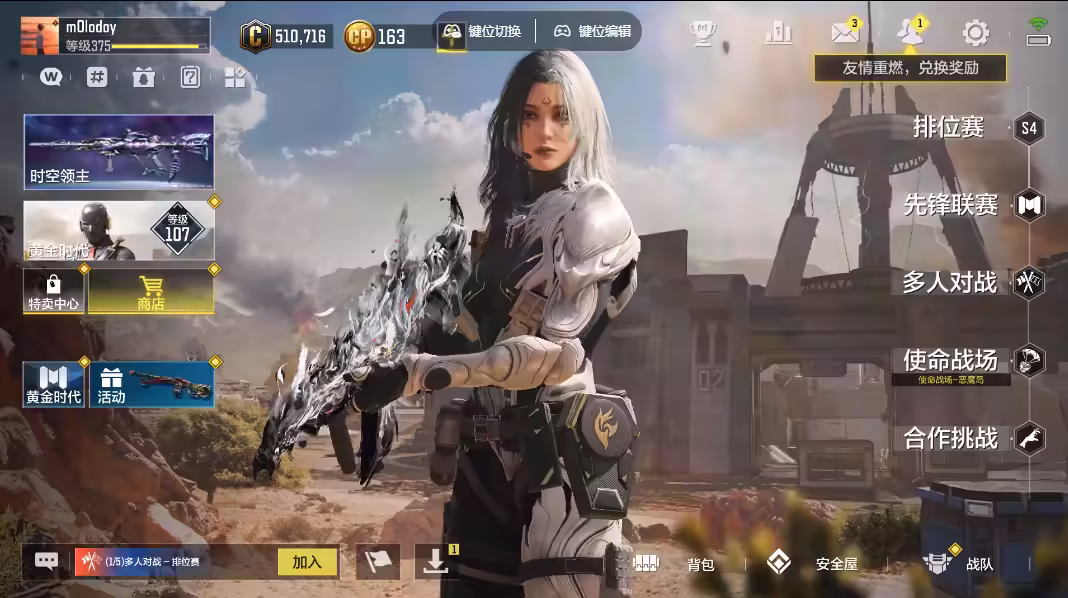 xly4892 亮点:8神3满带动能送贵七134皮王者 游戏区服:安卓qq 实名情况:可二次实名 神话武器数量:8 神话角色数量:0 传说武器数量:14 传说角色数量:0 传说载具数量:0 神话武器:type19-丹青万壑满级smg5-潮海汐月满级krig6-冰霜巨龙4级switchbladex9-瞬影斩决1级oden-神圣惩戒4级kilo141-暗夜奏鸣曲4级m13-黑曜星辰amr-亚特兰蒂斯满级 神话角色: 传说典藏武器:sks-粒子震击hg40-灵魂羁绊ak117-火龙咆哮 传说辉光武器: 传说武器:an94-毁灭浪潮m4-皇家黑魂type25-赤焰复仇drh-蝮蛇潜渊spr208-机要特工kn44-寒鸦locus-动能无限dlq33-炫彩冬日krm262-巨擎涡轮sa80-狂暴冲锋hdr-狂笑终章 传说角色: 热门角色:佛洛伦斯-惊惧夜素子 传说载具: