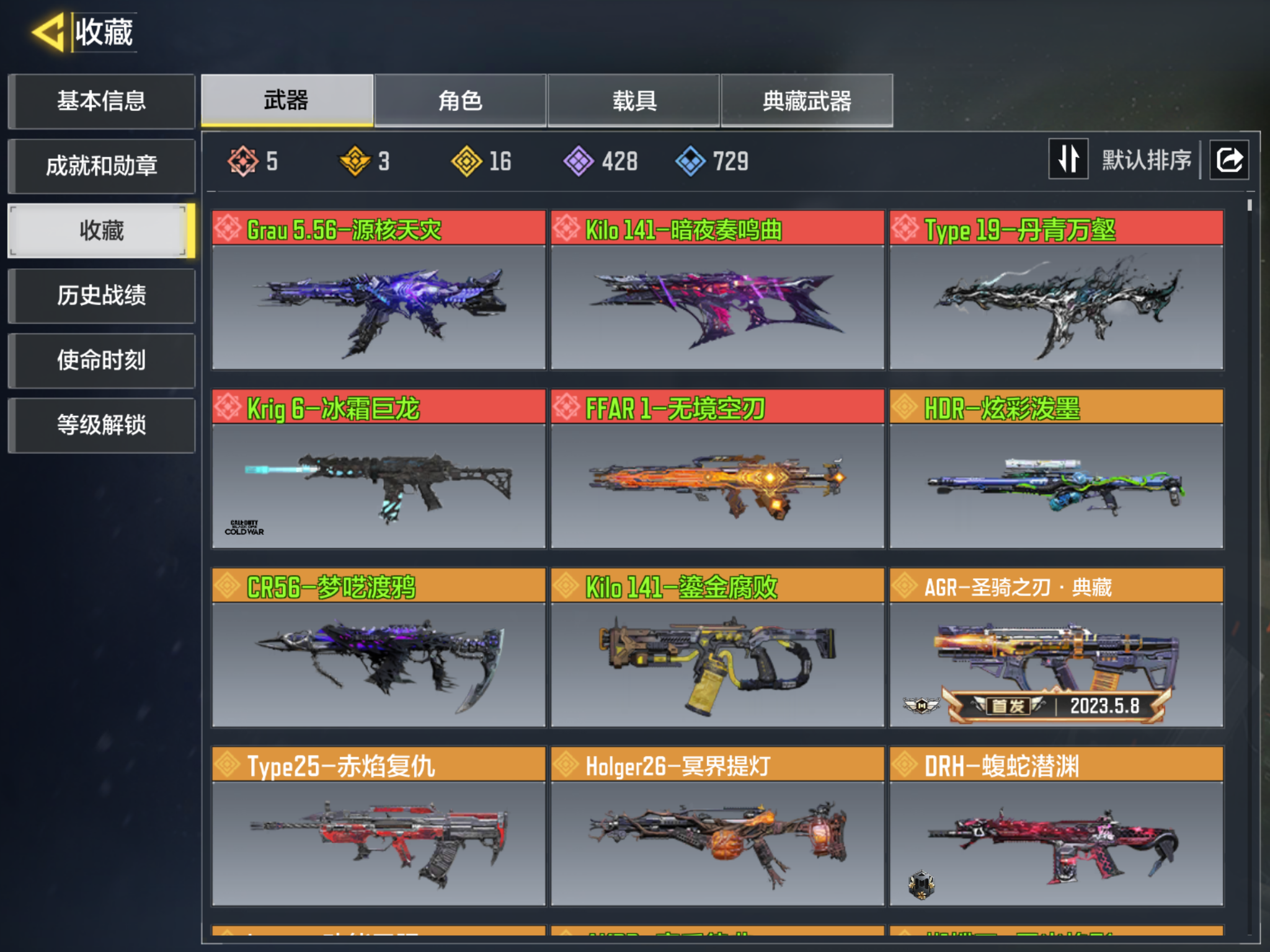 【5红16金3典藏 动能无限】苹果q-等级356-史诗呛械428【5神话】grau 5.56-源核天灾 kilo141-暗夜奏鸣曲 type19-丹青万壑 krig6-冰霜巨龙 ffar1-无境空刃 【16传说 3典藏传说 】agr-圣骑之刃·典藏 ak117-火龙咆哮·典藏 hg40-灵魂羁绊·典藏 【传说】h-炫彩泼墨 cr56-梦呓渡鸦 kilo 141-鎏金腐败 t